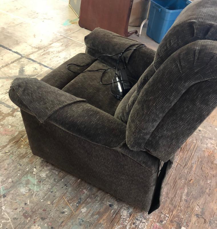 In new condition here is a Lazyboy type stuffed chair with a fully automated electric lift function..vibrating massager...everything except a refrigerator....