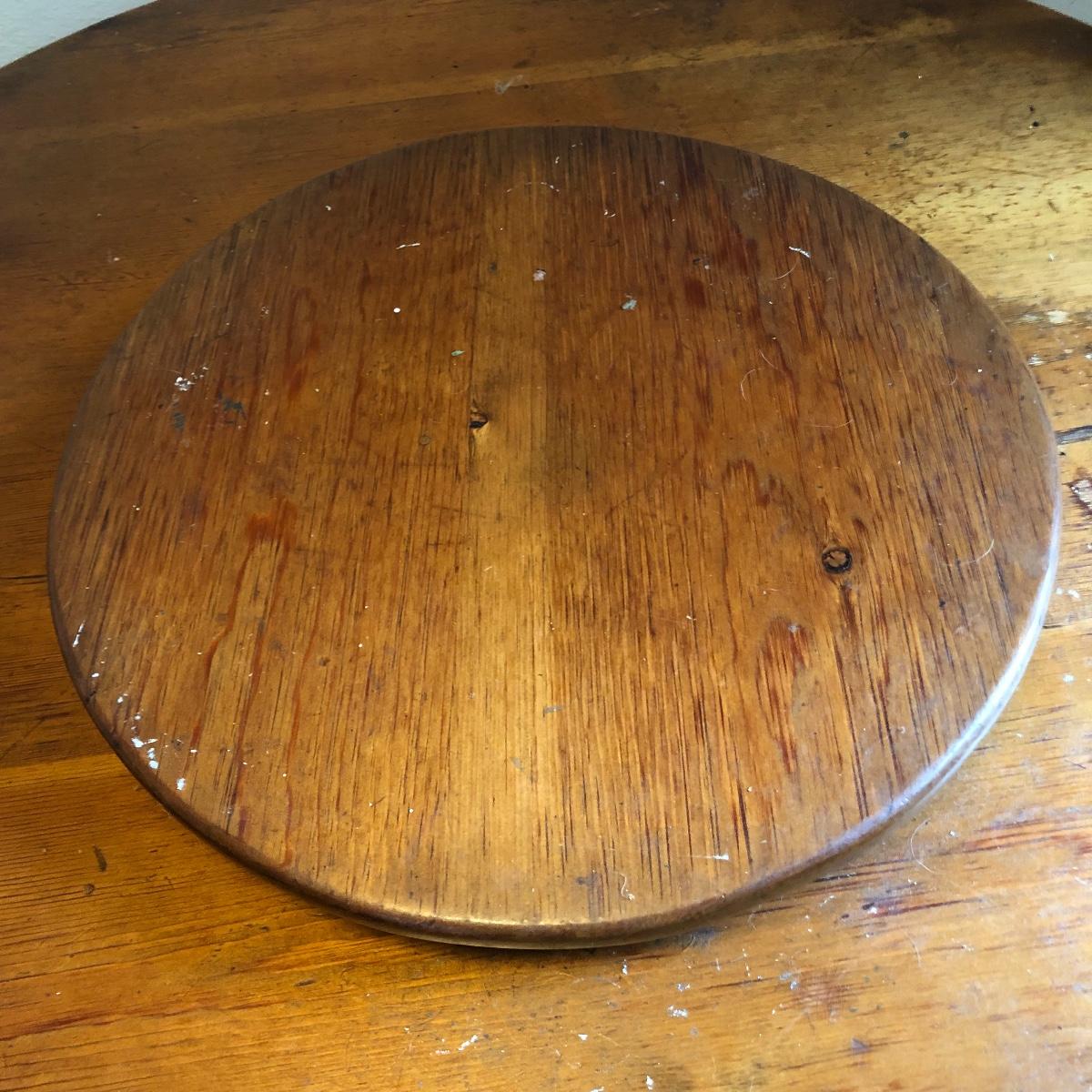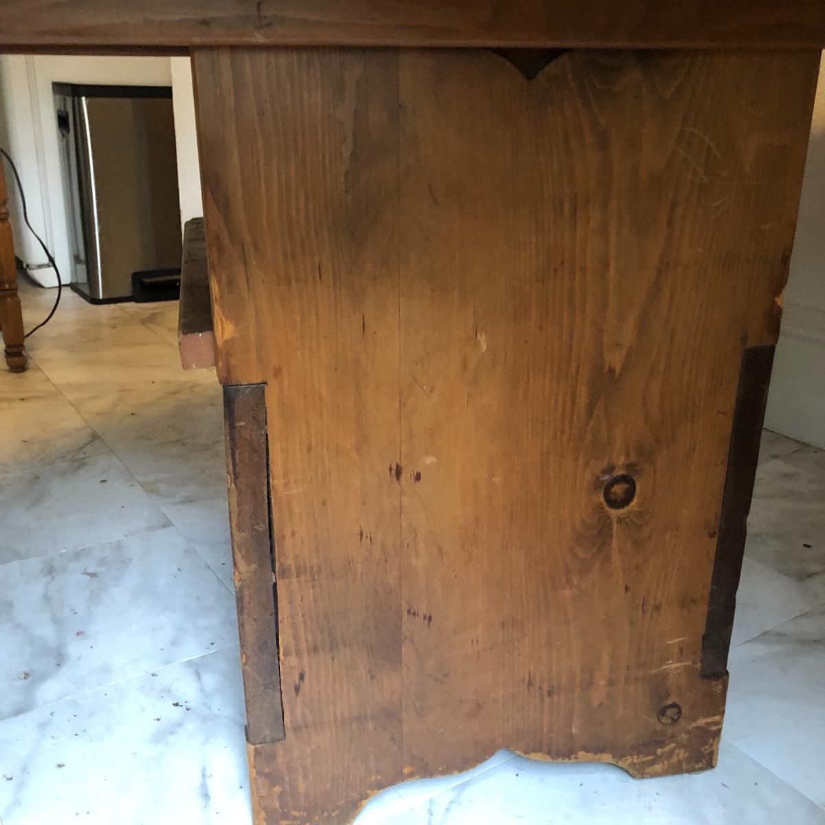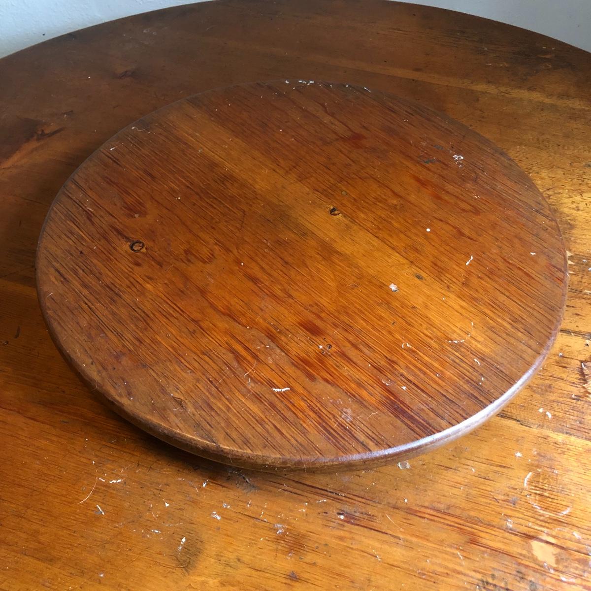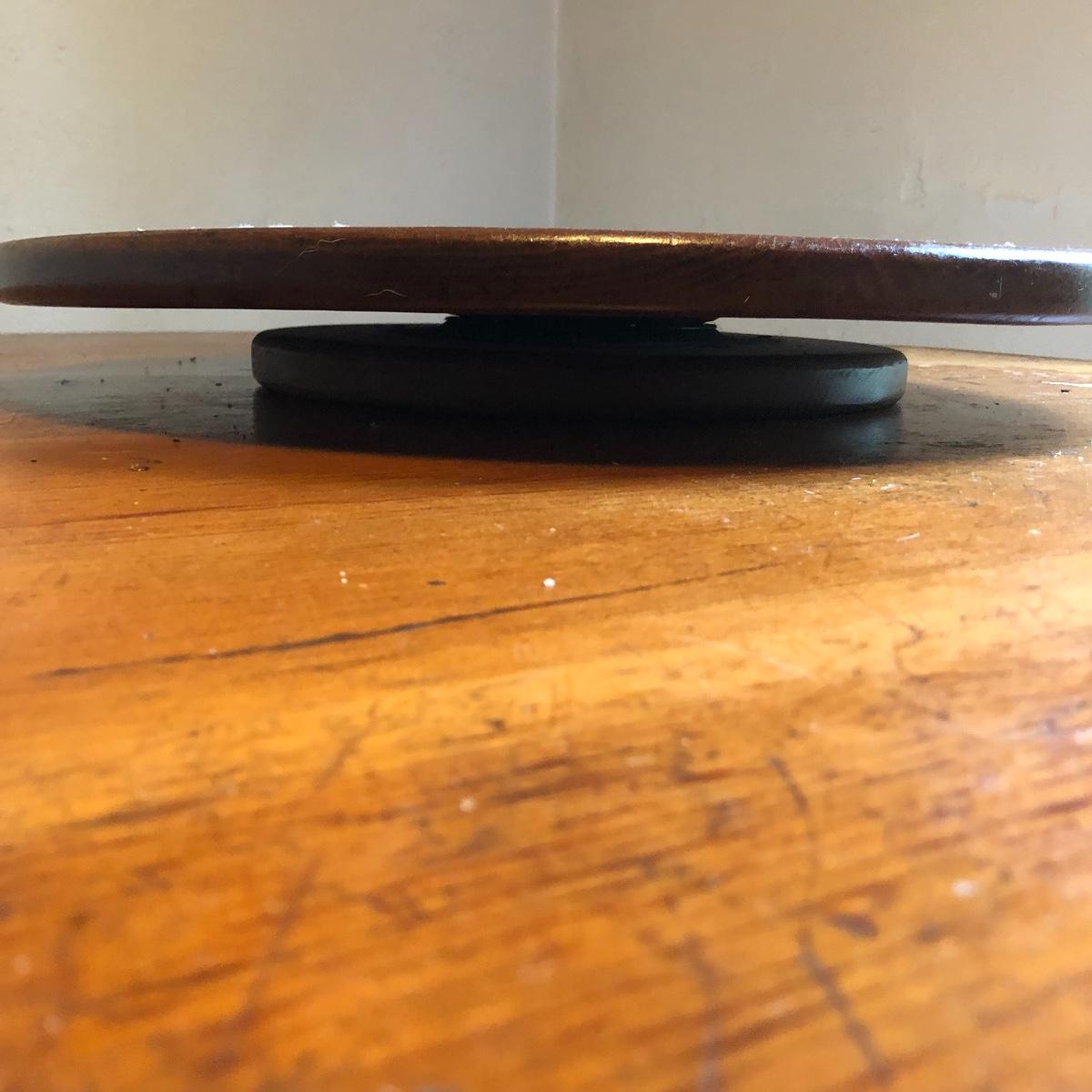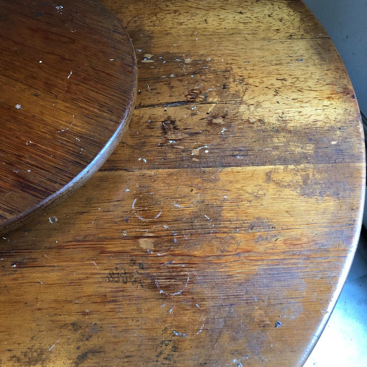 This exquisite and unique dining table is a well built solid wood piece that is in overall good condition; it will need some surface refinishing to restore it which will be so worth the effort as this table is as good as they get and a rare find. In addition to the lazy Susan in the center (measures 23.5” d x 4” tall) it has a good sized storage box with hinged lid that has been built in to the tables base (measures 14” x 22” x 12”.