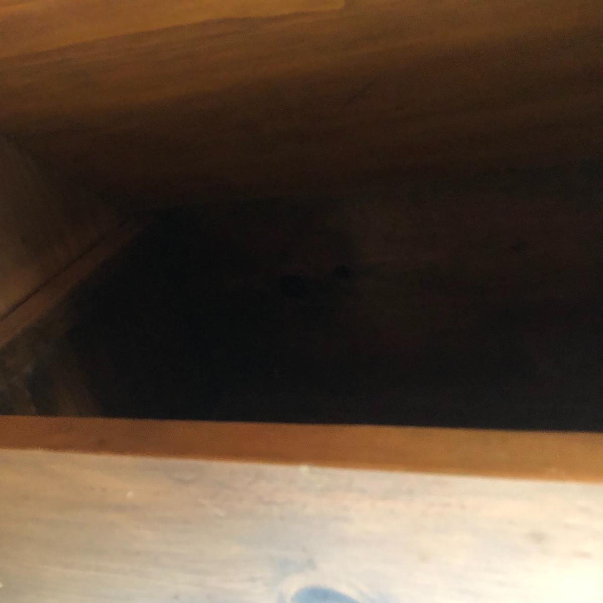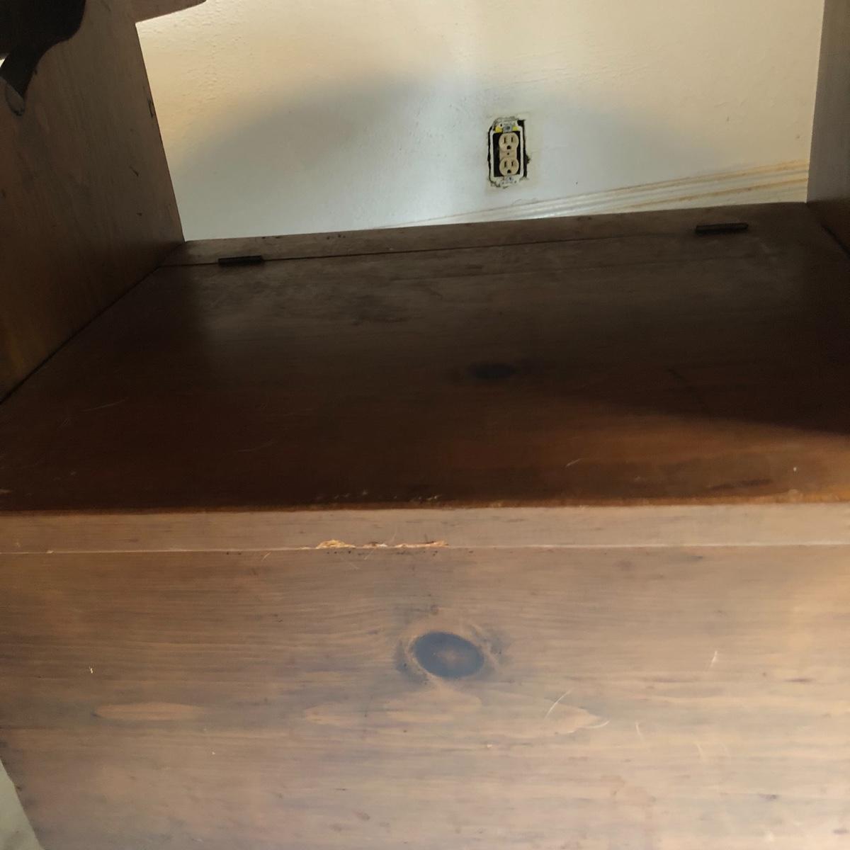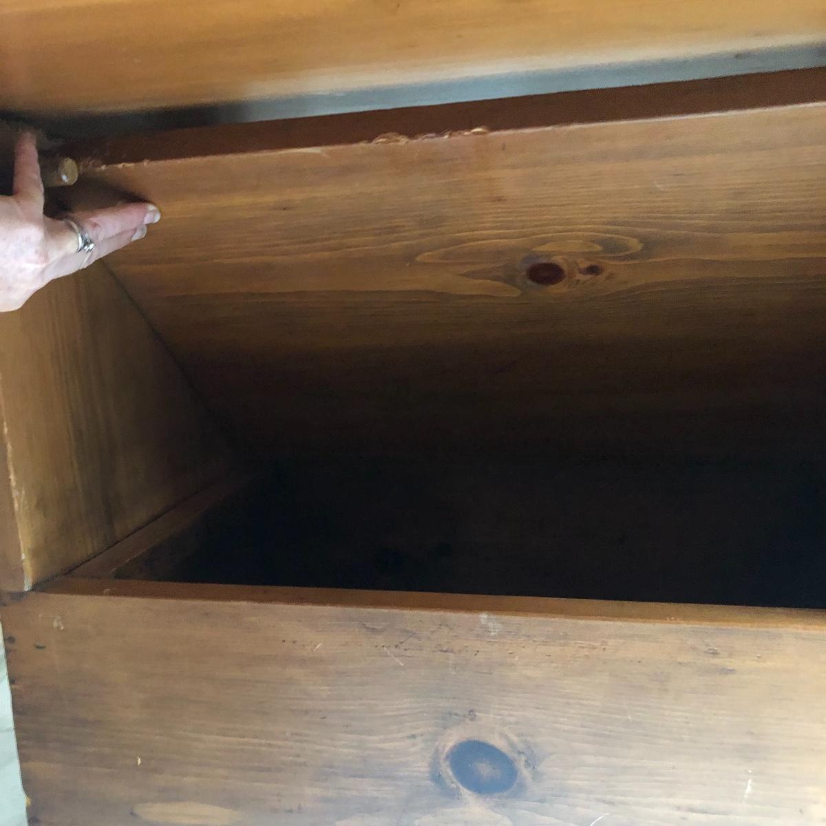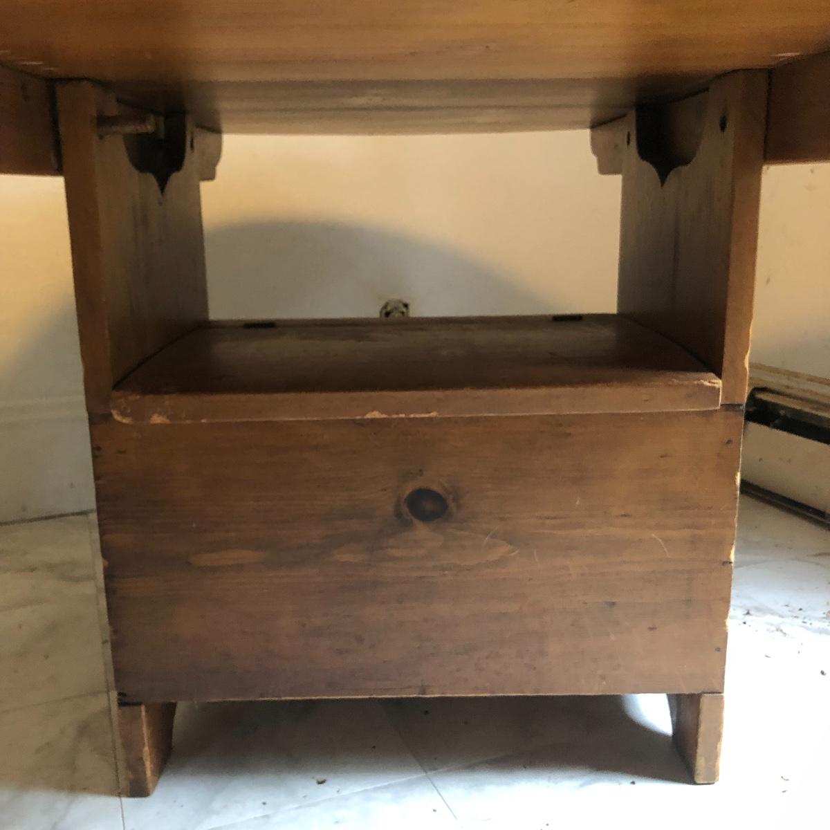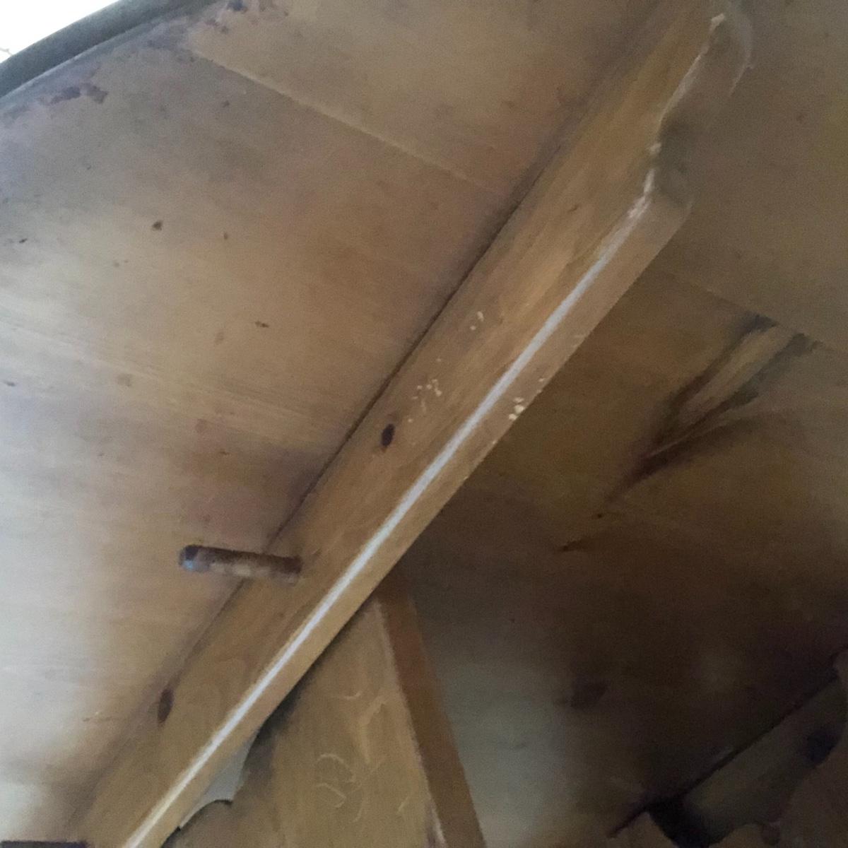 This exquisite and unique dining table is a well built solid wood piece that is in overall good condition; it will need some surface refinishing to restore it which will be so worth the effort as this table is as good as they get and a rare find. In addition to the lazy Susan in the center (measures 23.5” d x 4” tall) it has a good sized storage box with hinged lid that has been built in to the tables base (measures 14” x 22” x 12”.