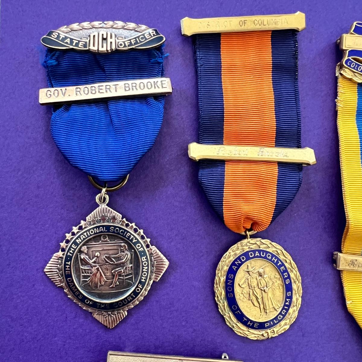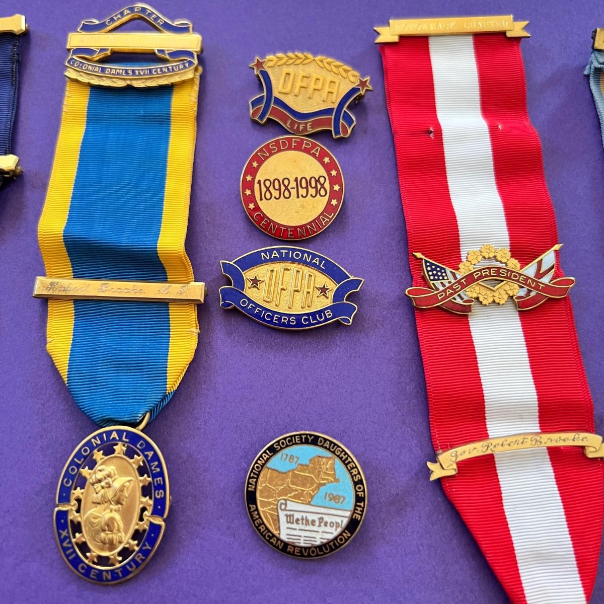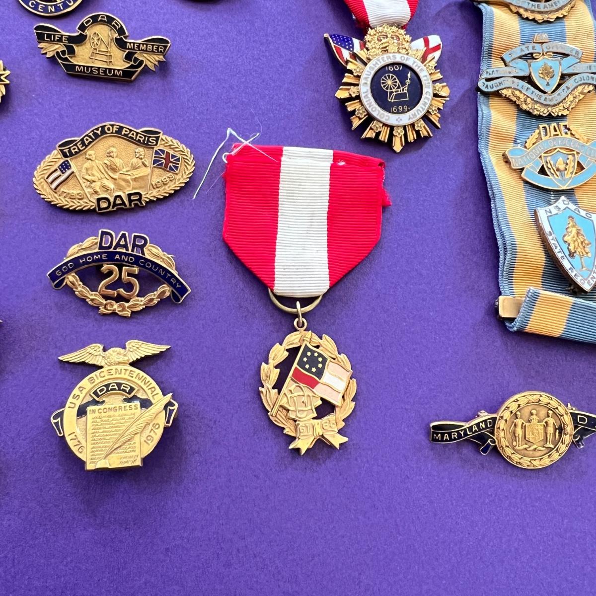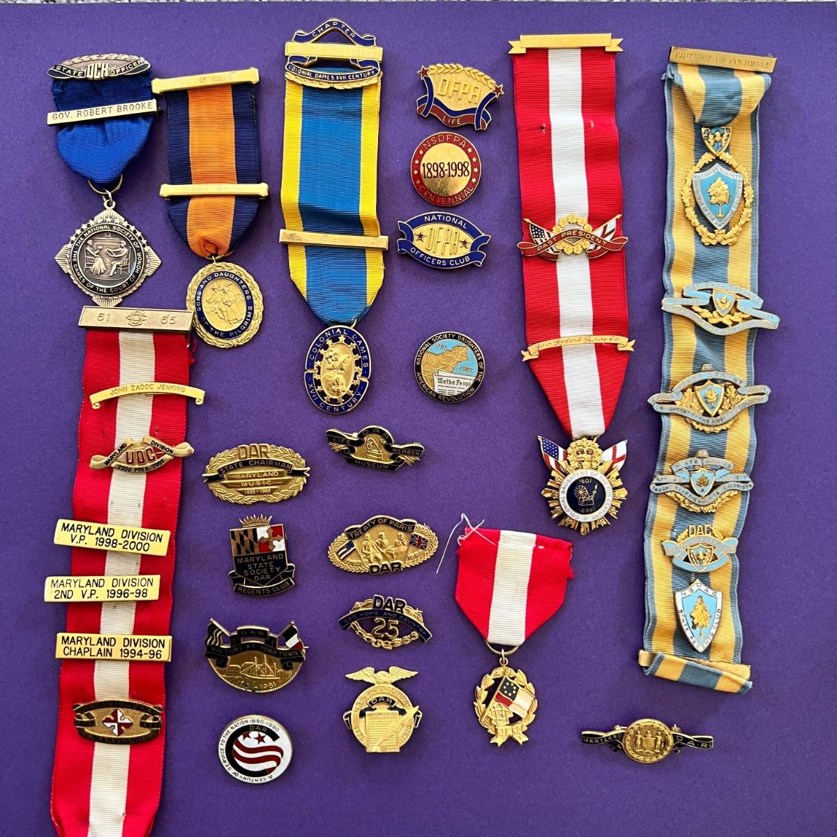 Large lot of badges, ribbons, metals. All are marked gold filled. We are auctioning other lots of similar badges in 10k and 14k gold.