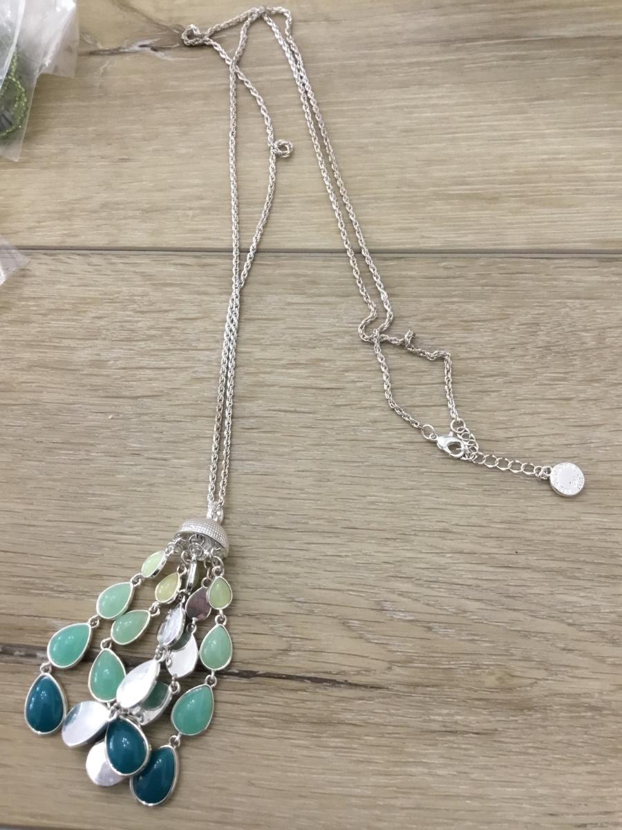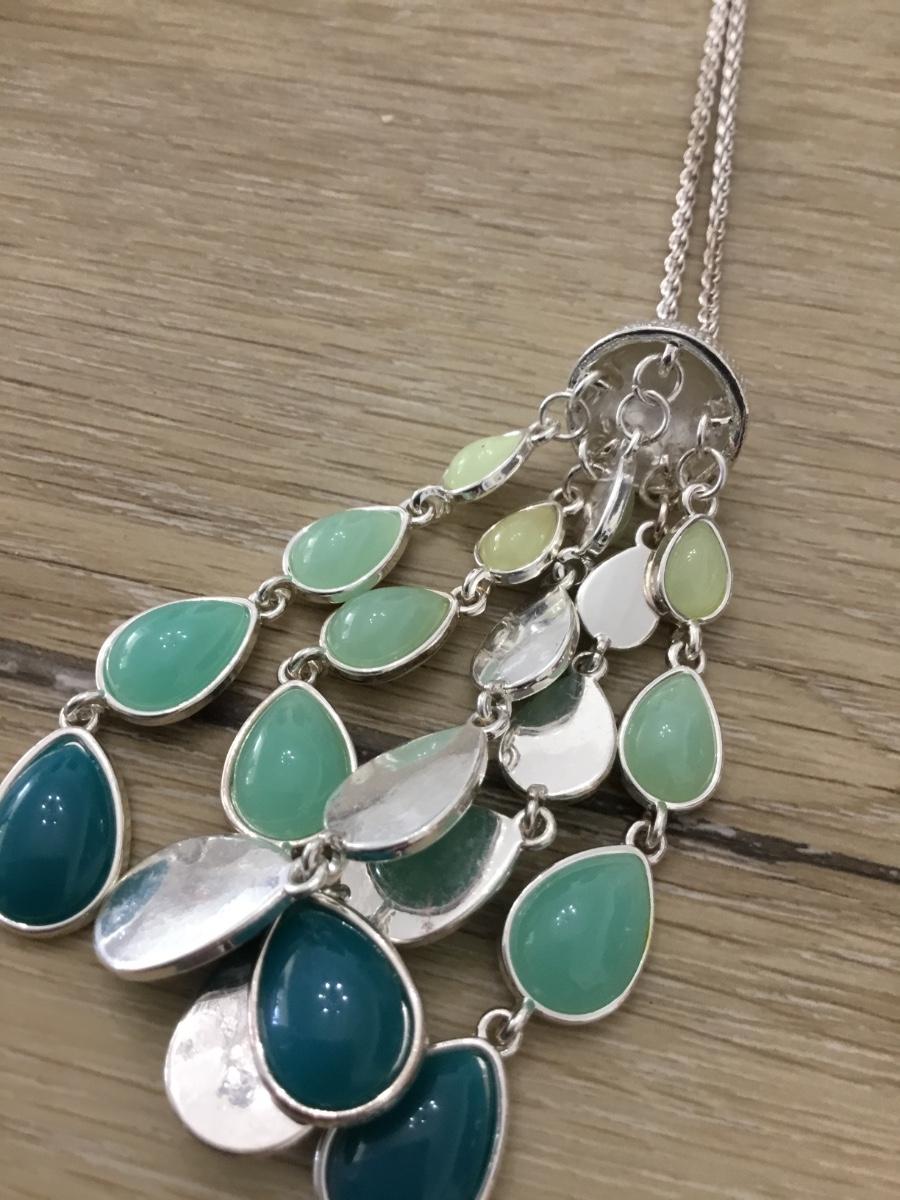 LC marked silver tone blue and greens tassel necklace