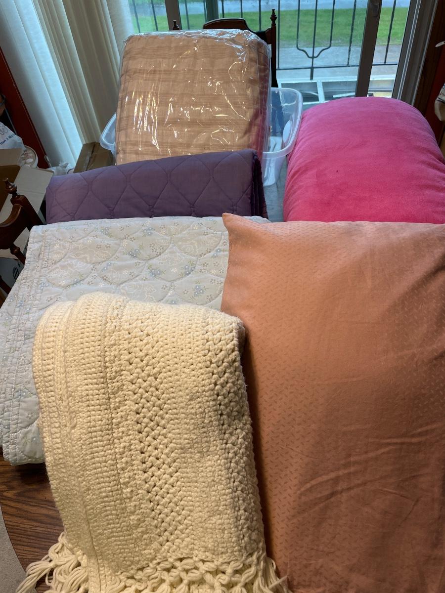 LC1- Twin blankets, afghan, body pillow & 2 other pillows