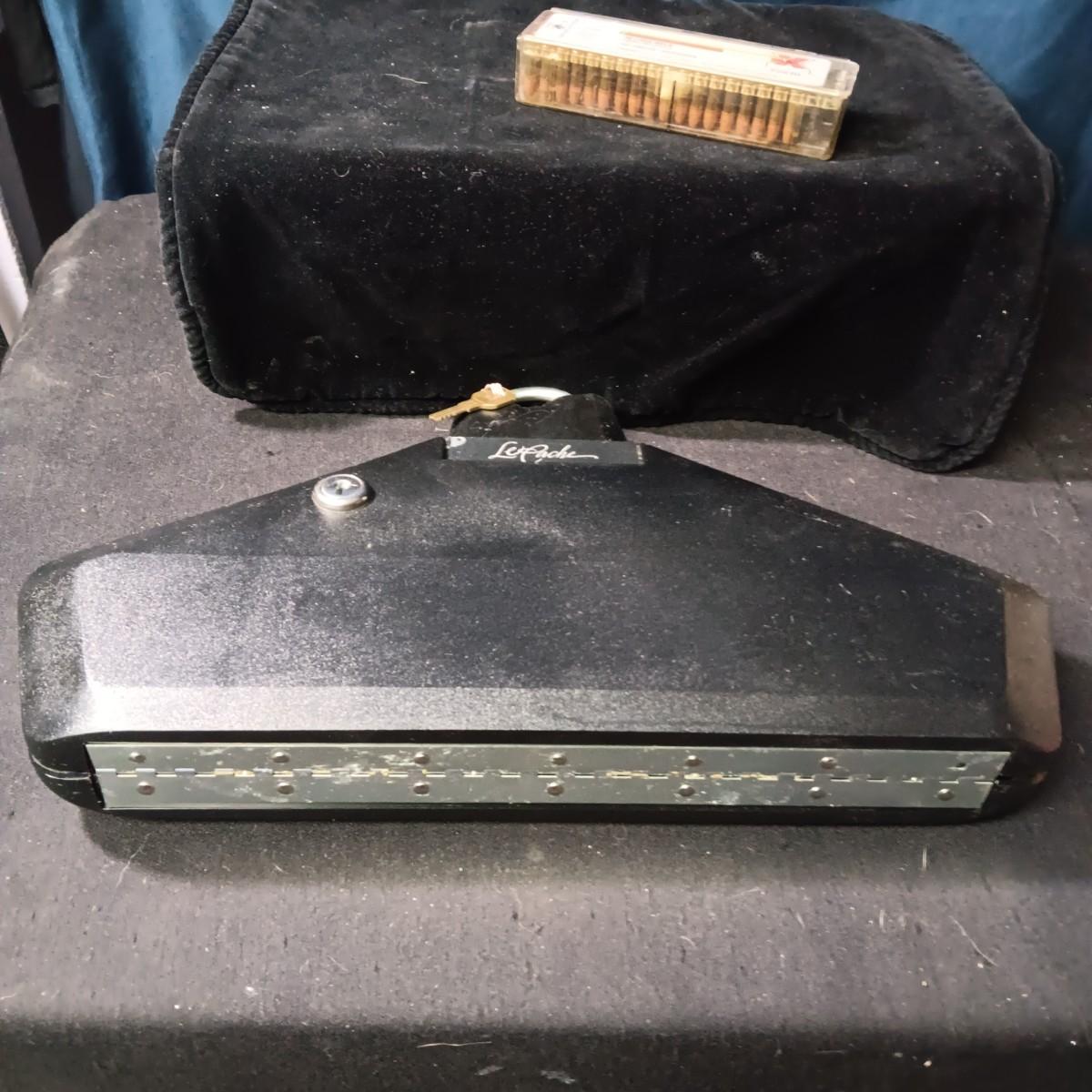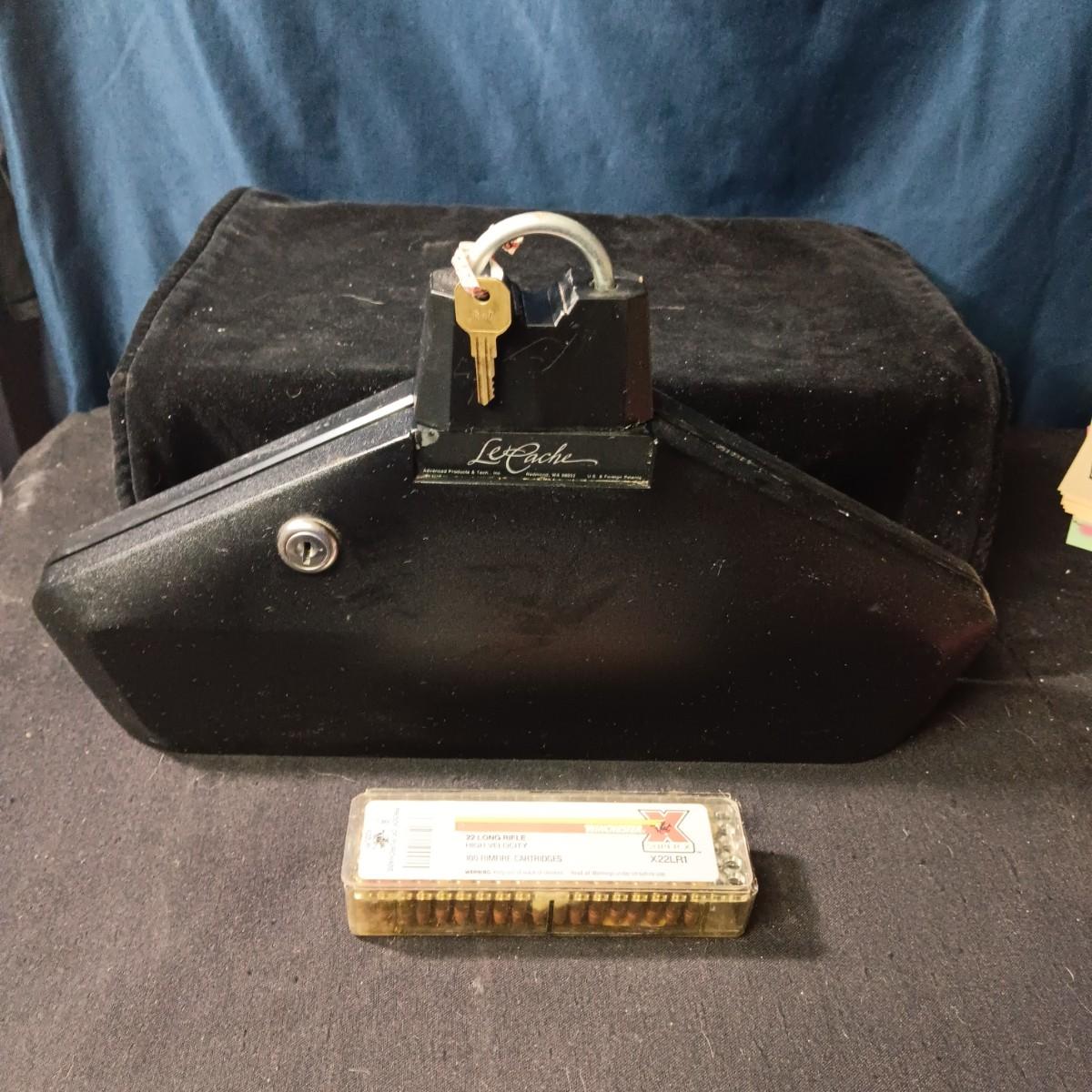 LE CACHE LOCKING GUN\PISTOL CASE AND ALMOST FULL BOX OF 22 LONG RIFLE CARTRIDGES