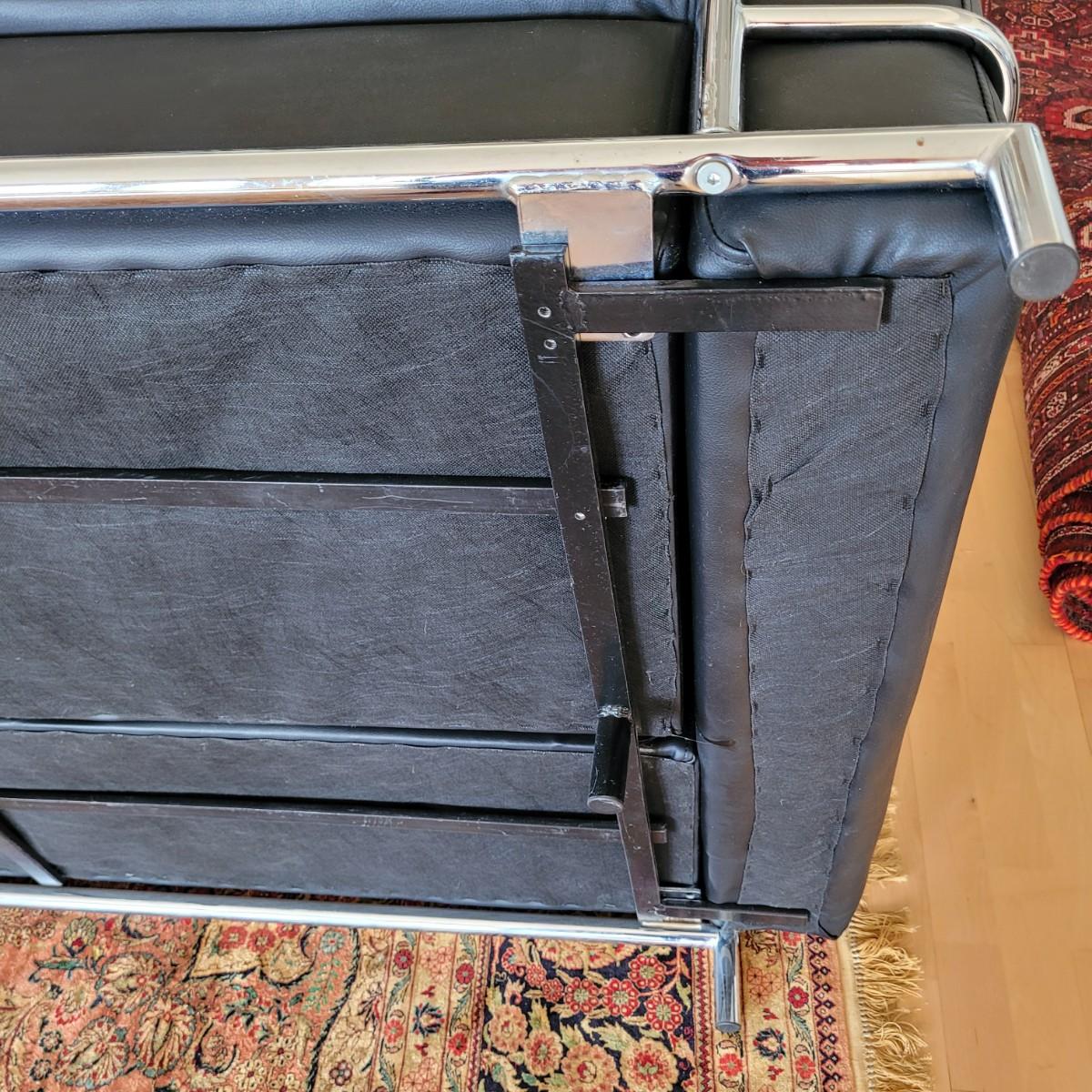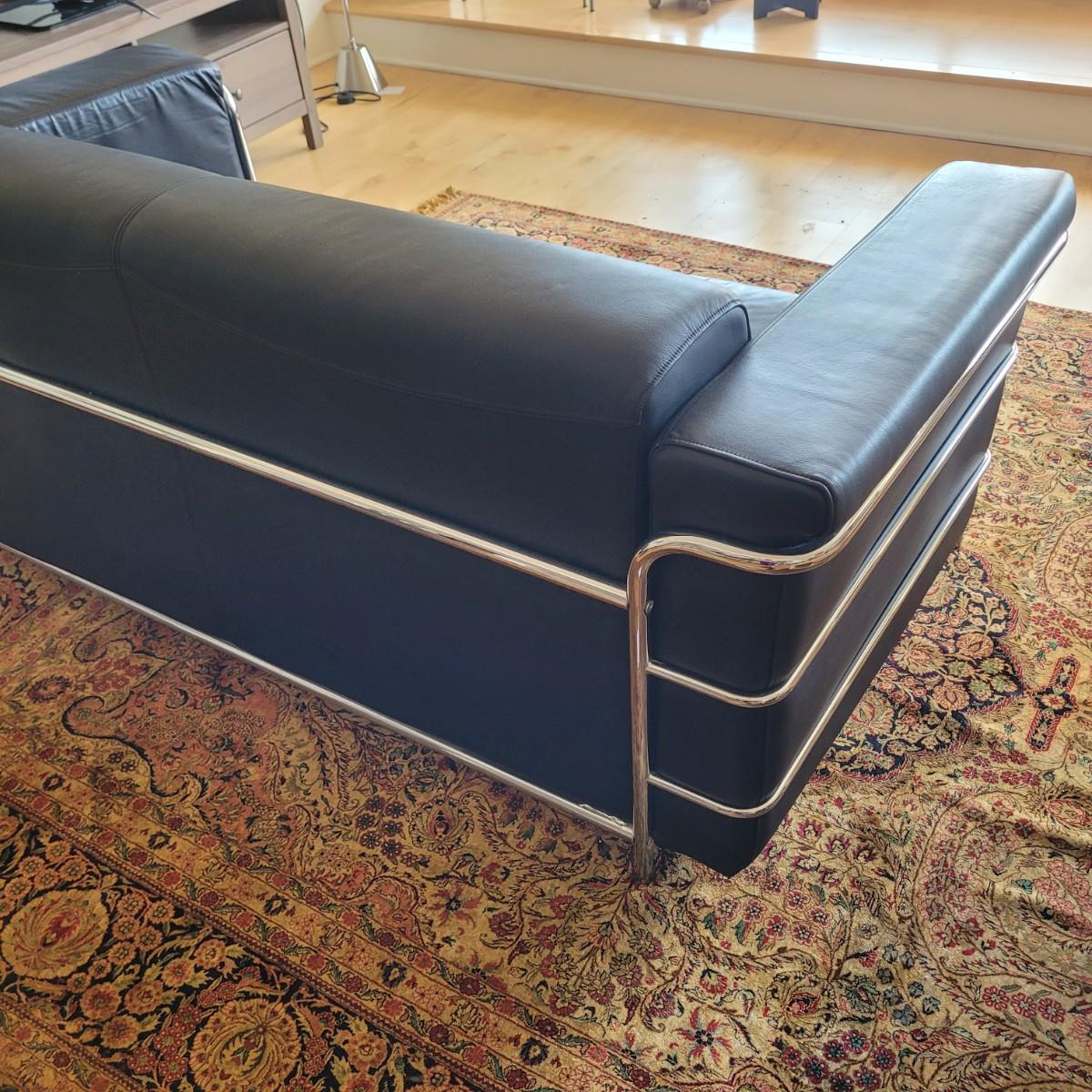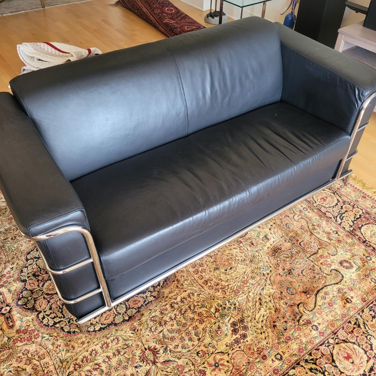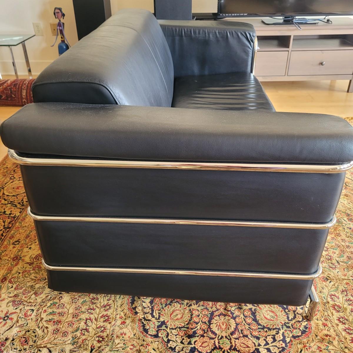 Black Leather and Chrome Frame Sofa (D-EL)
