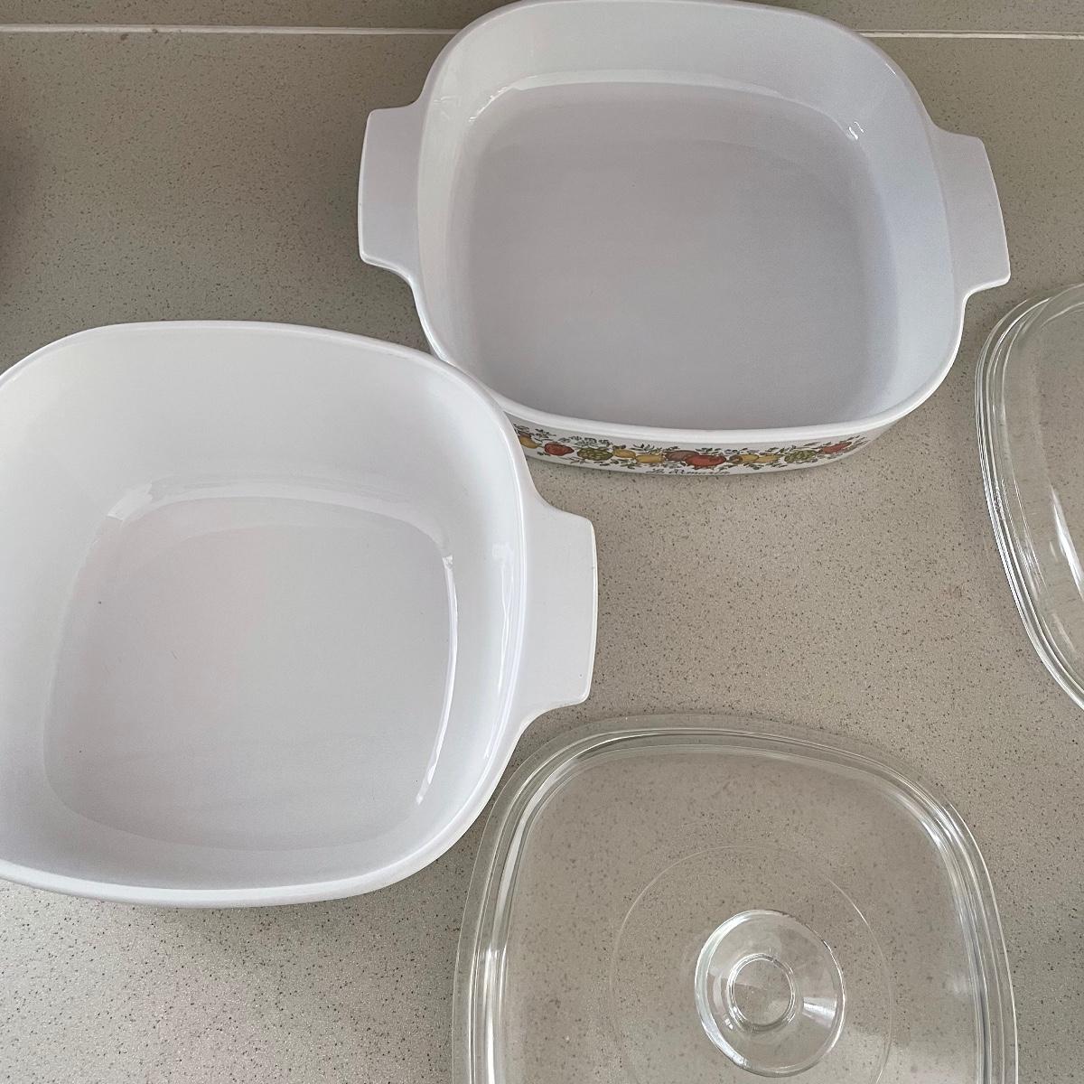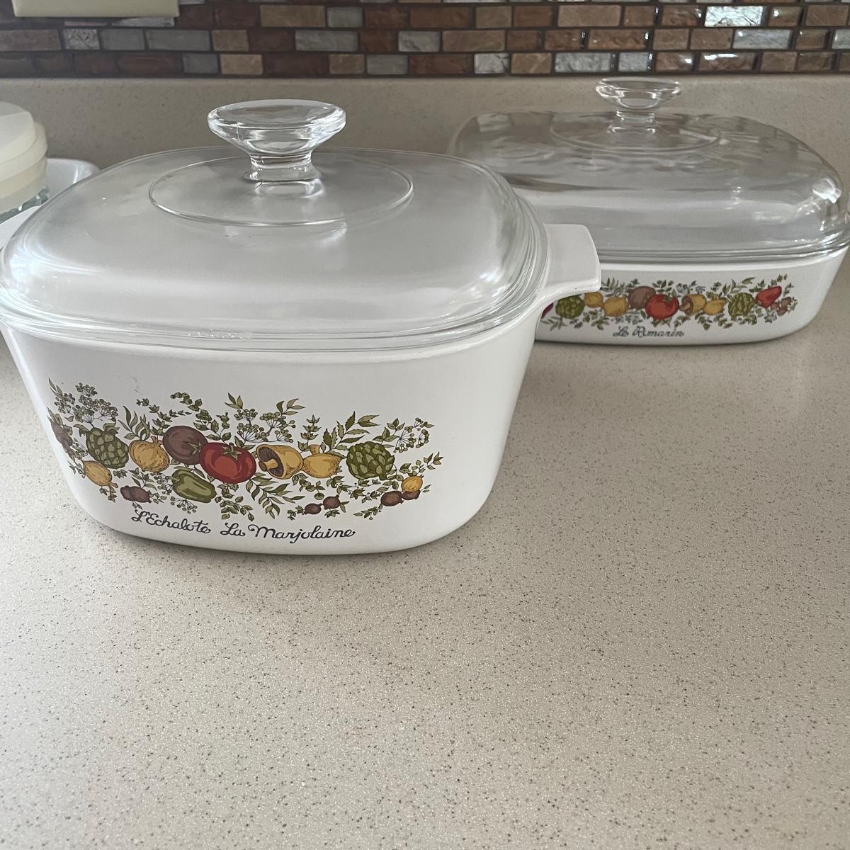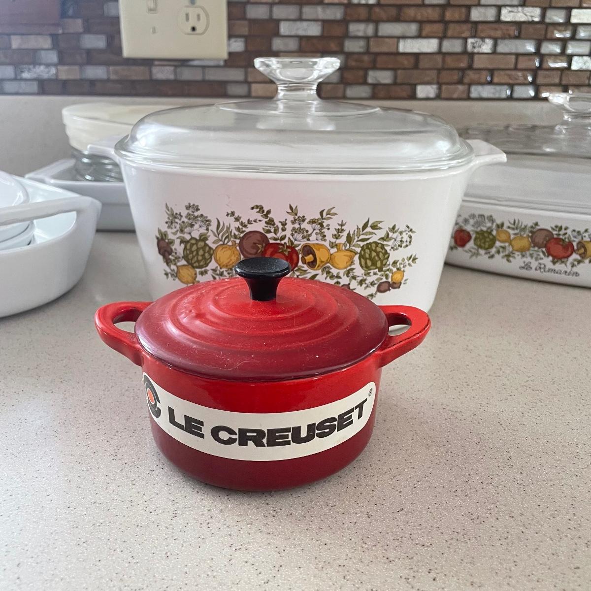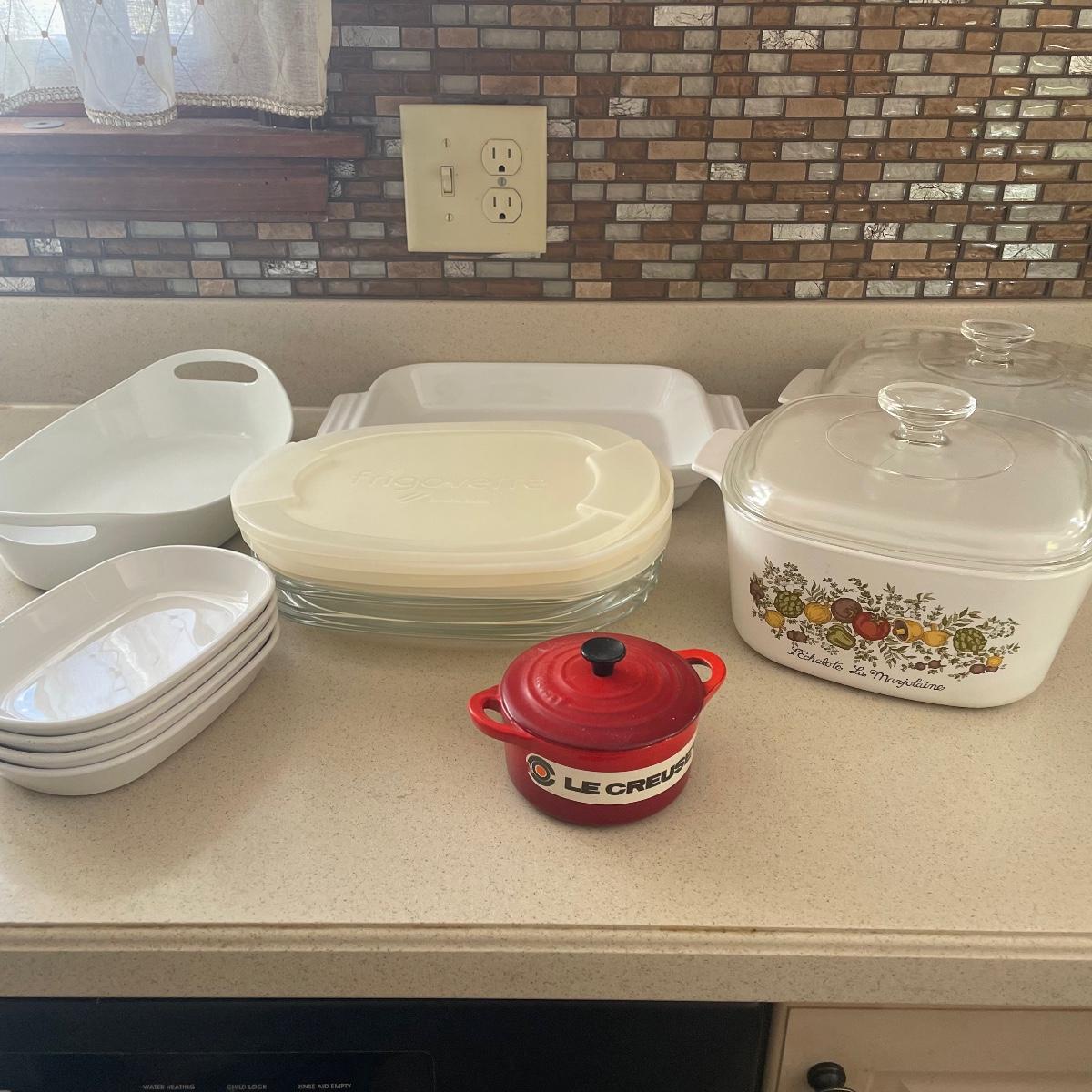 This lot contains a small lidded Le Creuset pot, a couple of large Corning Ware pieces and much more.