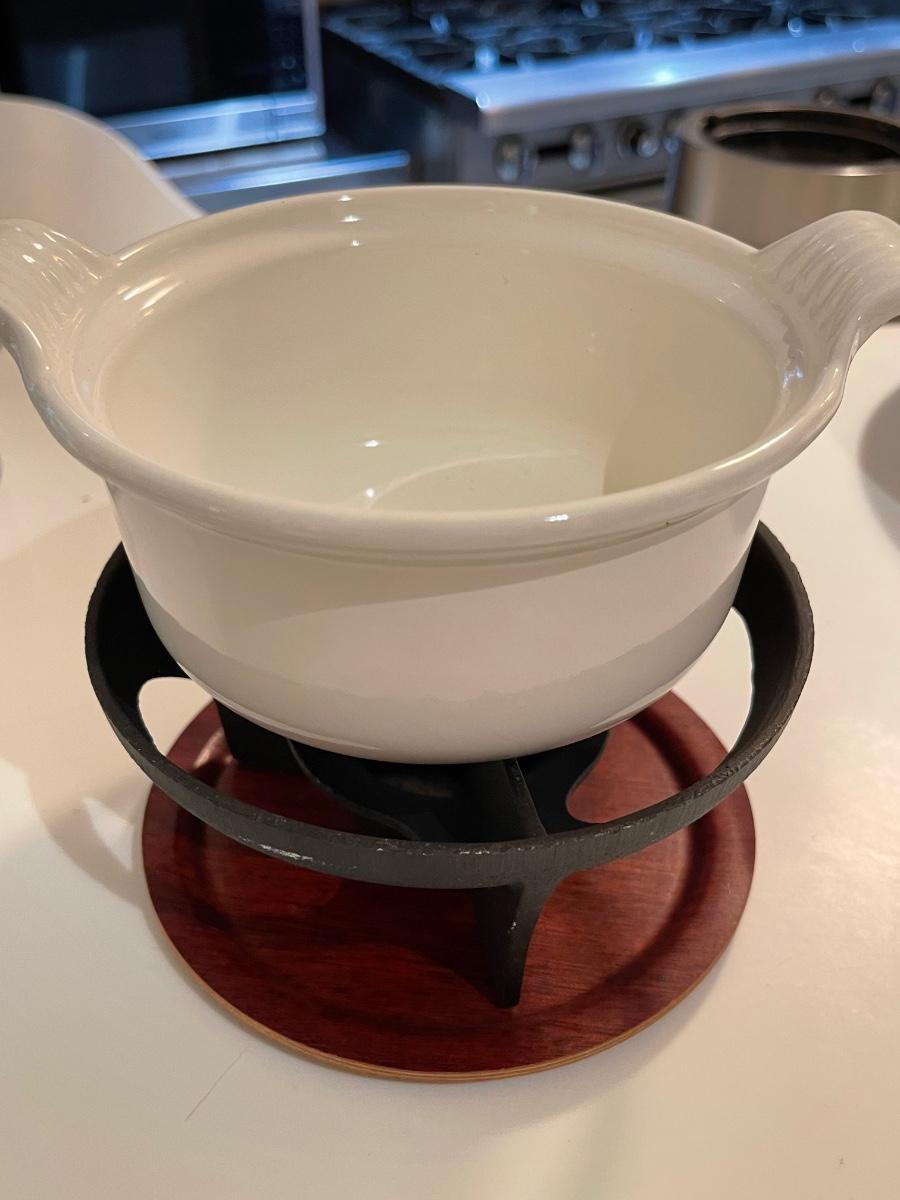 Vintage Le Creuset Mini Fondue Pot with Forks -Made in France