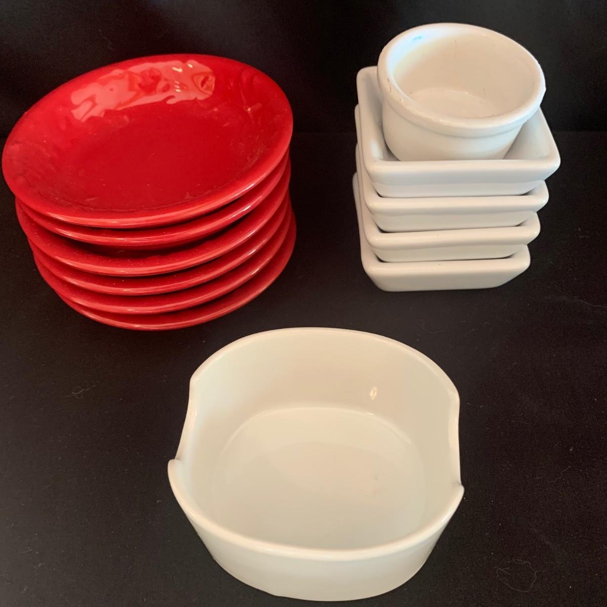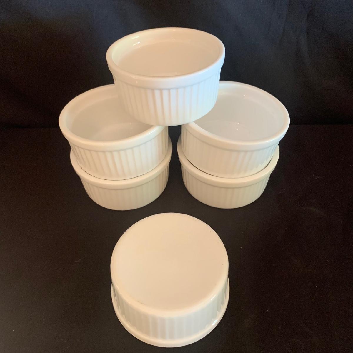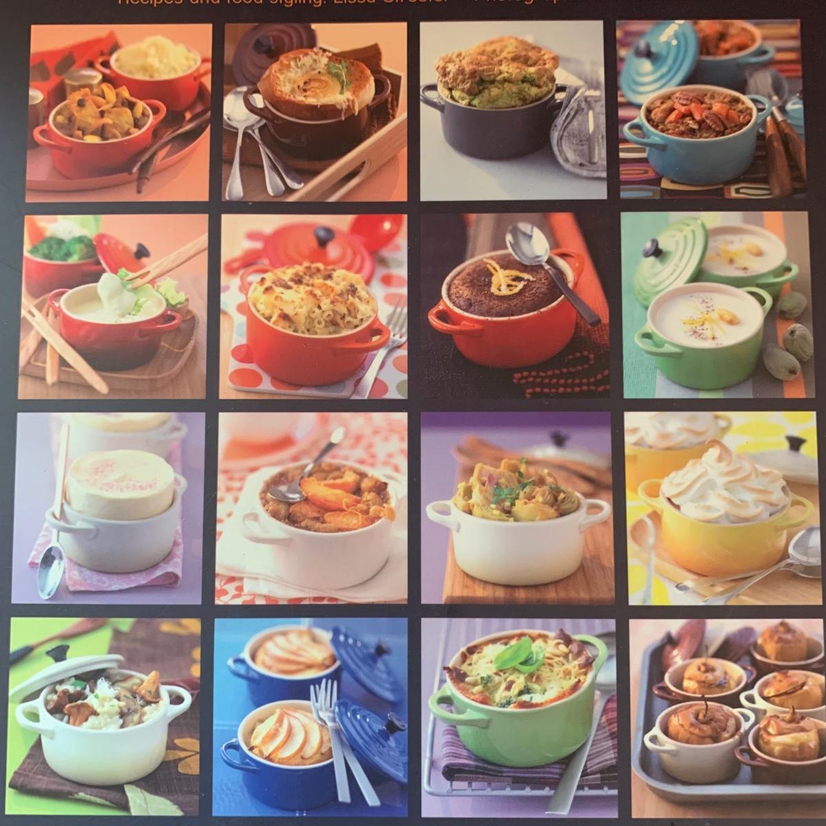Four piece Le Creuset Mini-Cocotte set, Arcoflam France Cookware and More! This lot includes Le Creuset Mini-Cocotte set with book, four Cusinart ramekins, six unbranded soufflé dishes, four white square ramekins, six red ramekins, and one Arcoflam France cookware with glass top. Arcoflam cookware is missing the handle. Please see photos for more details. Mini Le Creuset dishes measure, 4”D x 2”H and Arcoflam dish measures approximately, 10.25”D x 6”H. Shipping available.