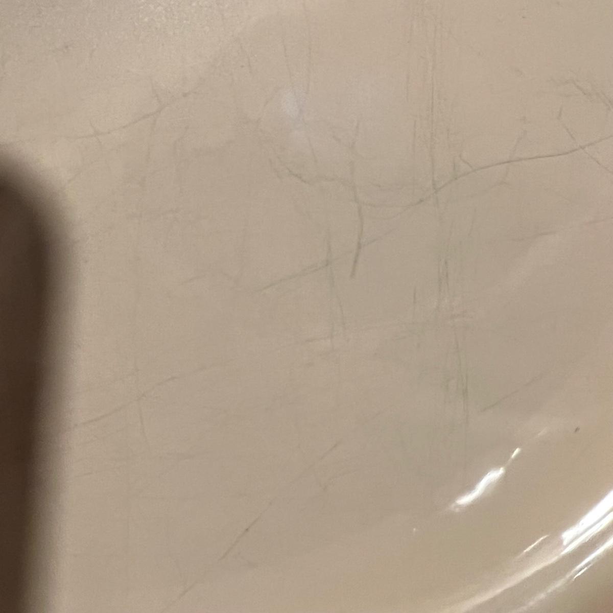 Some light cutlery scratches on the small blue dish, see image.