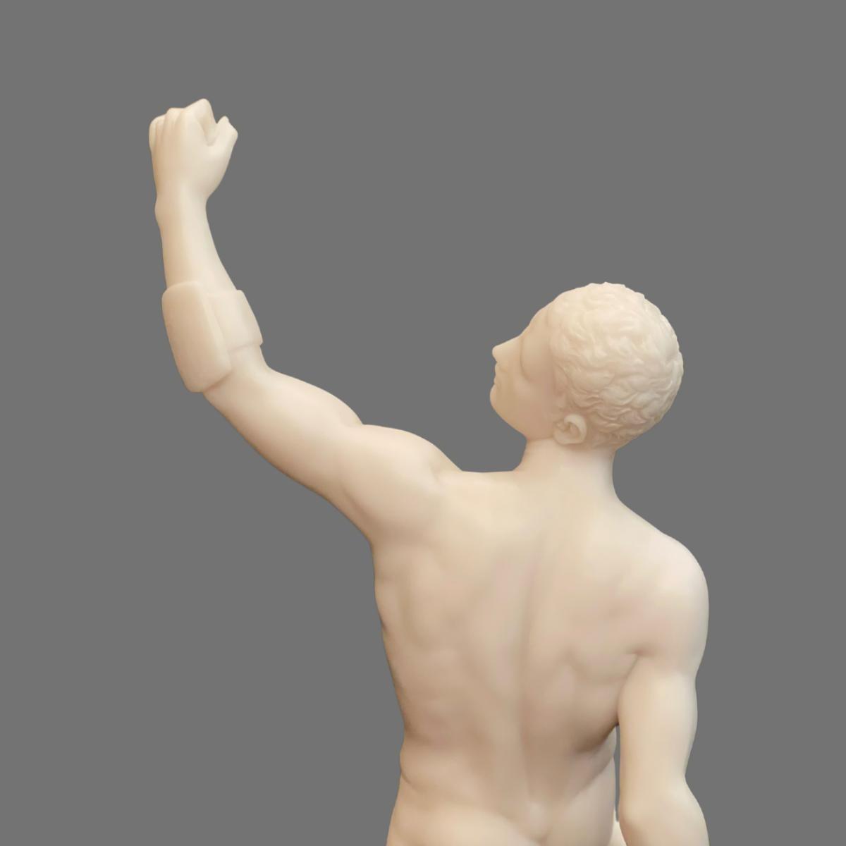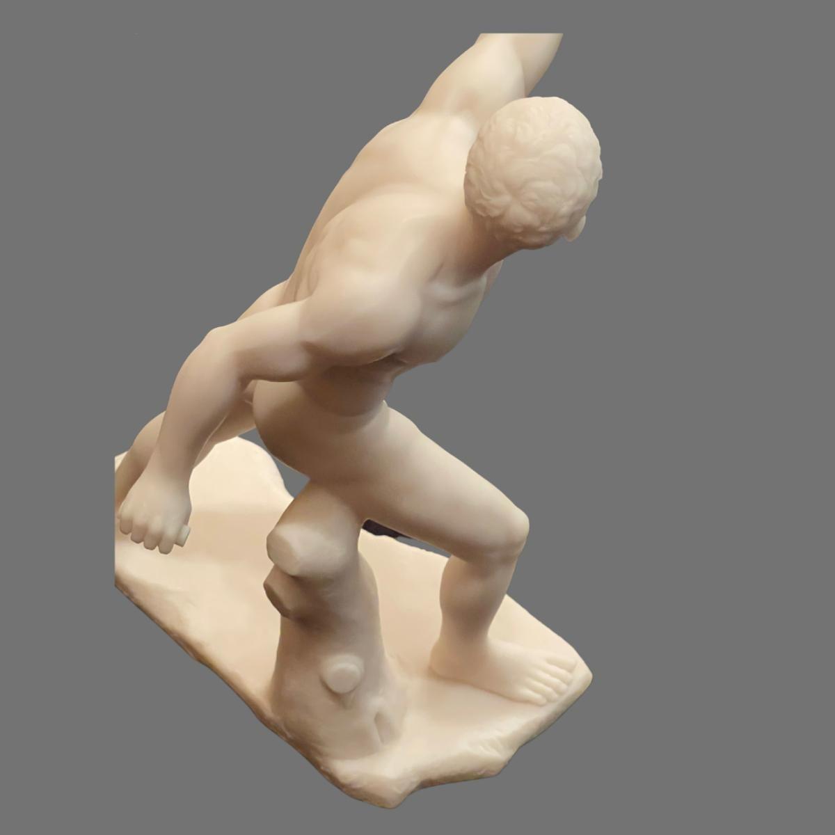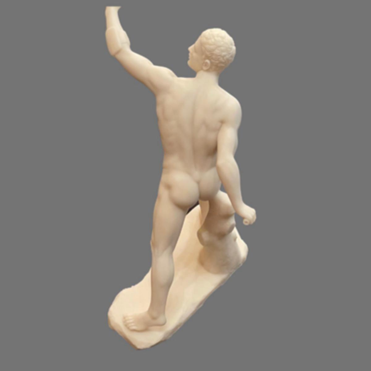 This sculpture represents Achilles at war with a horse-mounted combatant. It has a nude portion. It measures 13" tall.