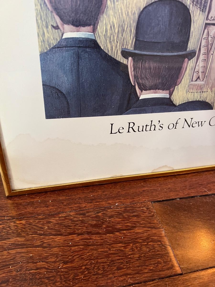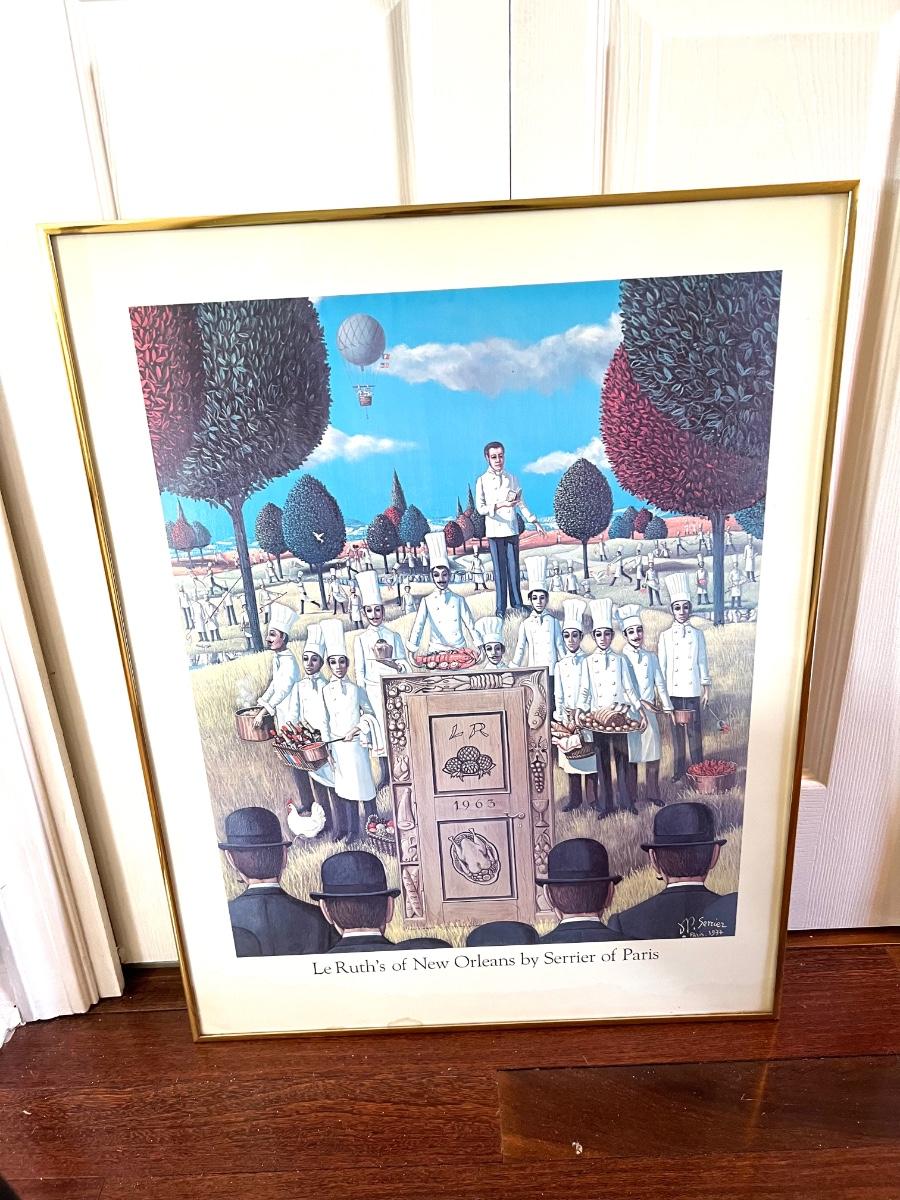 LE RUTH'S OF NEW ORLEANS BY SERRIER OF PARIS 1977 framed by Hippard Gallery. Measures 26 inches tall and 20 inches wide. **See pictures of bottom, water damage can be seen.