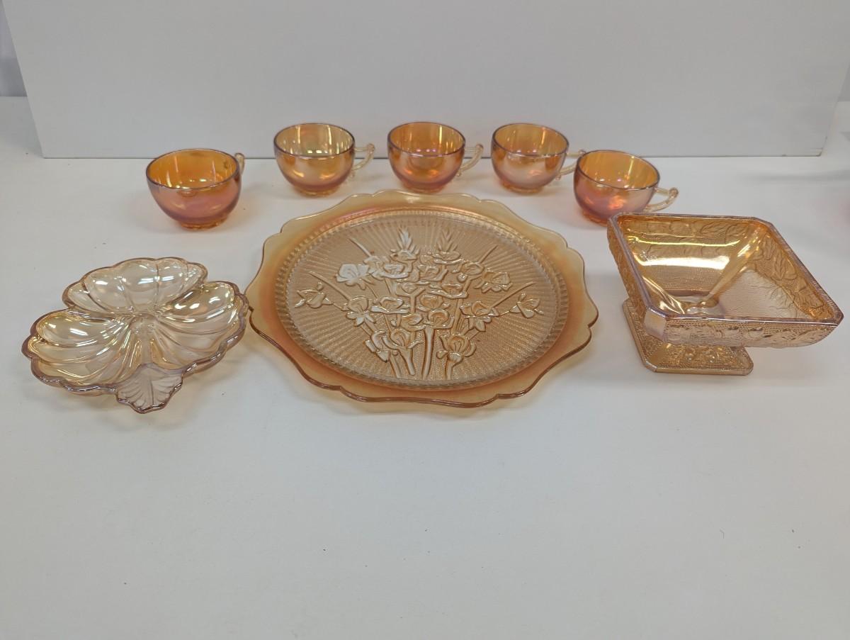 LE Smith 3-Footed Trinket Dish Jeanette Carnival Glass #56