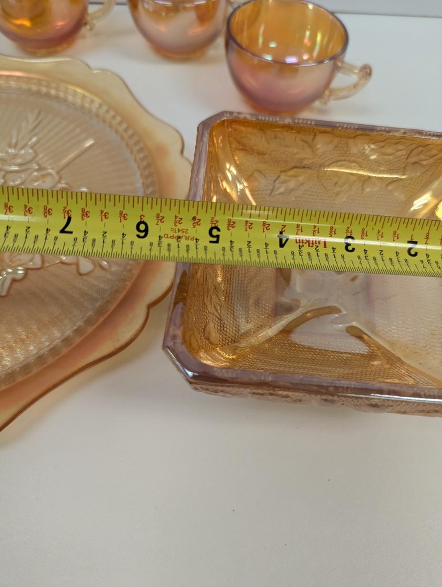 LE Smith 3 Footed Trinket Dish Jeanette Carnival Glass