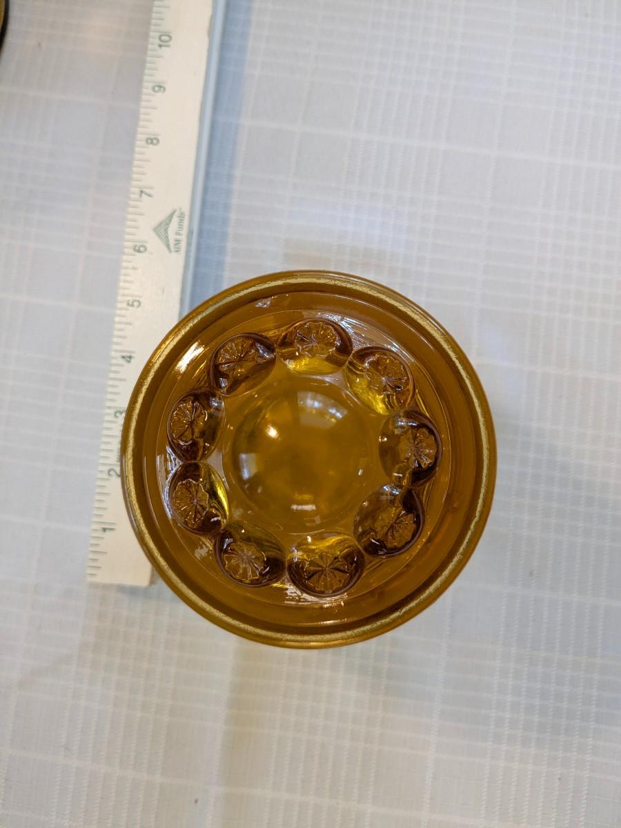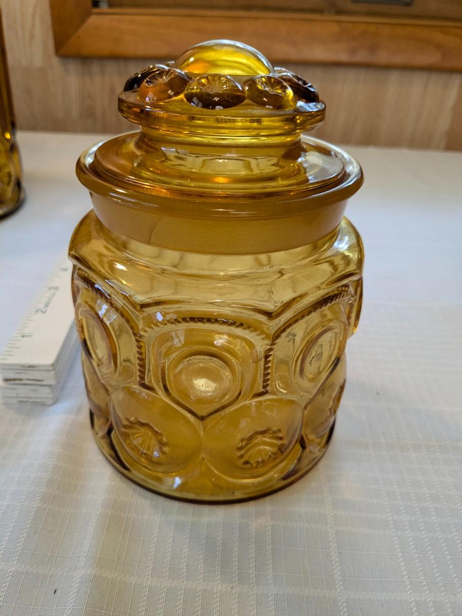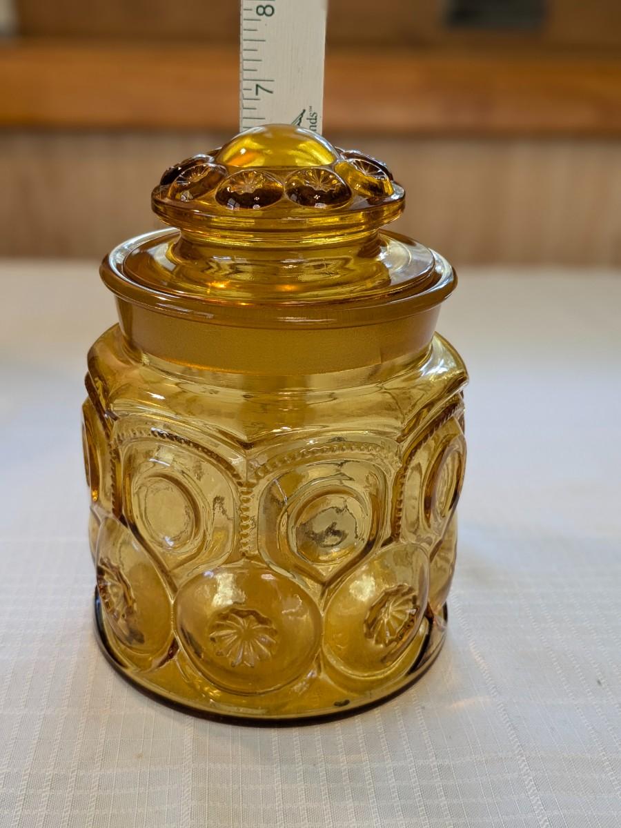 LE Smith Canister & Lid Pressed Amber Glass Moon & Stars