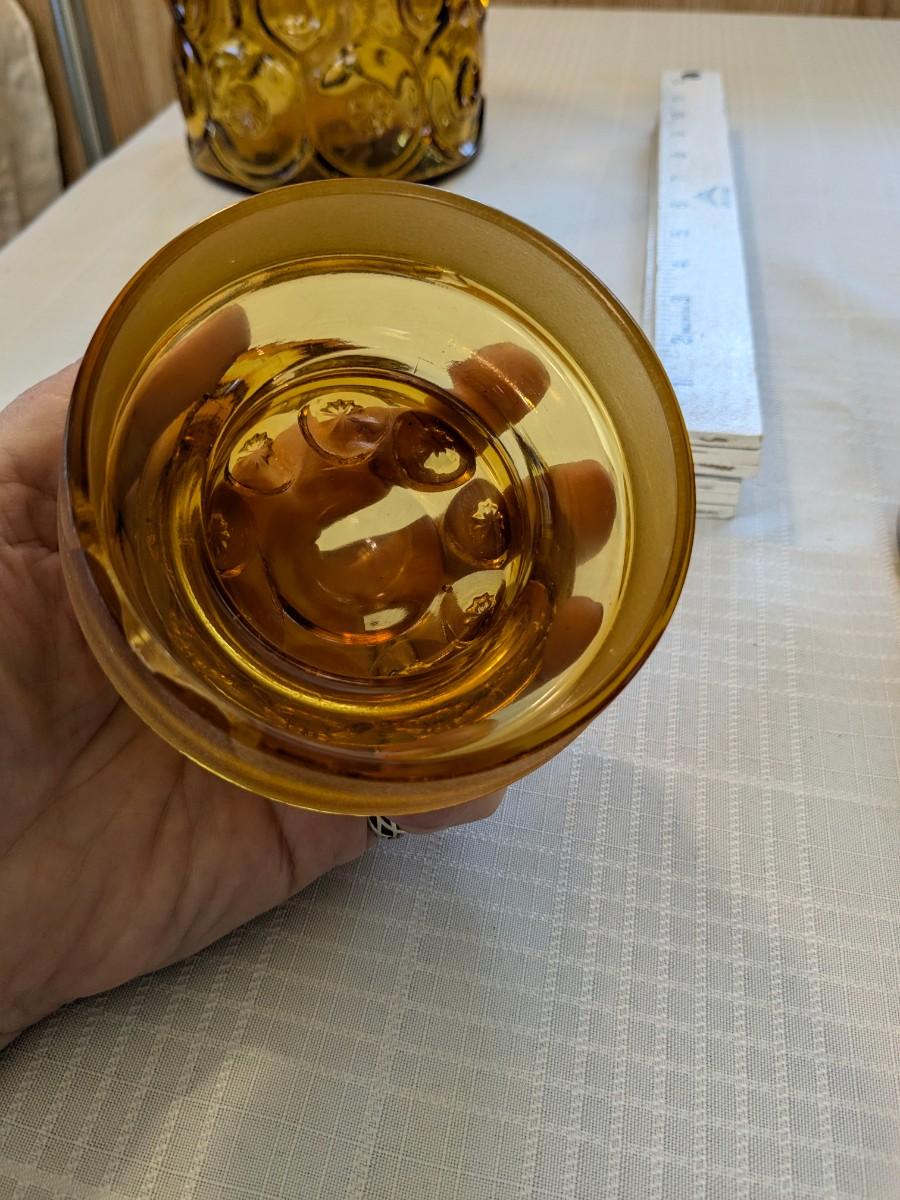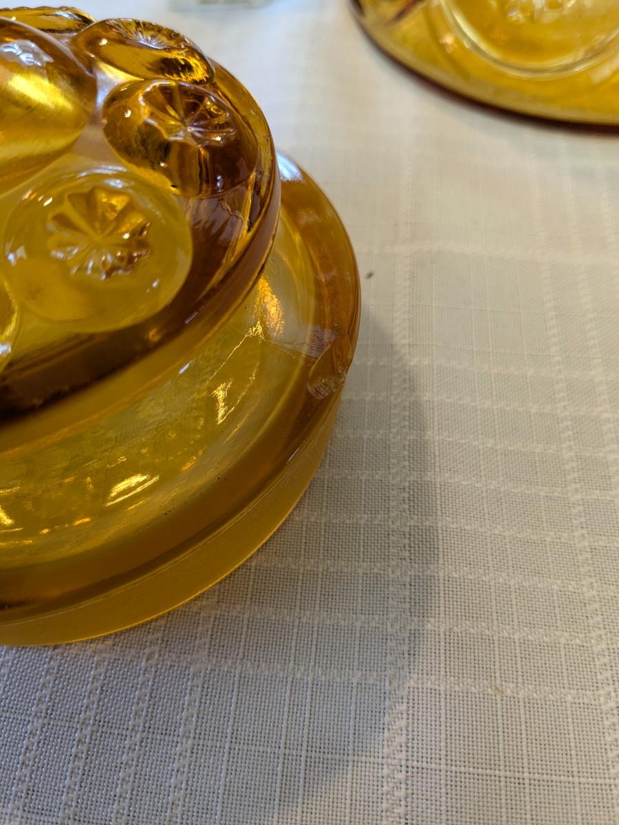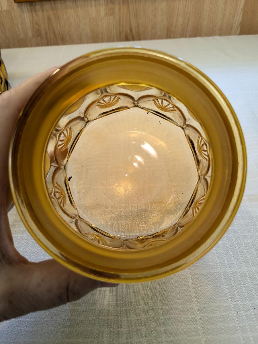 LE Smith Canister & Lid Pressed Amber Glass Moon & Stars