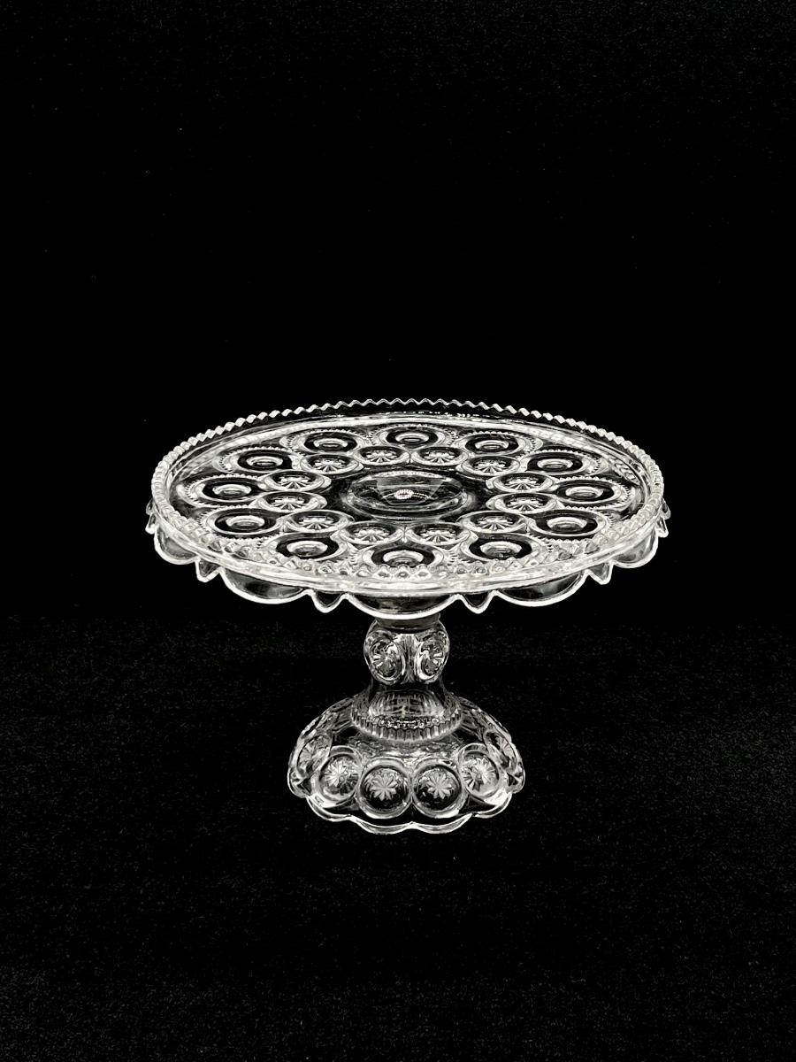 L.E. SMITH GLASS CO. ~ Moon & Stars ~ Vtg. 10” Skirted Cake Stand