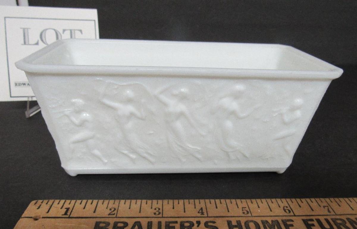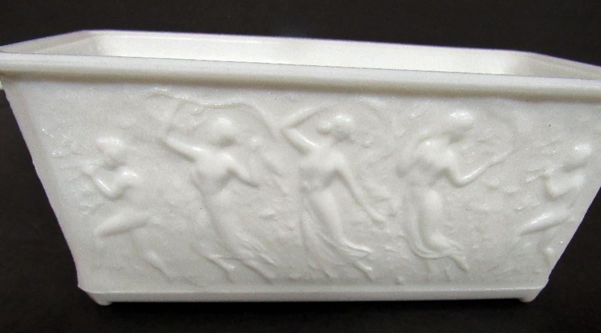 LE Smith Glass Dancing Nudes Milk Glass Planter