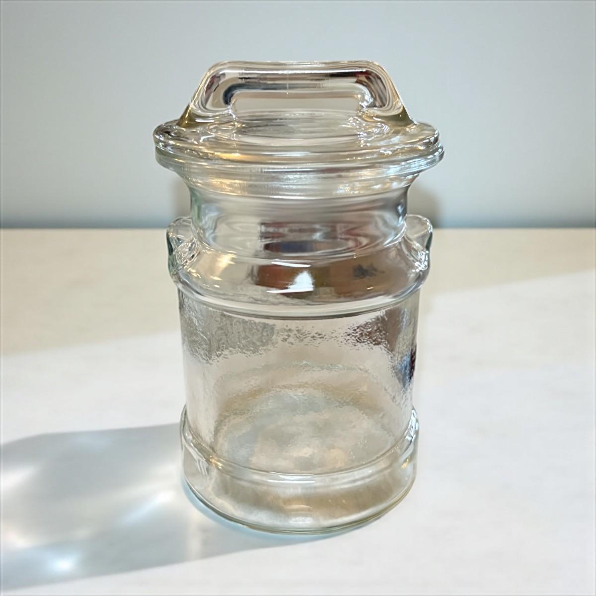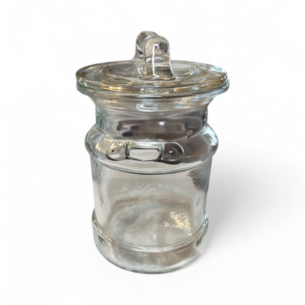 L.E. Smith Milk Can Shaped Clear Glass Cookie Jar or Canister