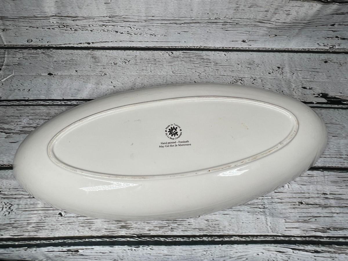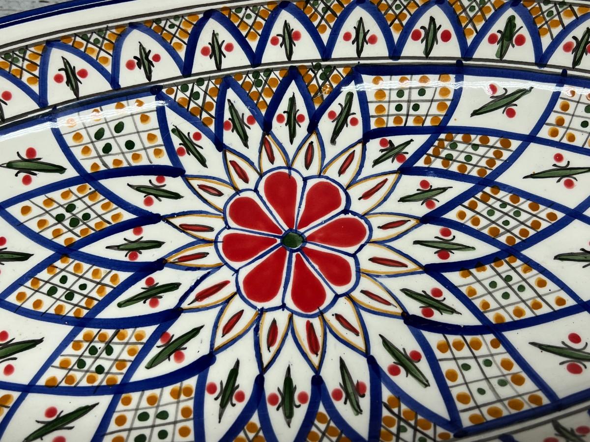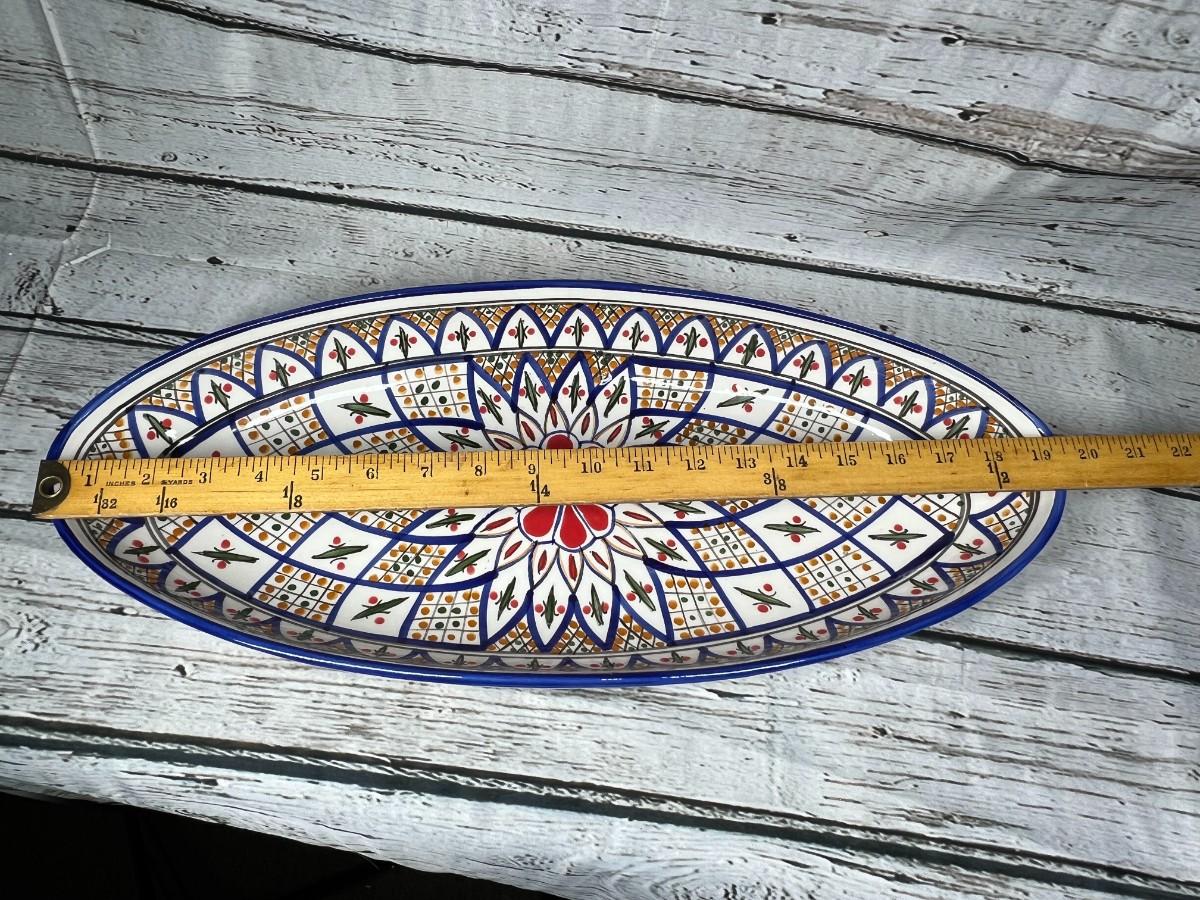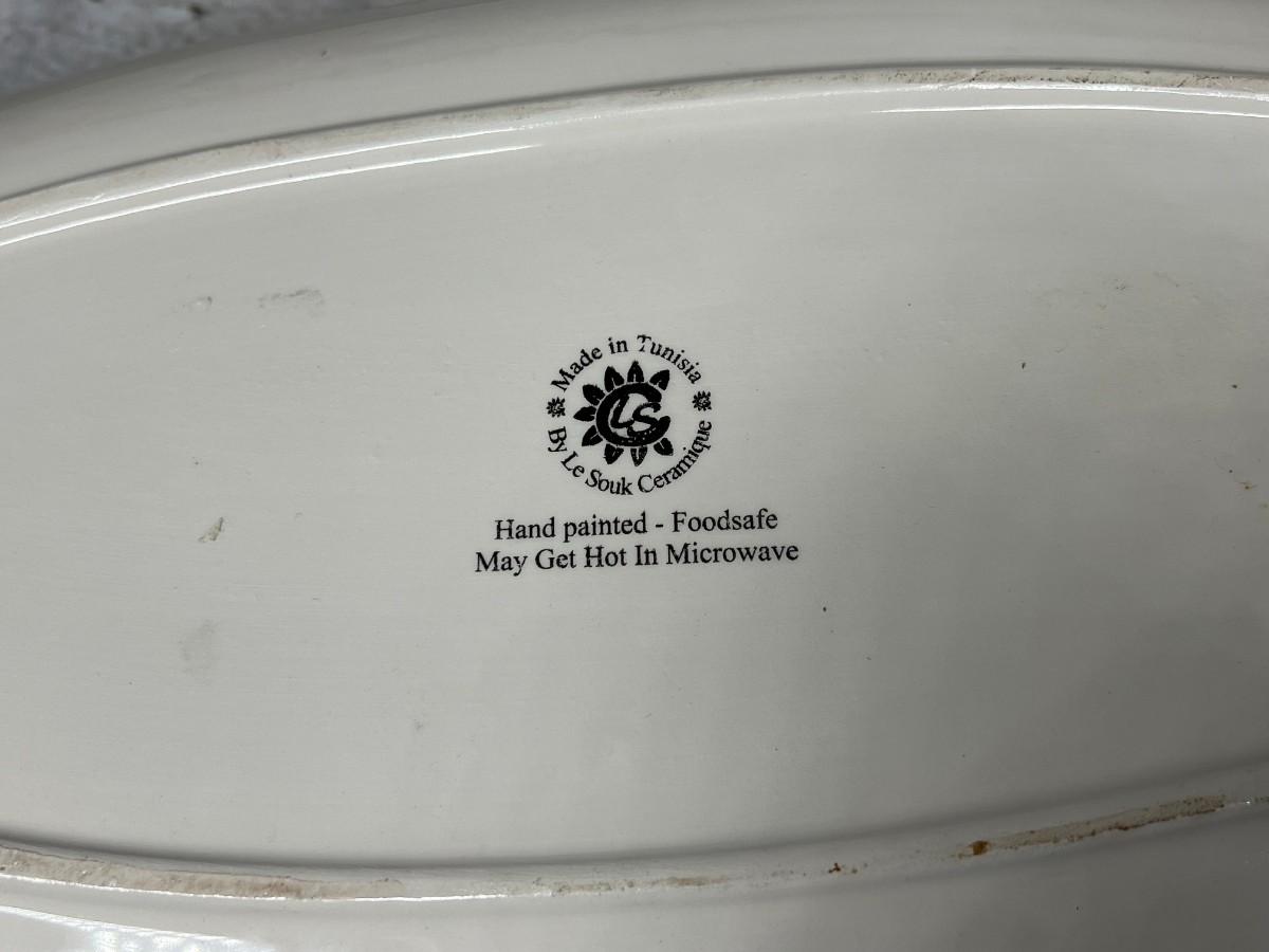Le Souk Ceramique Made in Tunisia Long Rounded Ceramic Serving Dish Bowl, there is no significant damage to the dish and is in good useable condition. Check pictures for more details and for sizing.
