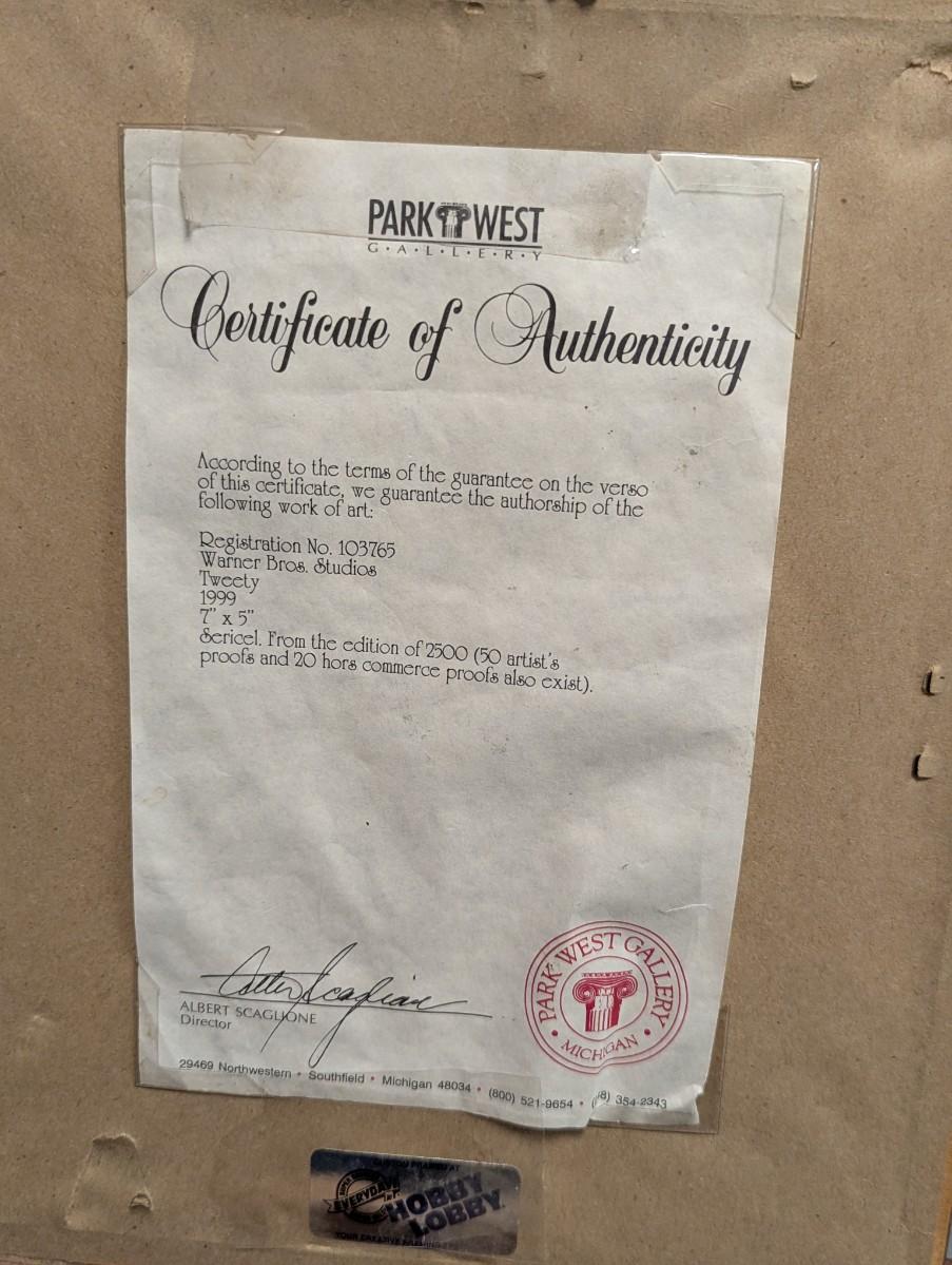 LE Warner Bros. Studios Tweety Bird Animation Art 7" x 5" w/ COA