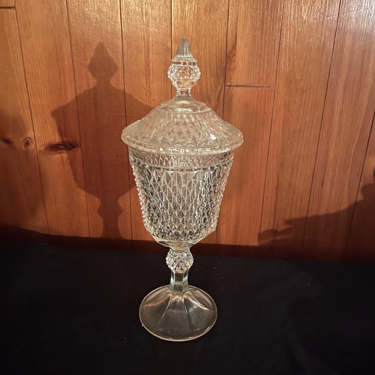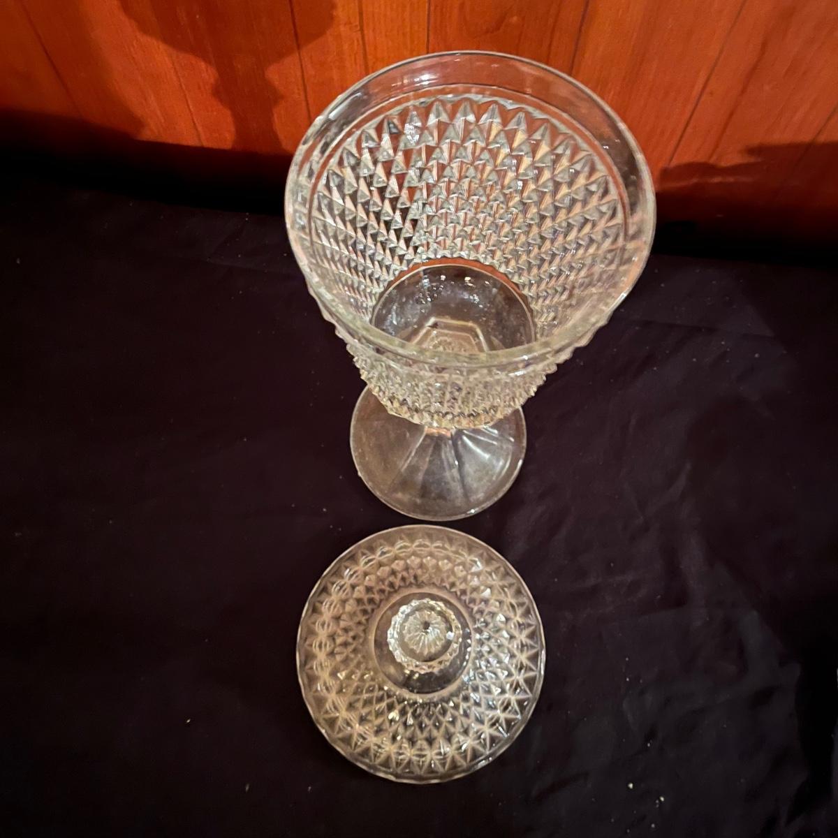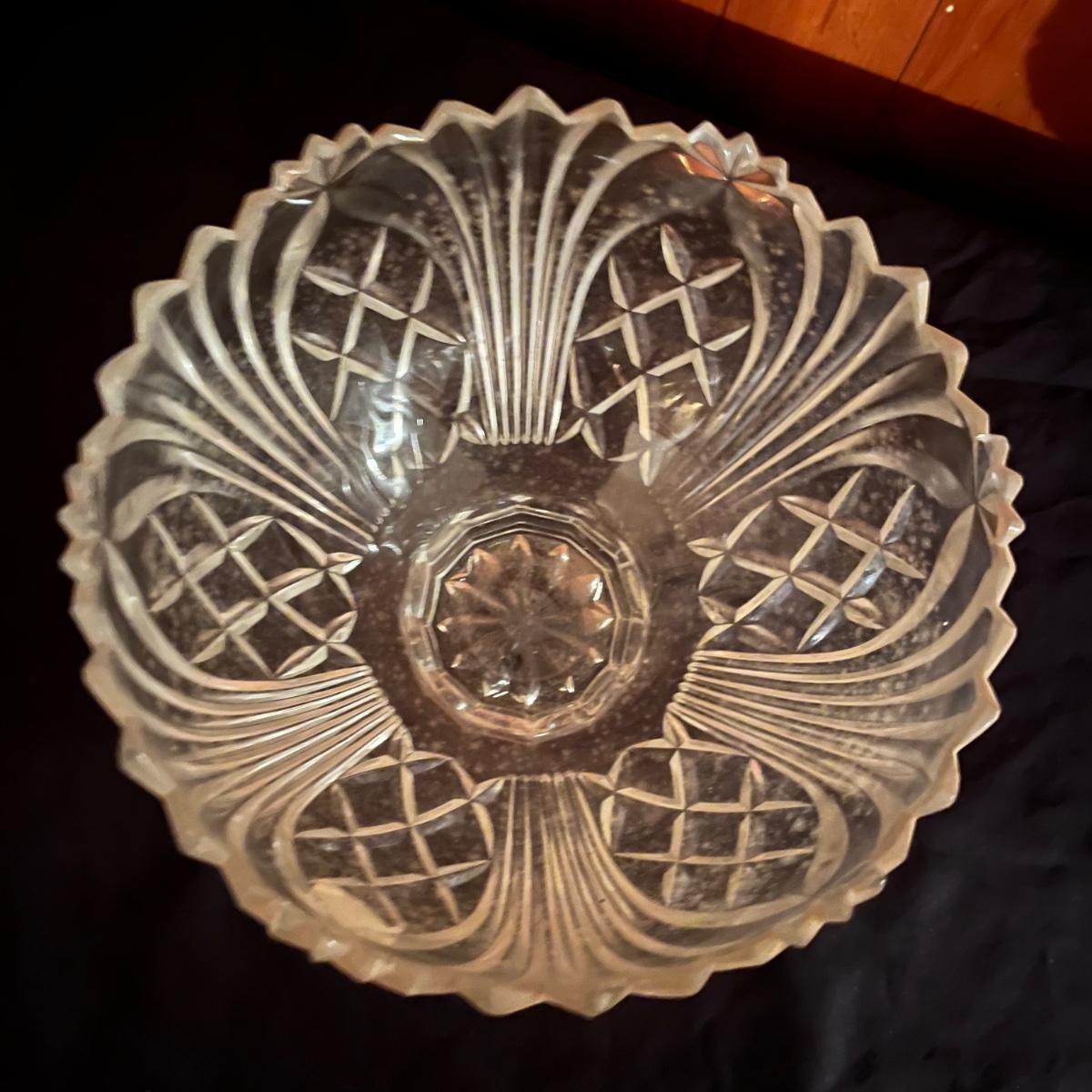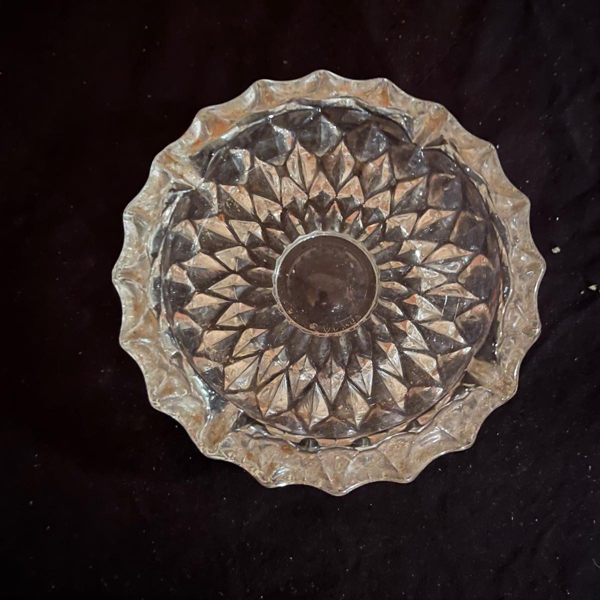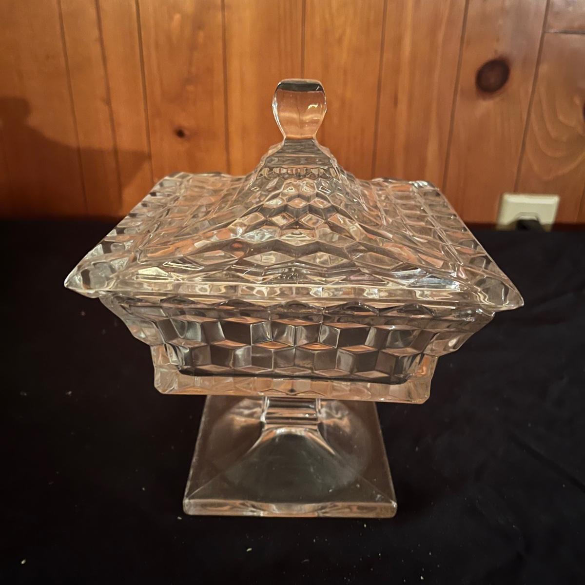 Lot includes a Meridian lead crystal bowl, formed glass bowl, two foot bowls with lids, ashtray, small bowl and more.