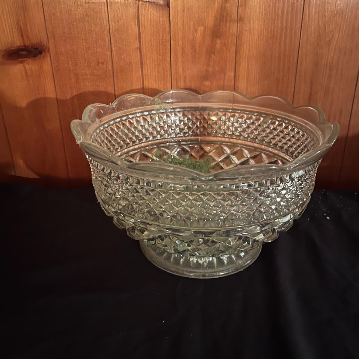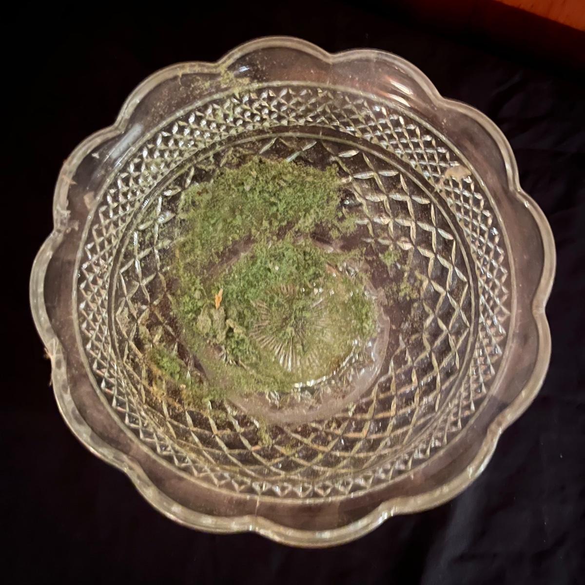 Largest bowl measures 10”D x 5.5” tall and has green floral foam stuck to inside, see pictures.