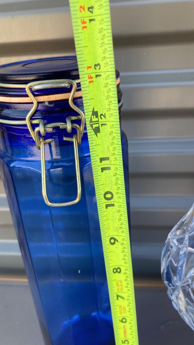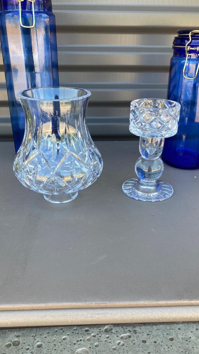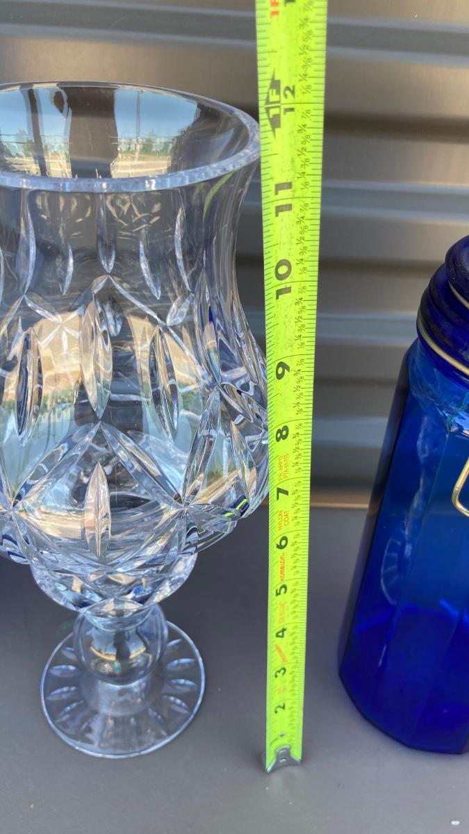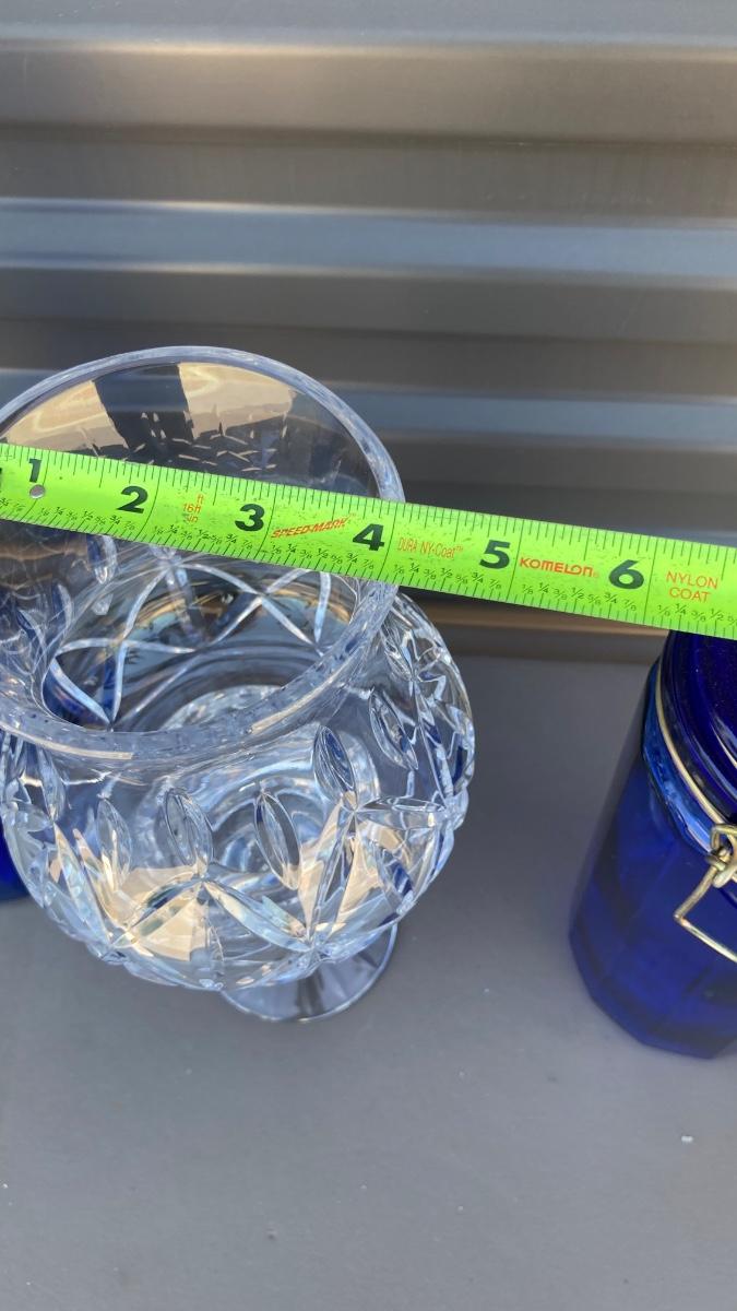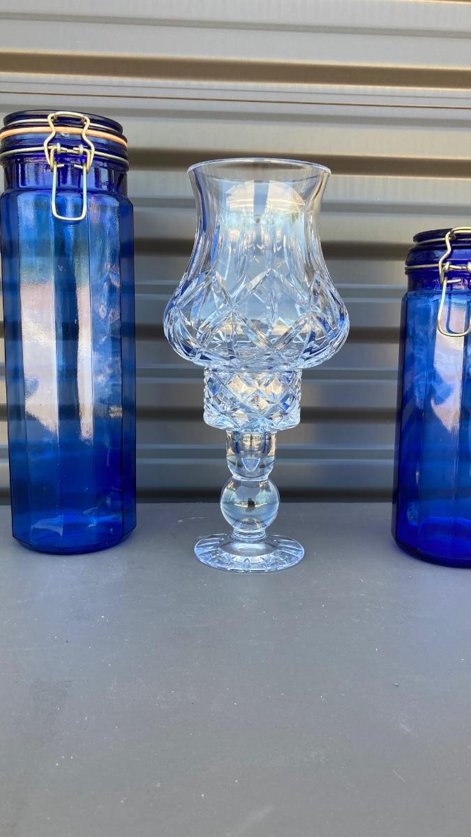 LEAD CRYSTAL CANDLE •¯ï¸ HOLDER AND COBALT BLUE CANISTERS, GLASS Decanter with no stopper
