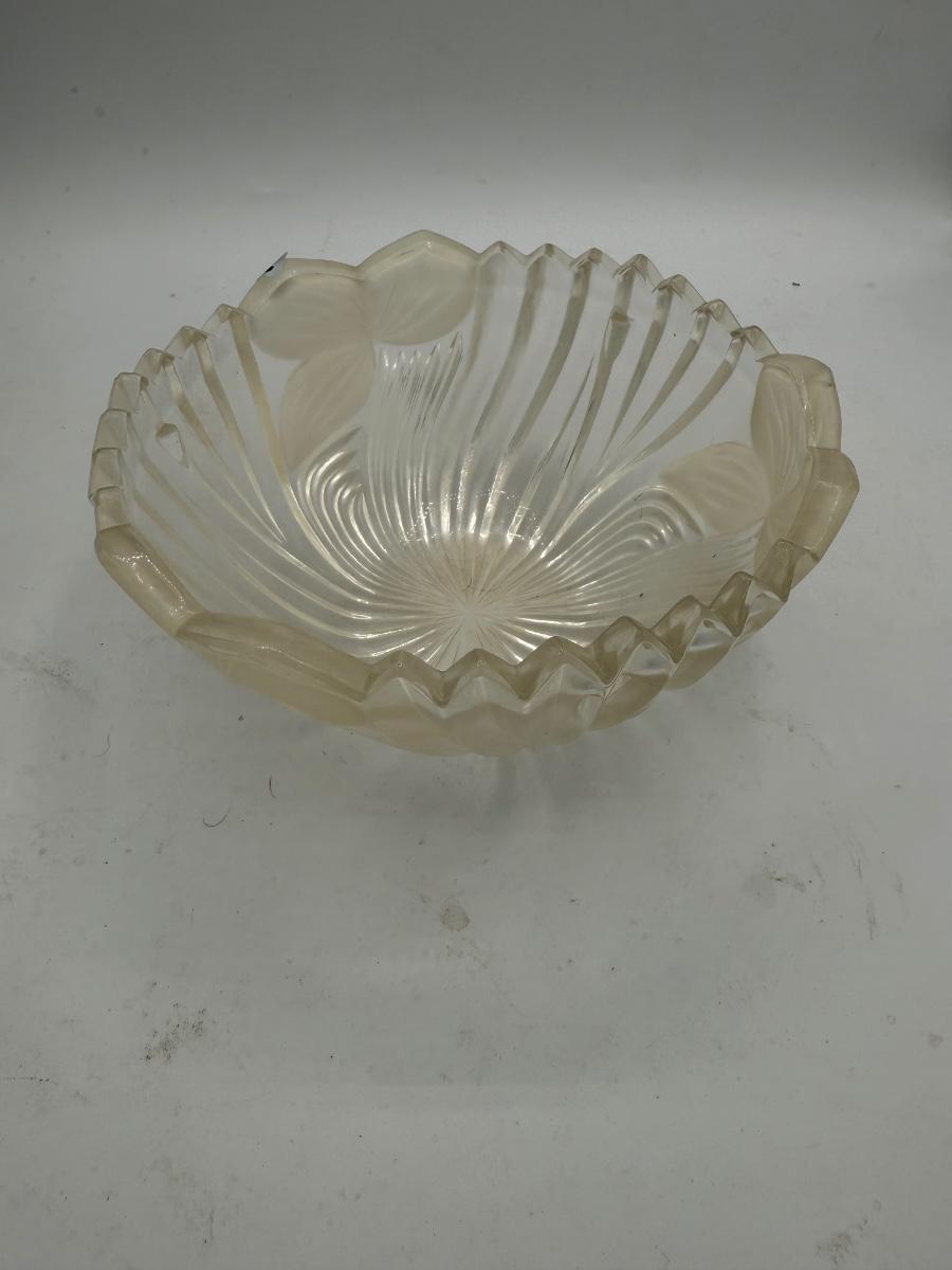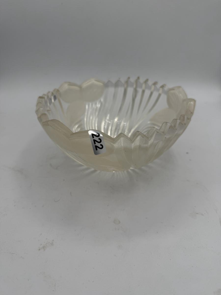 Lead crystal clear bowl w/ frosted bows & scalloped edges