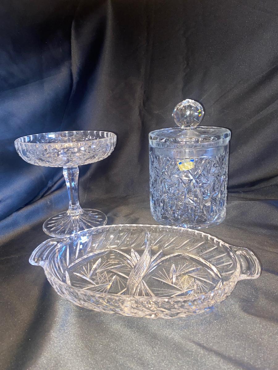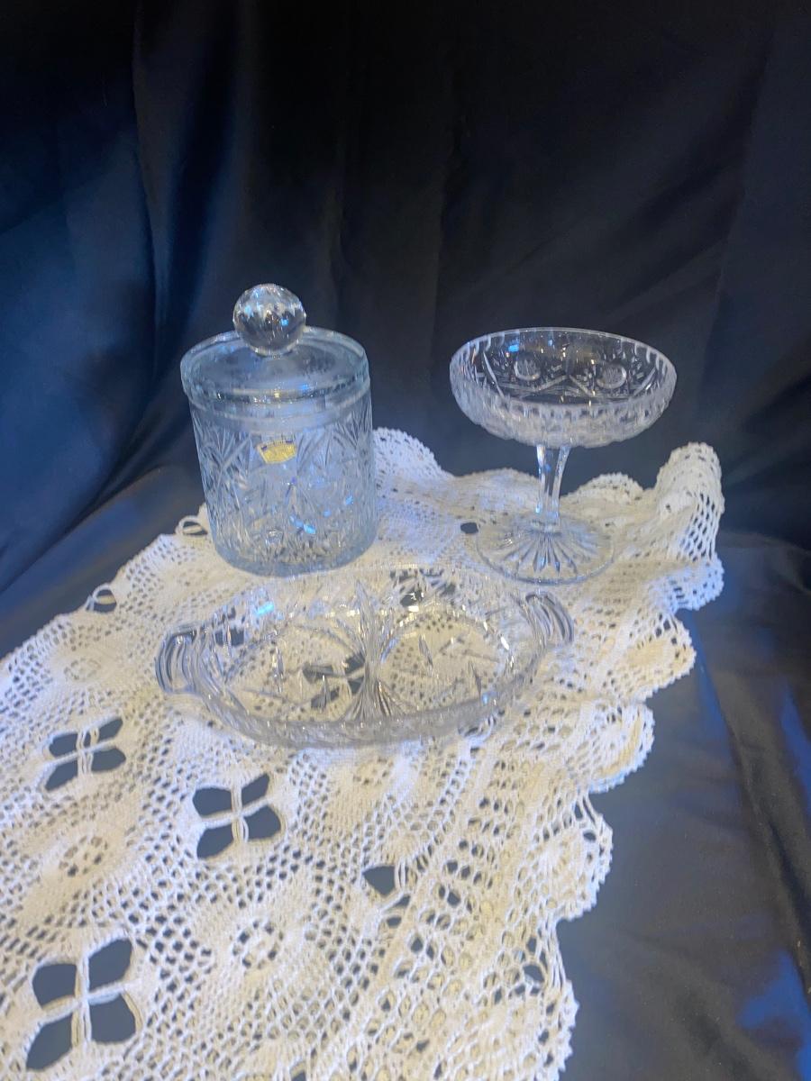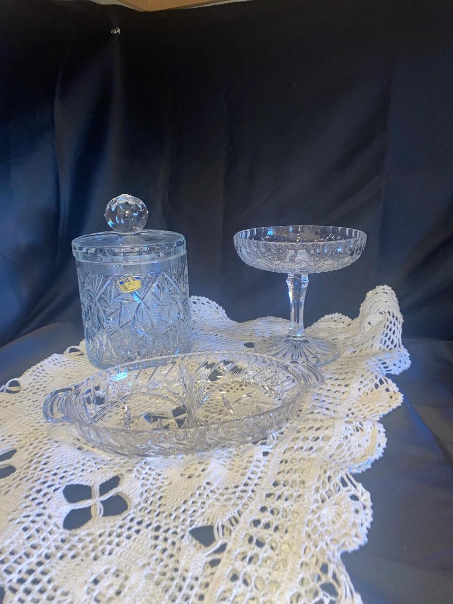 LEAD CRYSTAL DISHES AND TABLE RUNNER