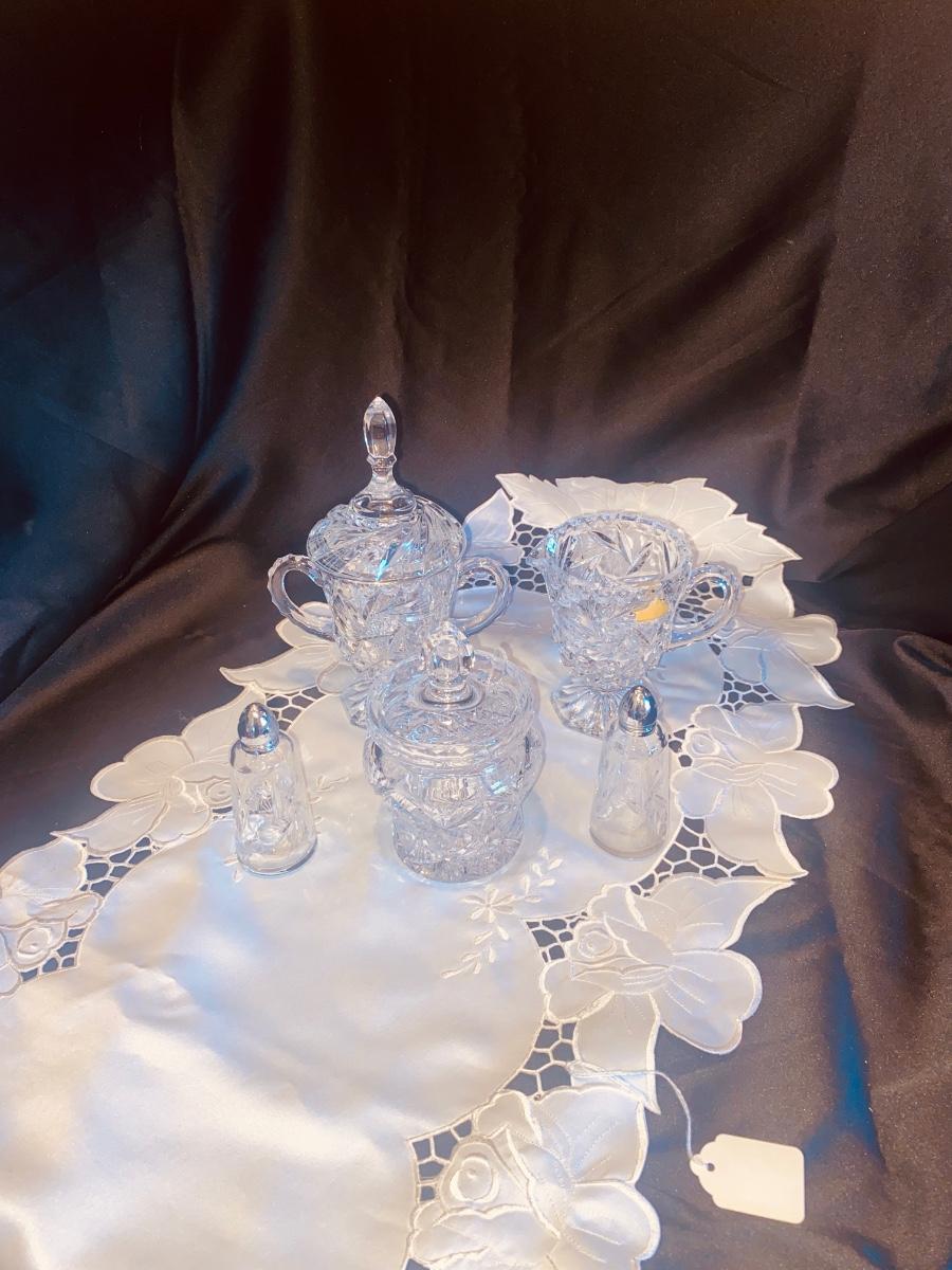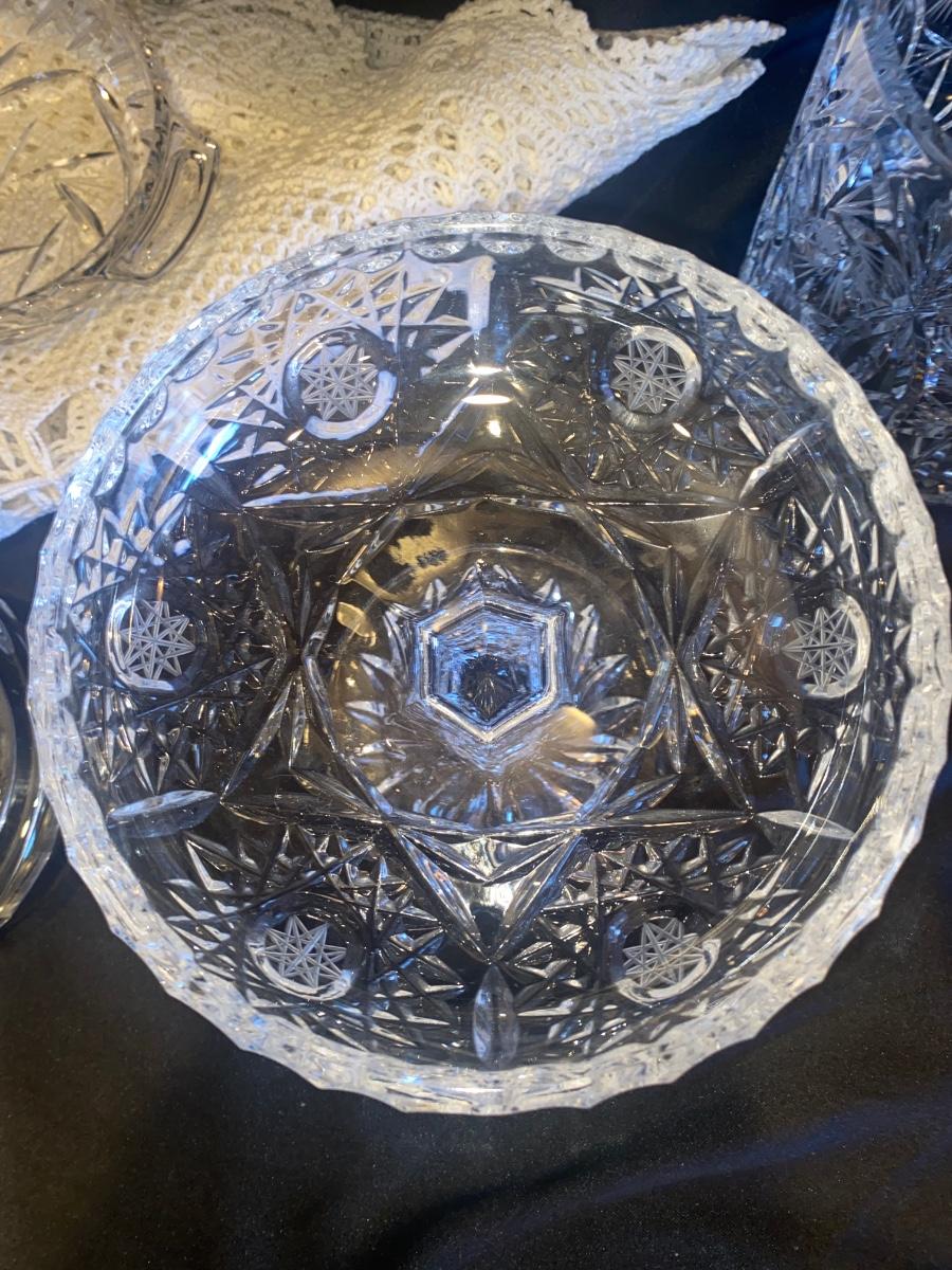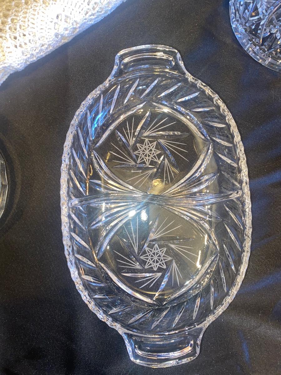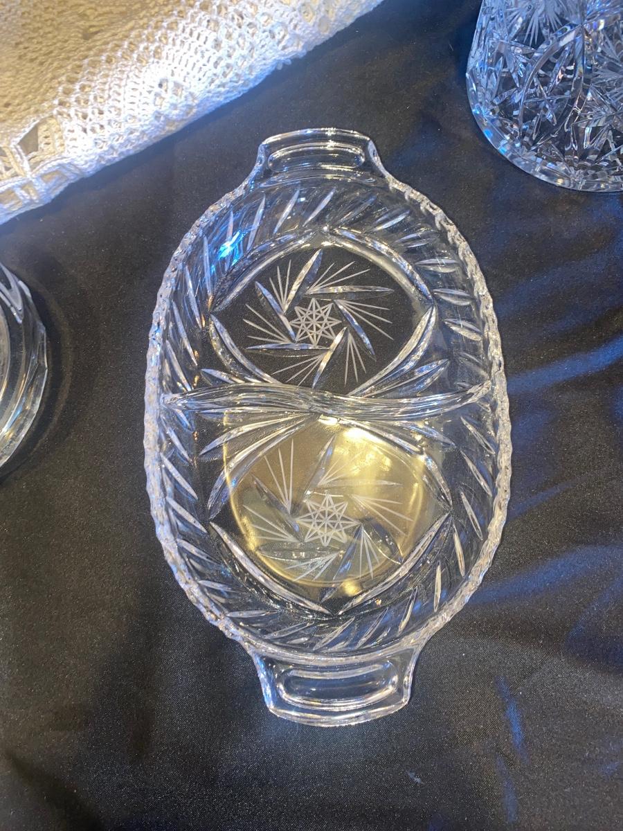 LEAD CRYSTAL DISHES AND TABLE RUNNER