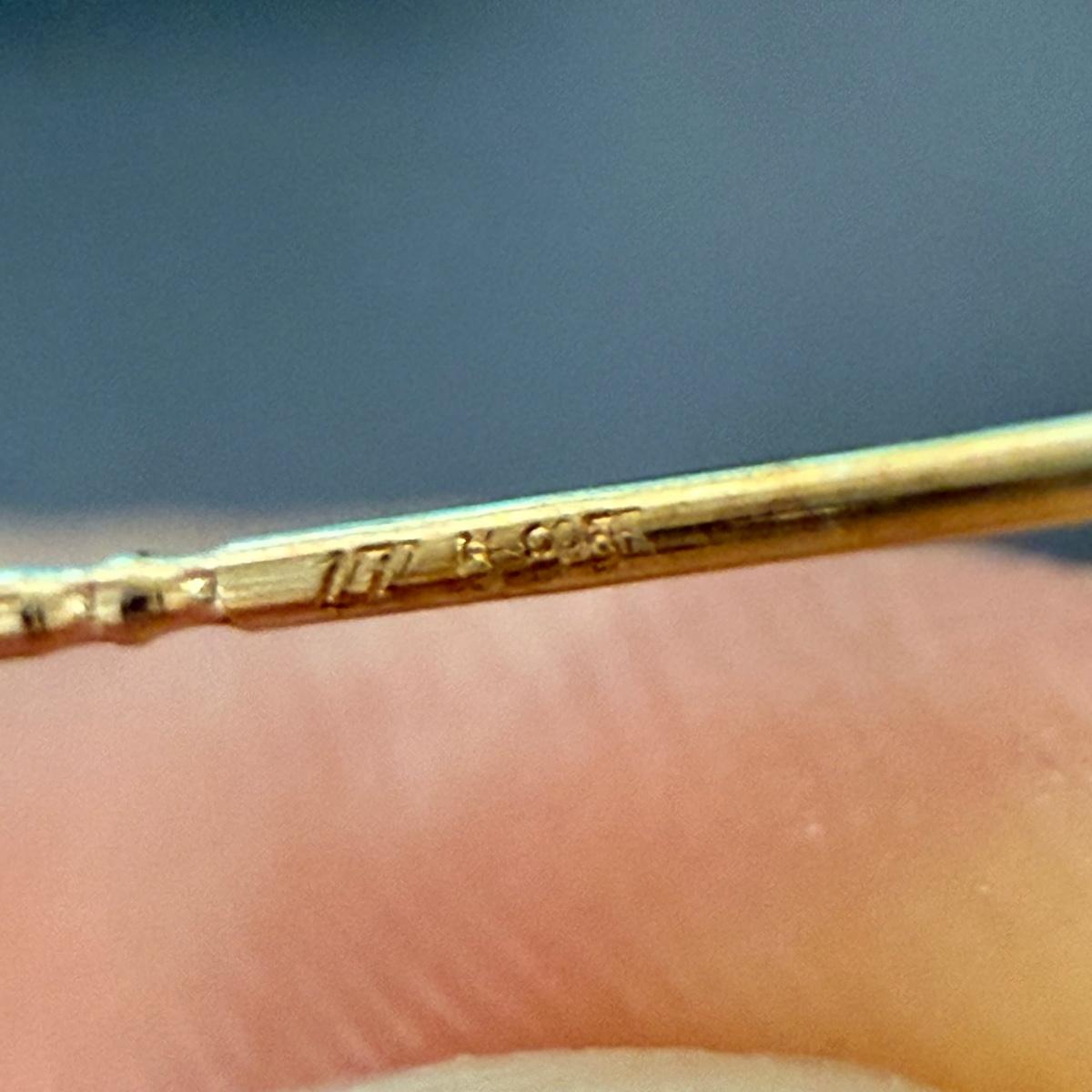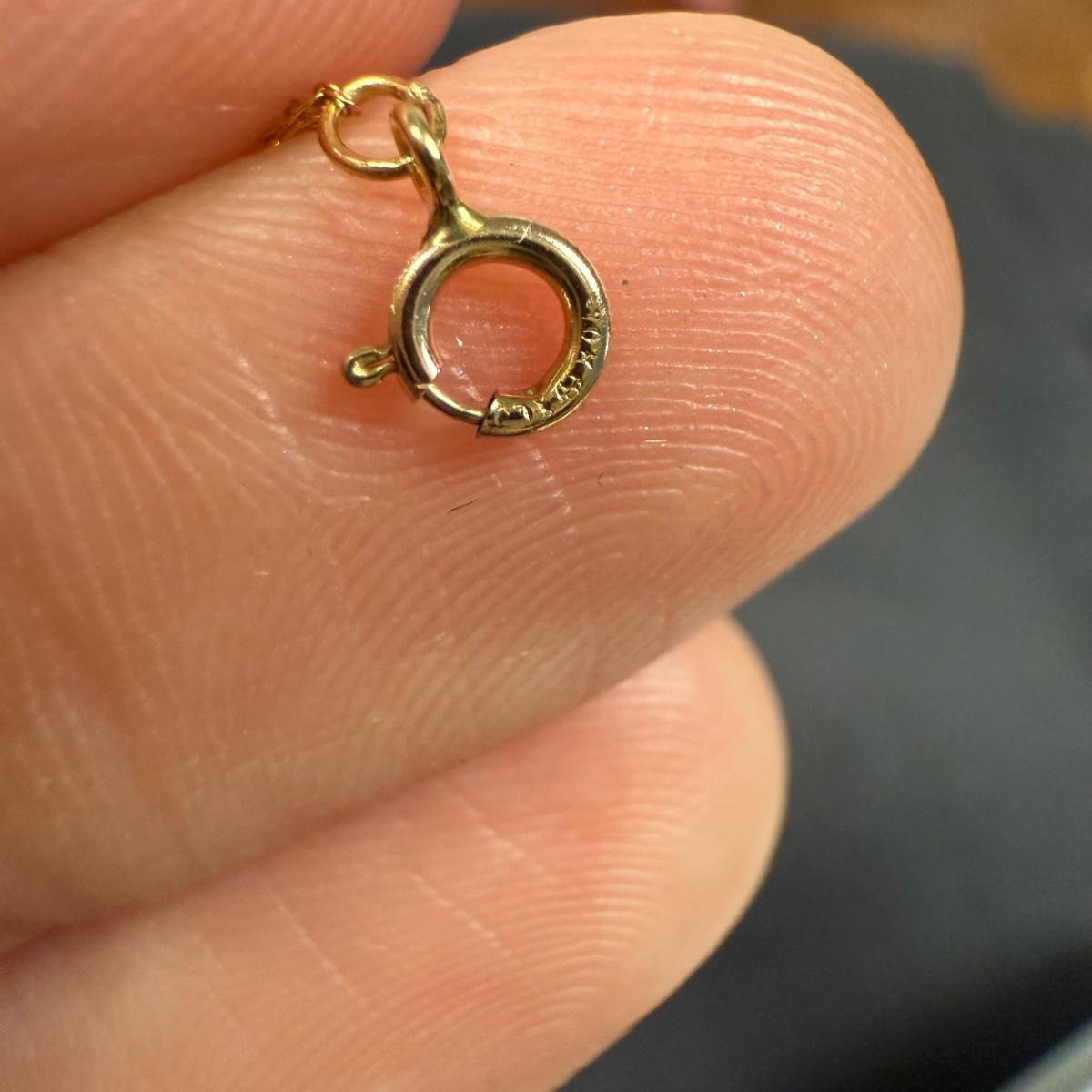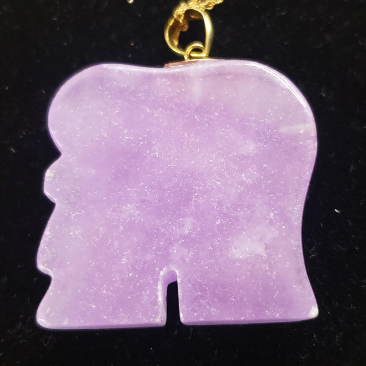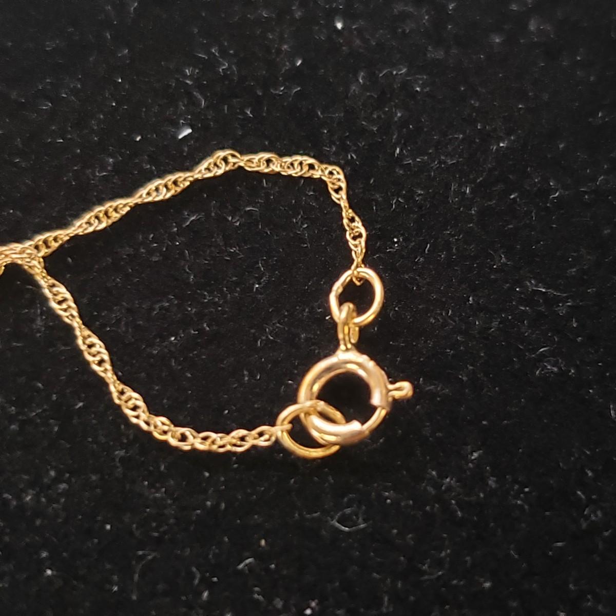 In this lot there are five loose pendants, one pendant on a chain, and three pairs of earrings for pierced ears. Three of the pendants are gold leaves. The largest leaf has a green blemish near the tip, see picture. The carved light green stone pendant measures 2" and its bail is marked 14K. The purple oval pendant has a delicate wavy gold like trim. There is also an elephant pendant on a delicate 18”gold necklace chain; both pendant and chain have a 10K hallmark. And finally two pairs of leaf earrings, one with a round stone. The other does not have backings. A third pair of earrings features a lovey jade green drop pendant. The earring posts and backs are marked with a 585 (14K) hallmark.
