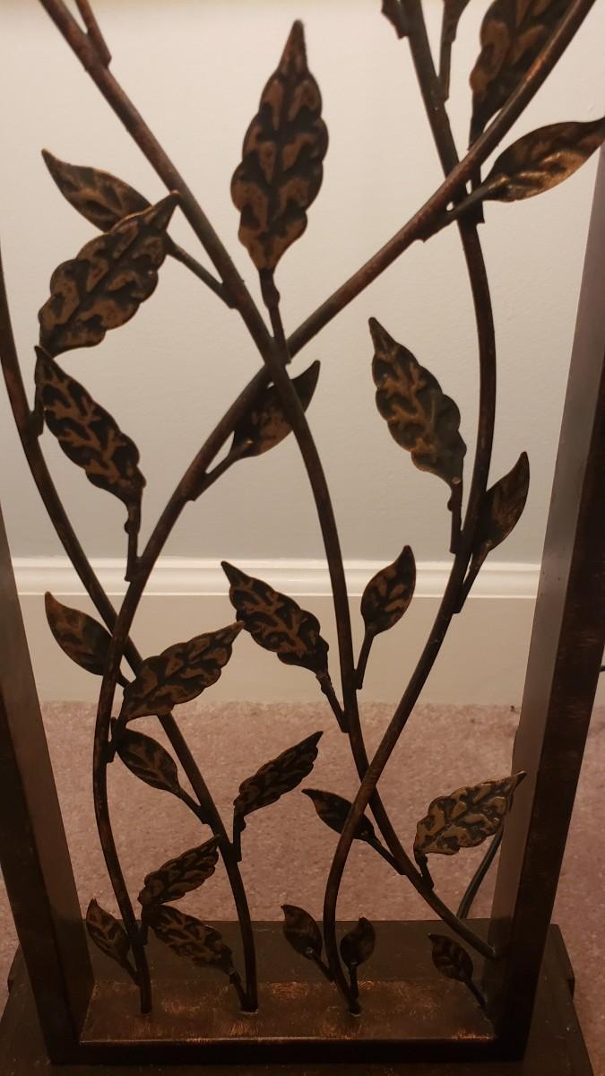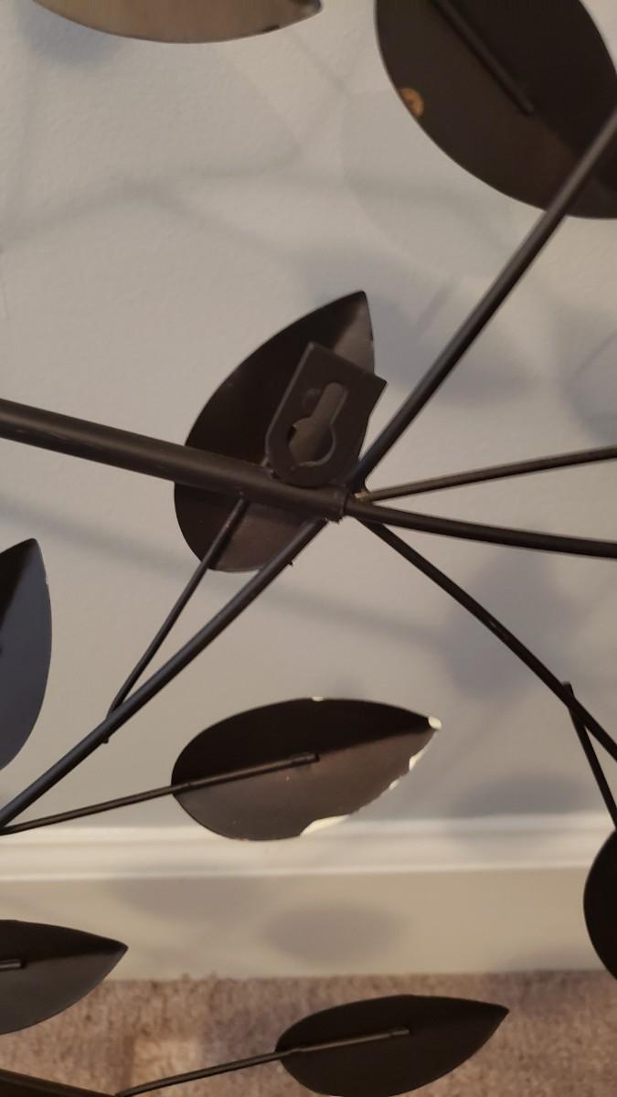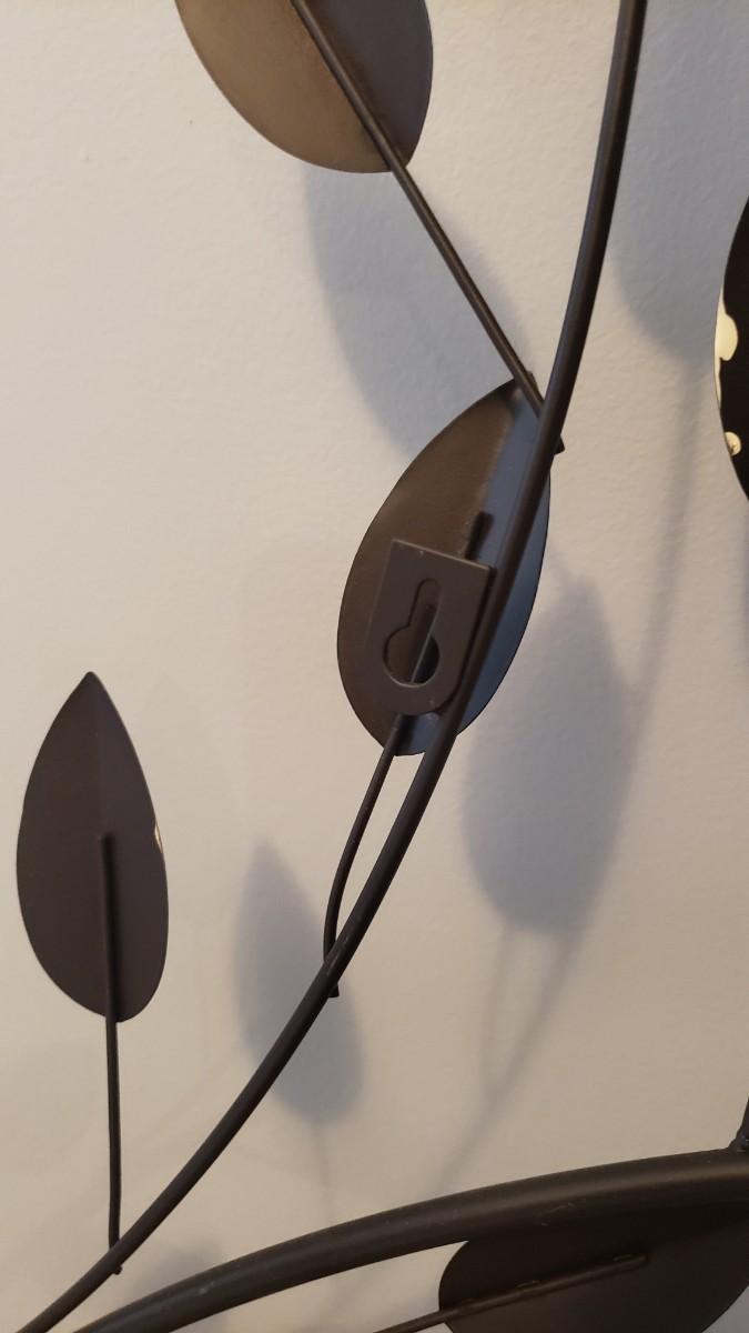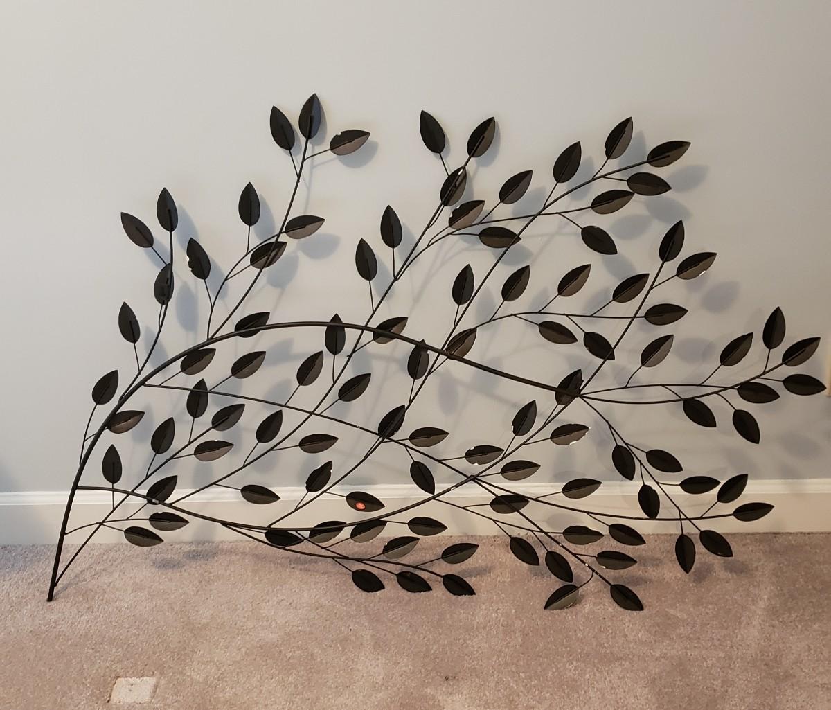 This lot features two pieces of leaf inspired items. The two toned metal leaf wall art measures 47"x33"H. It can easily hang on the wall with two nails/screws. This piece is light weight.