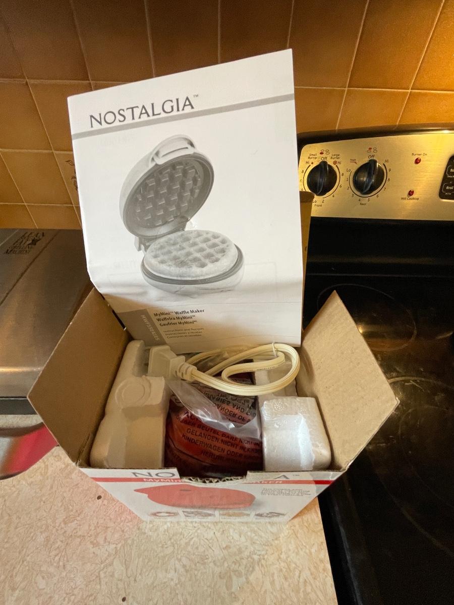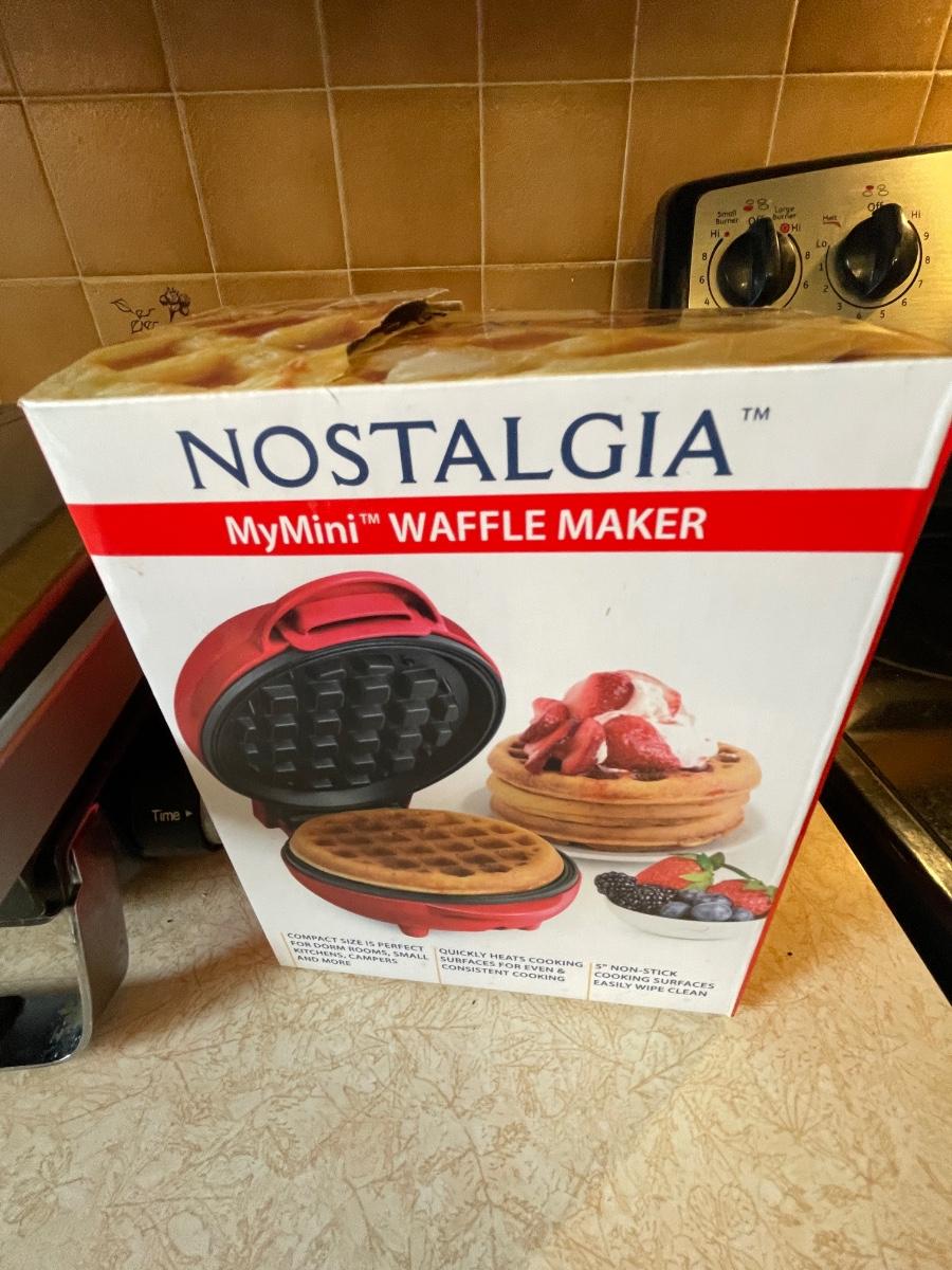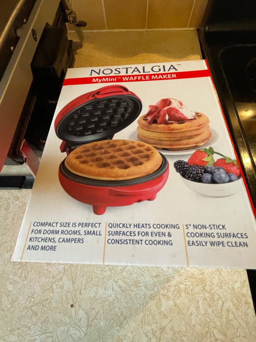 NOSTALGIA MINI WAFFLE MAKER 5” NON STICK COOKING SURFACE