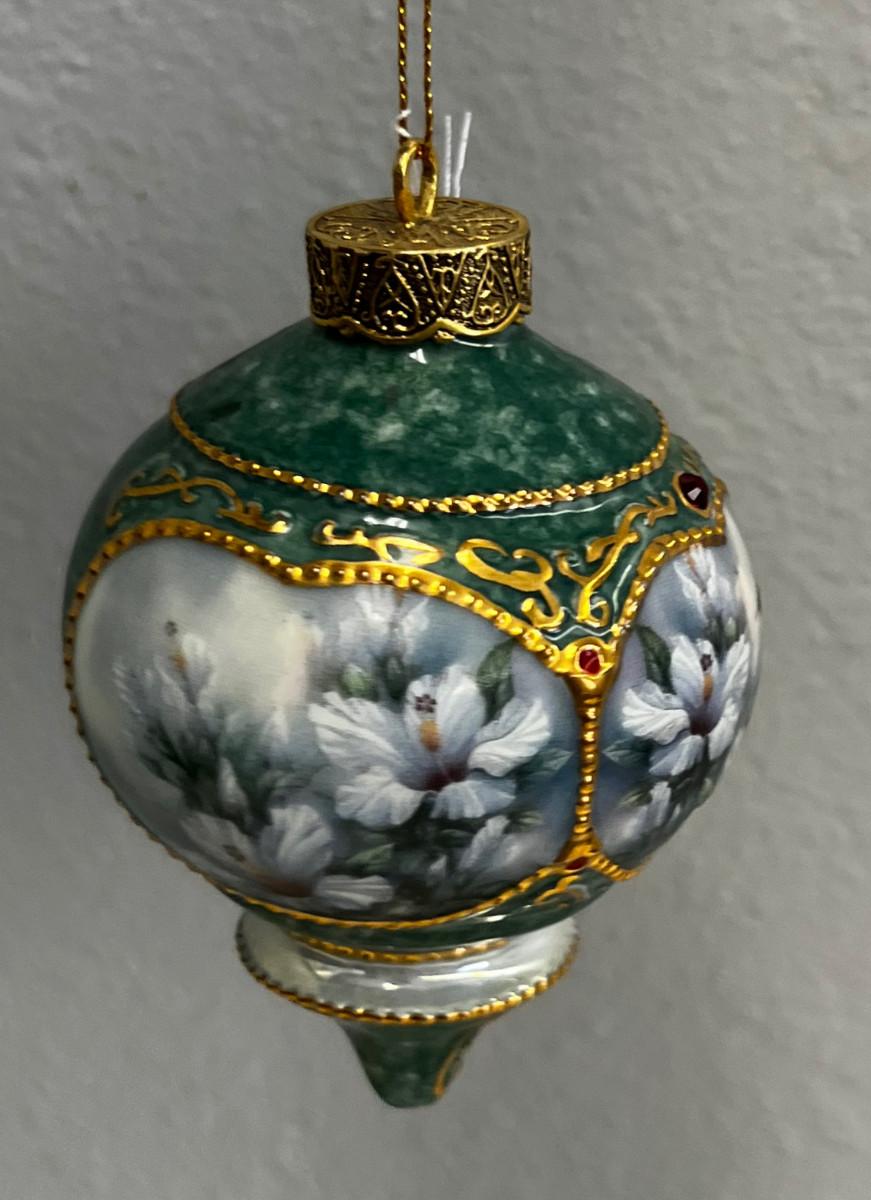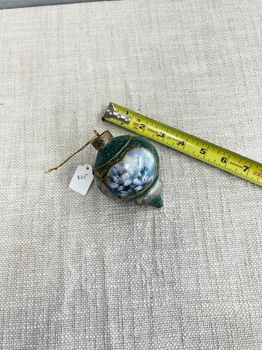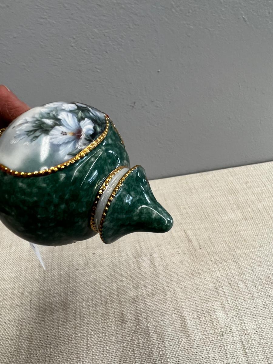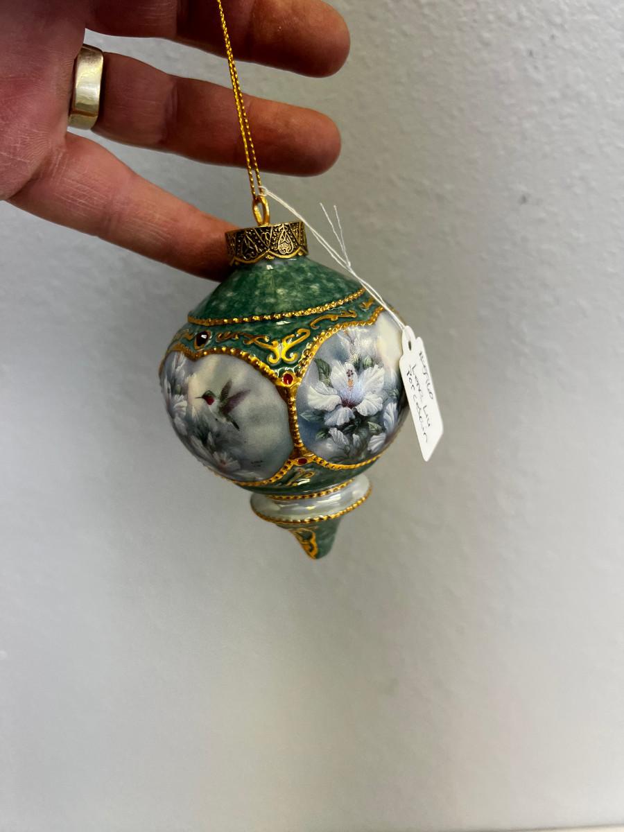 Leana Liu Porcelain Ornament Hand Painted with Hummingbird and jewels.