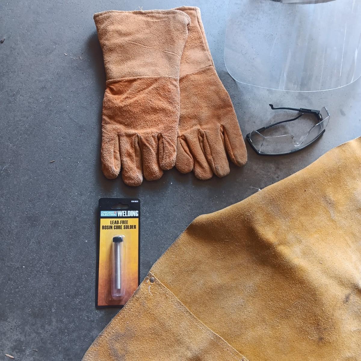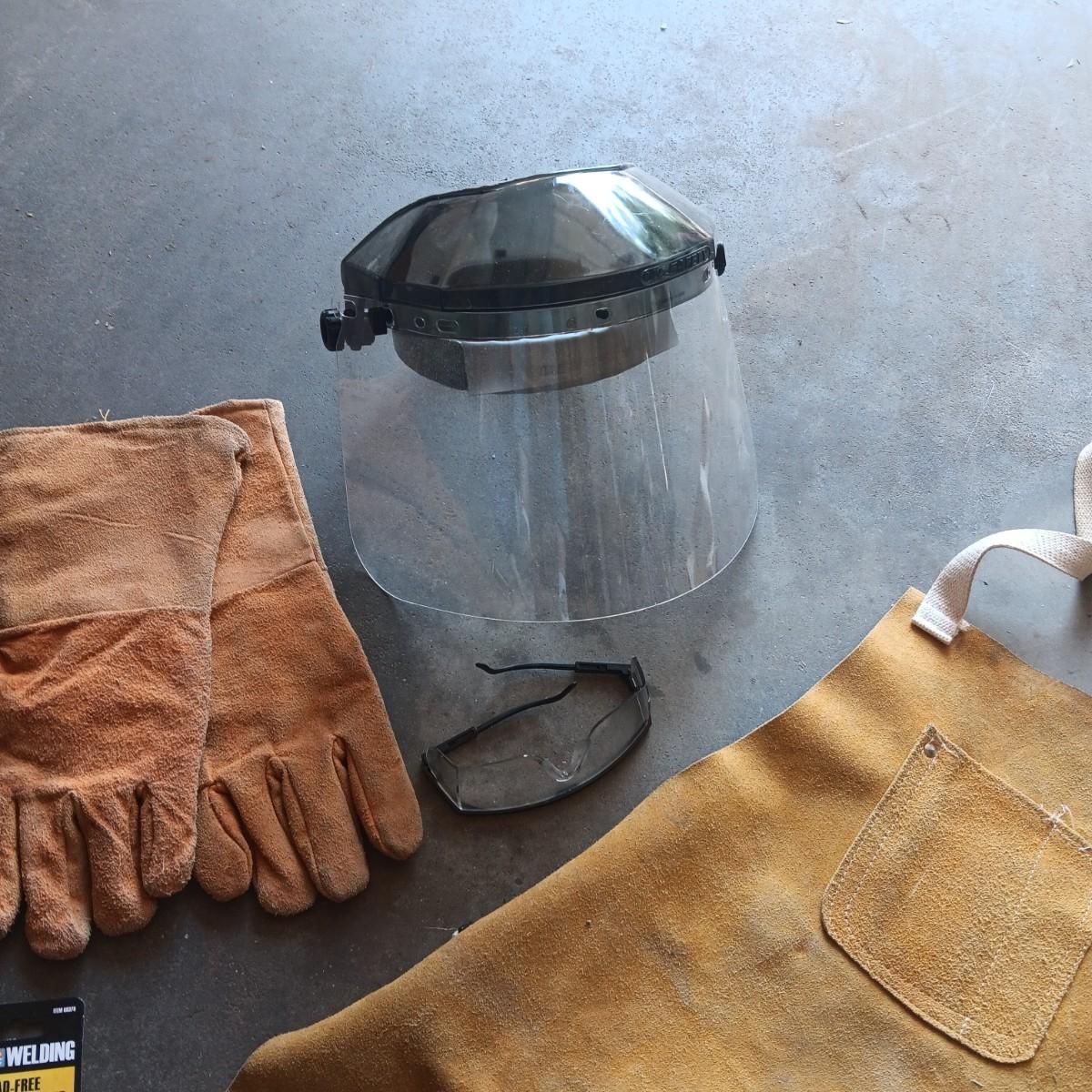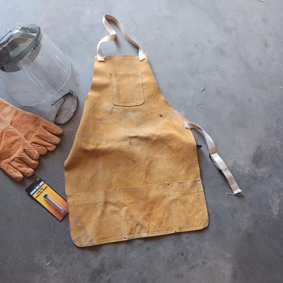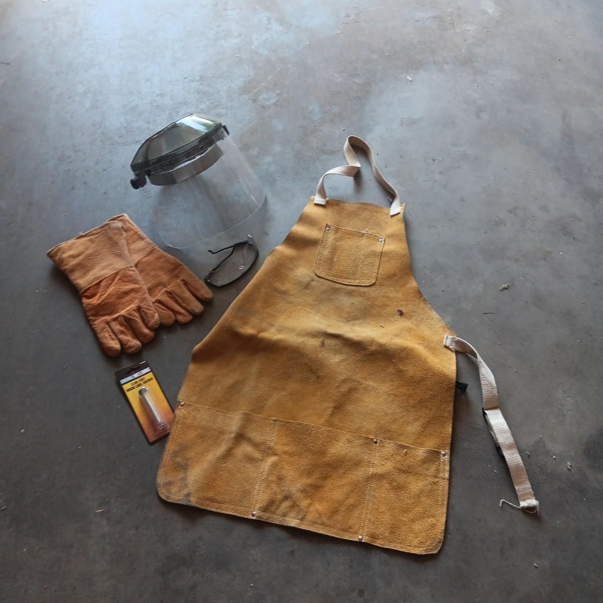 LEATHER APRON AND GLOVES, SAFETY GLASSES AND SHIELD