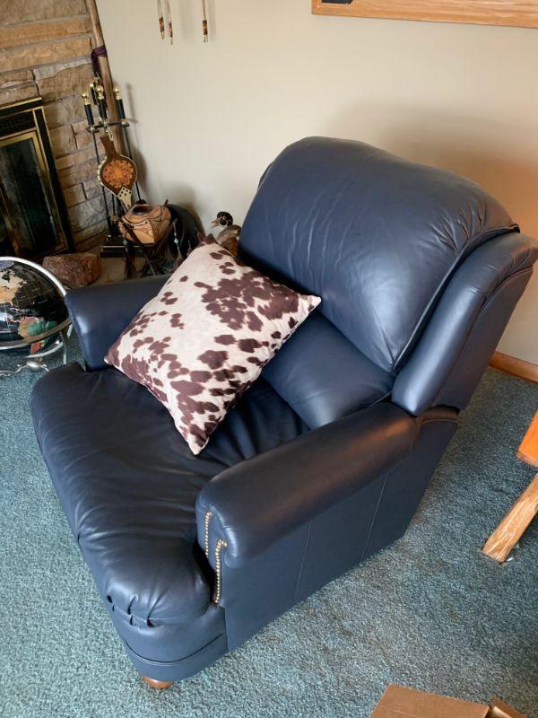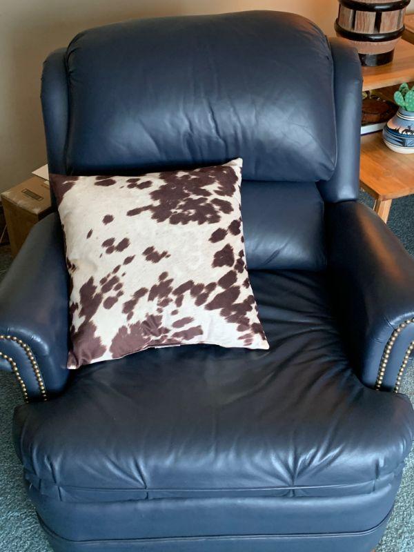 Leather arm chair / cowhide pillow