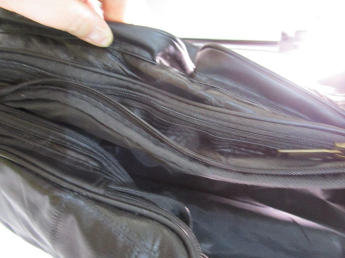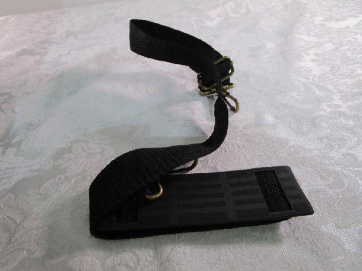 Has 2 side pockets, 3 front pockets & removable shoulder strap, see pictures
