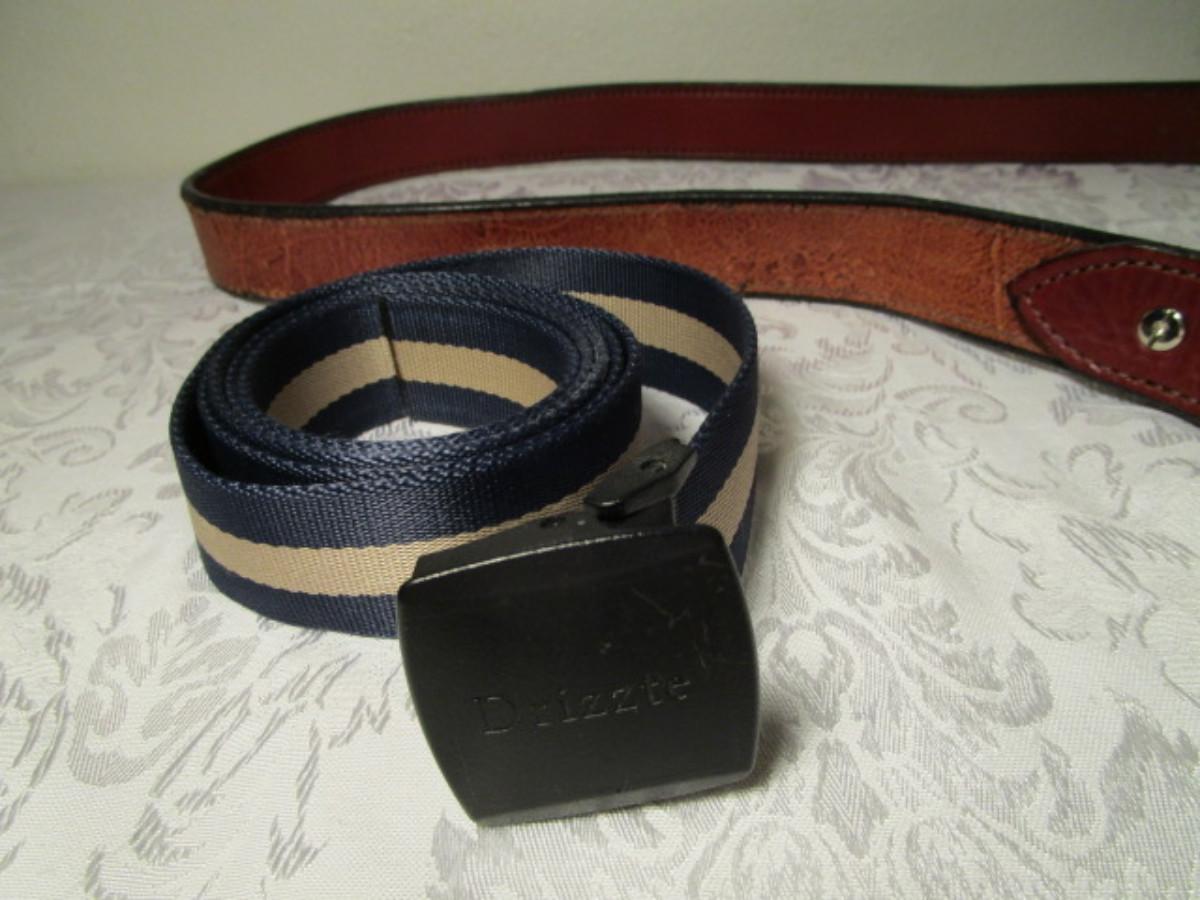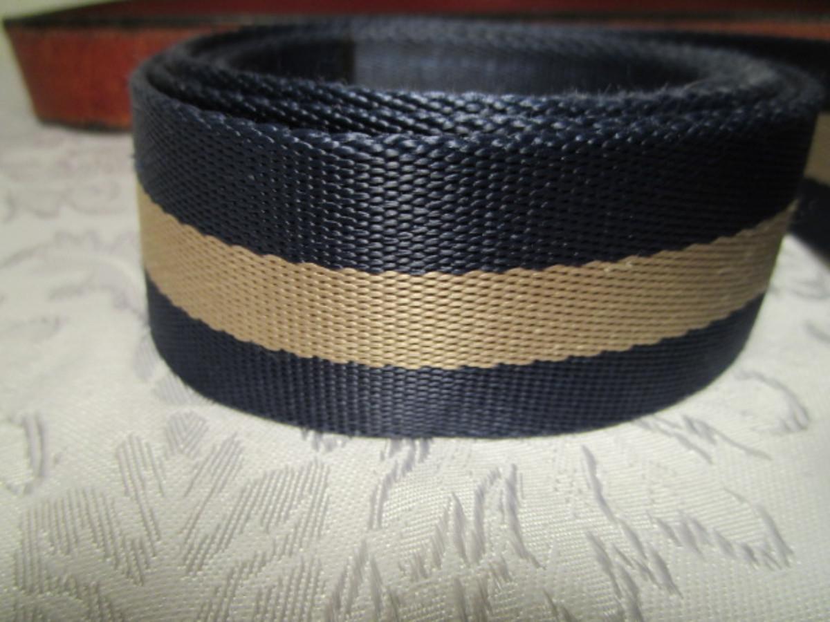 Leather belt is size 58, Nylon belt is size 59 with adjustable buckle, see pictures