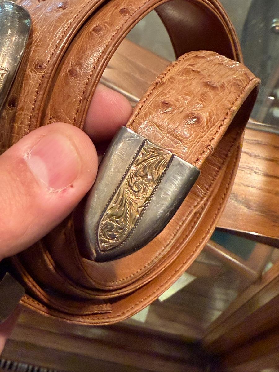Leather Belt with Sterling Silver Belt Buckle & end piece
