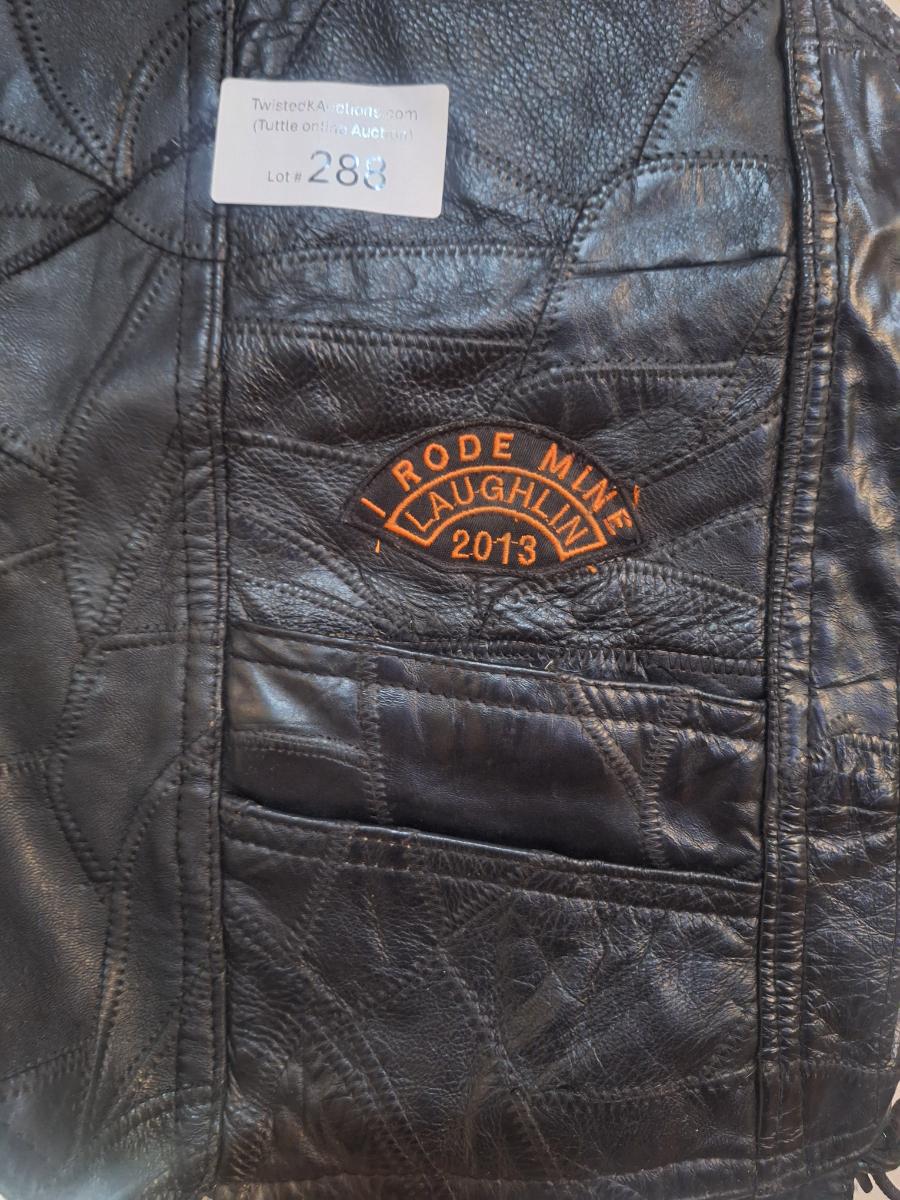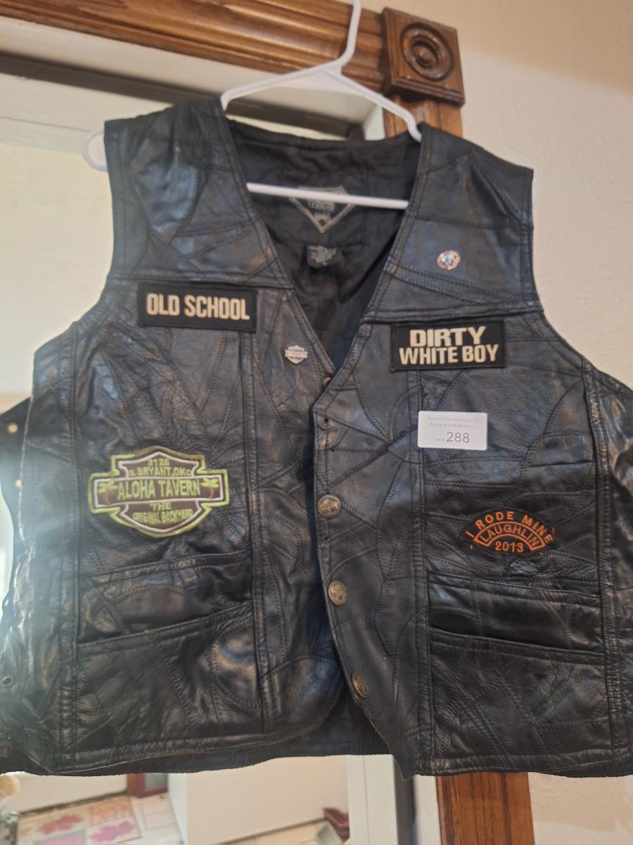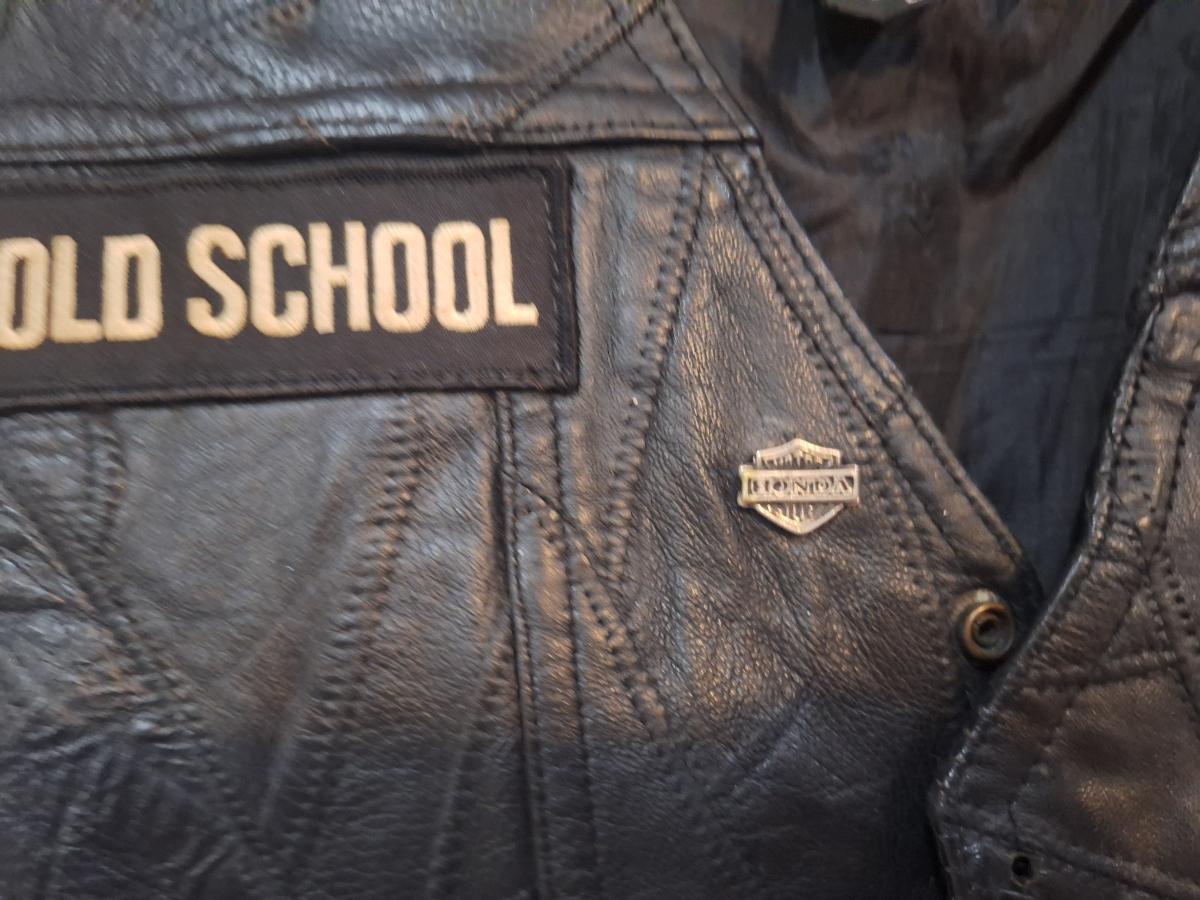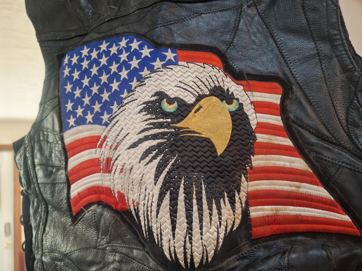 this is a personalized jacket. It also has some damage, notice that the top buffalo snap is missing the cover, the lace on the sides has damage. There may be other damage, please review the photos yourself for condition. This is leather.