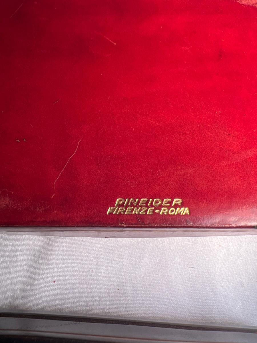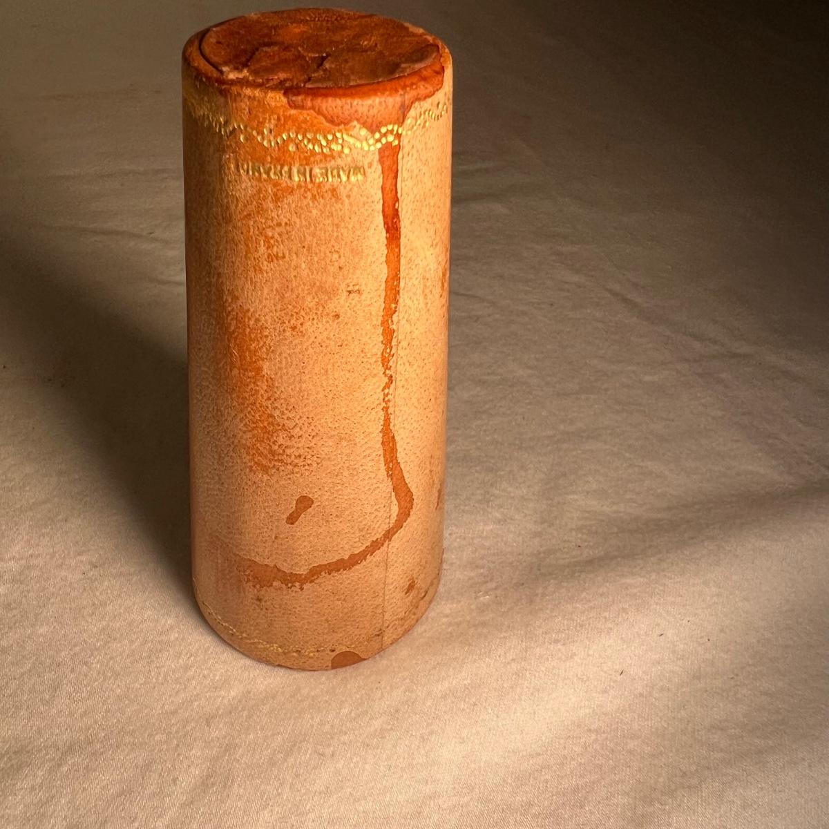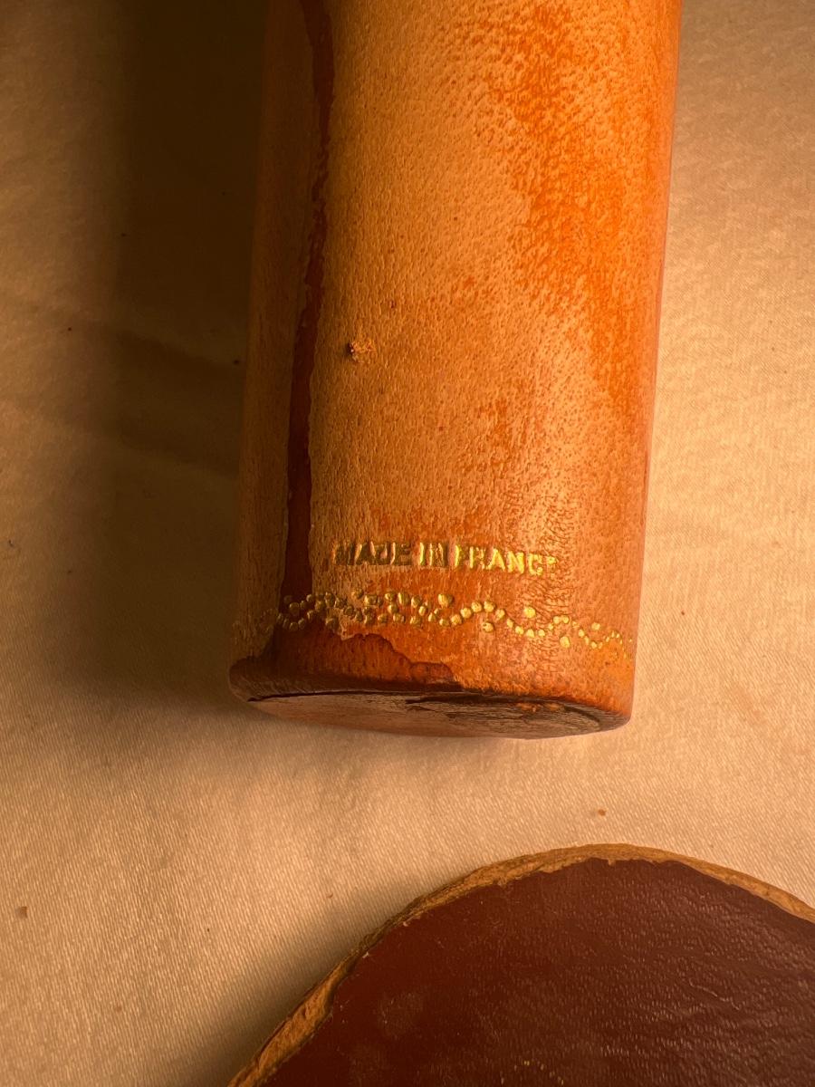 Items in this lot appear to be vintage and include two book covers, a soft and hard small photo frame (harder shell frame has glass, the other plastic photo covers) three small trinket boxes and more. The magnifier has a plastic brown surround and it swivels into a leather holder. Only one item is stamped Genuine Leather; no other labels were found to verify material. Some items show minor wear from age and the magnifier case has remnants of a sticker, see images.