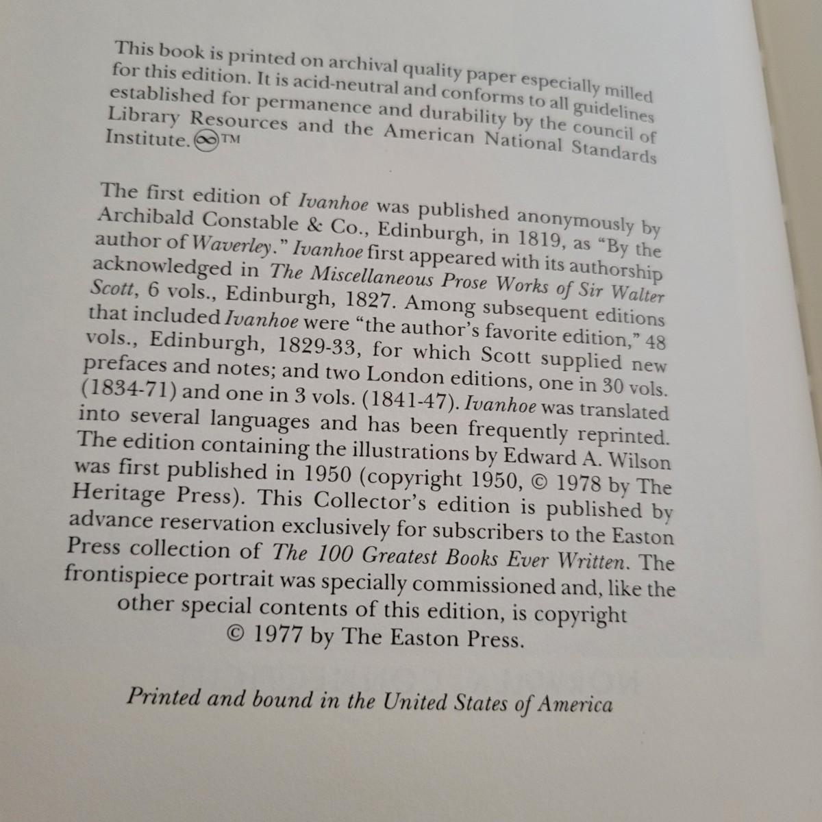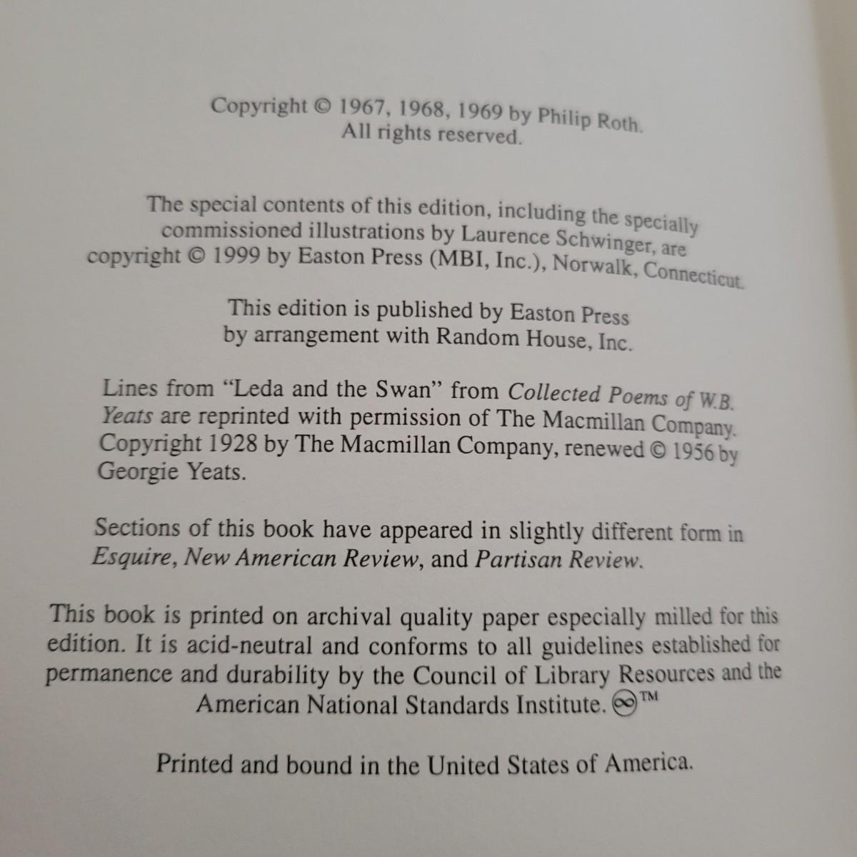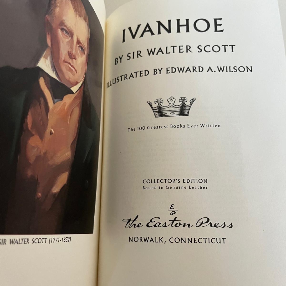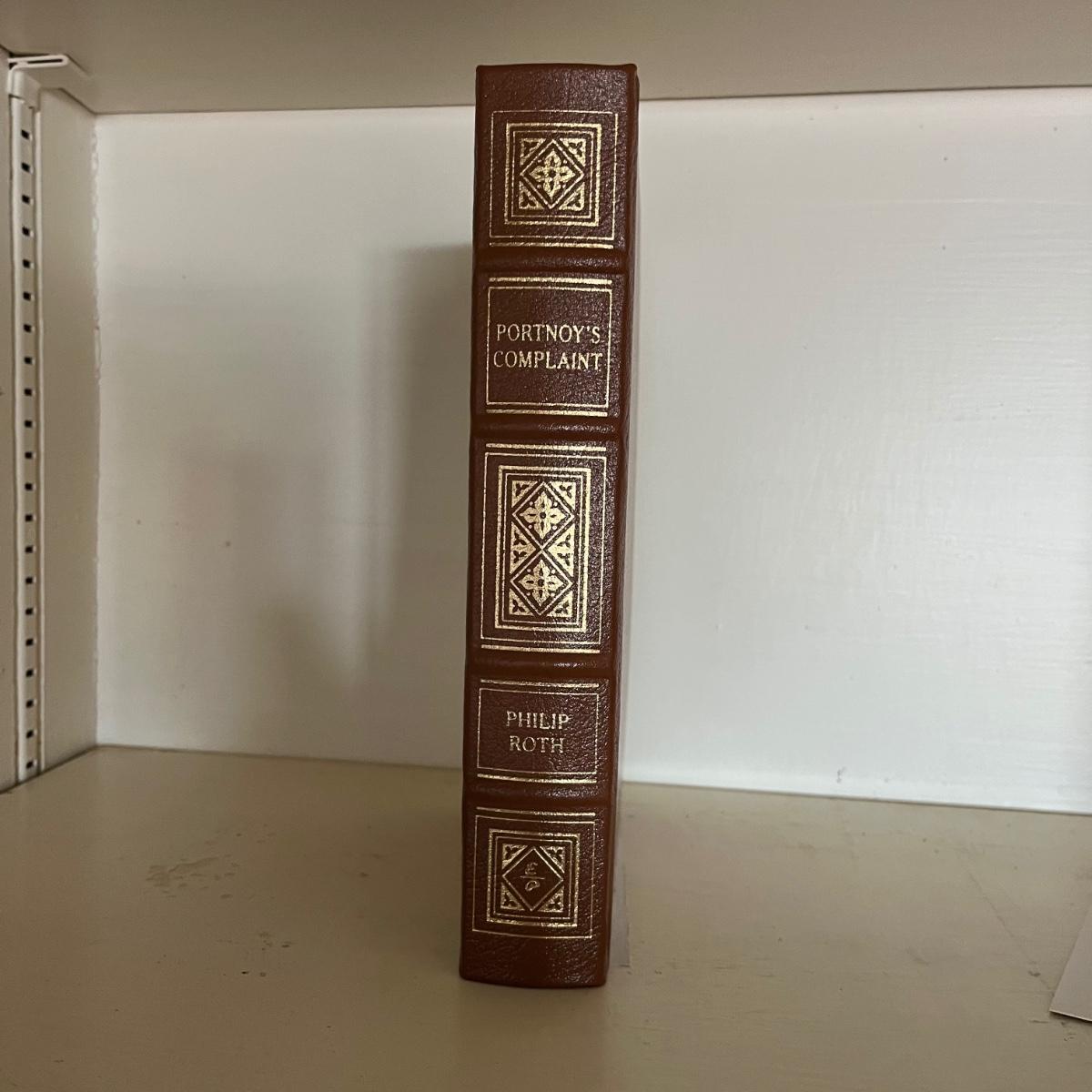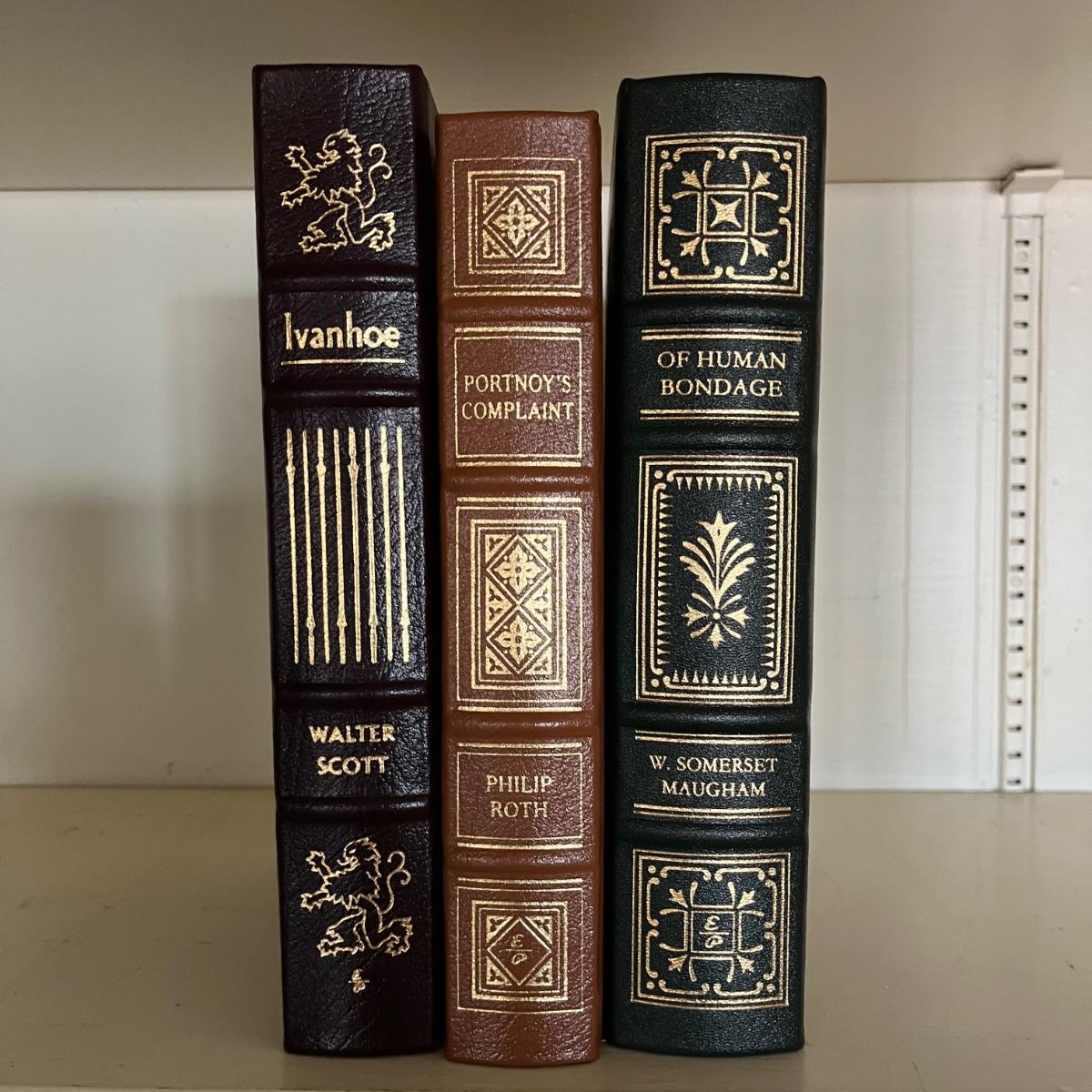 Lot includes three leather bound books by Easton Press. Titles are: Of Human Bondage, Ivanhoe, and Portnoys Complaint. Books are in excellent condition.