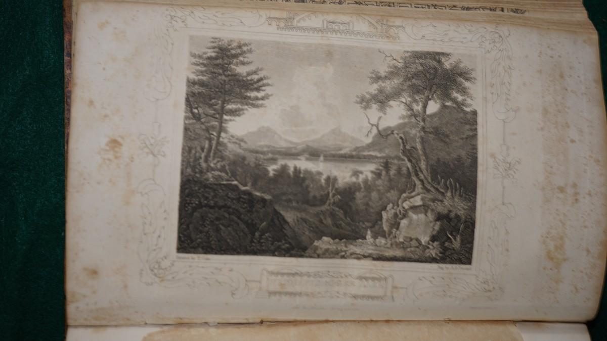 Previous owners from early on( 3) are written in fountain pen in the beginning pages. there are about 3 engravings of the Last Supper, Landscapes The rest are stories and advise to women on marriage, socialization and manners. Stories of the time.