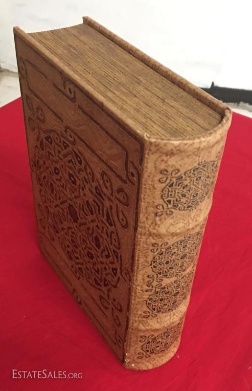 In excellent condition, leather bound box that looks like a book, 11" x 8" x 3".