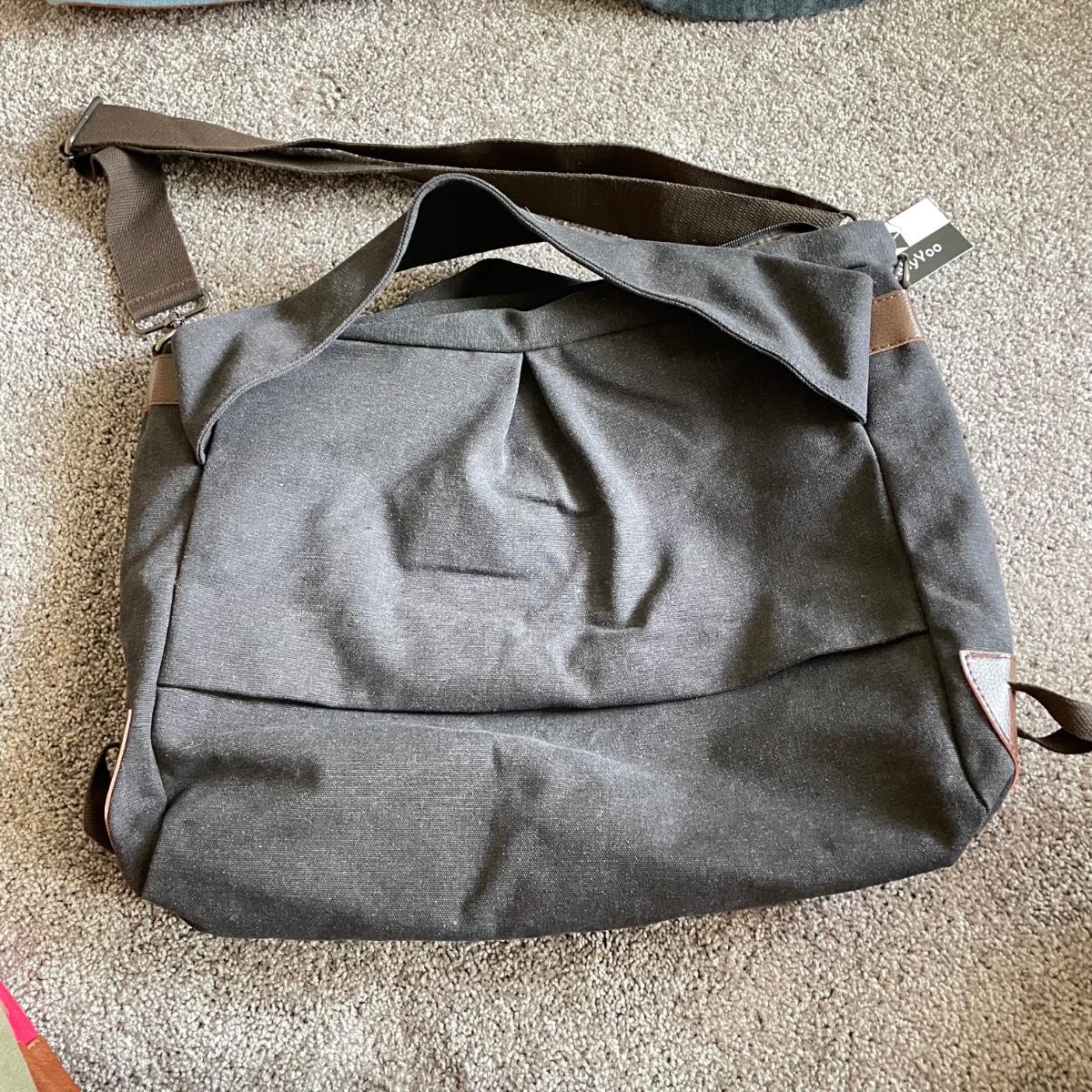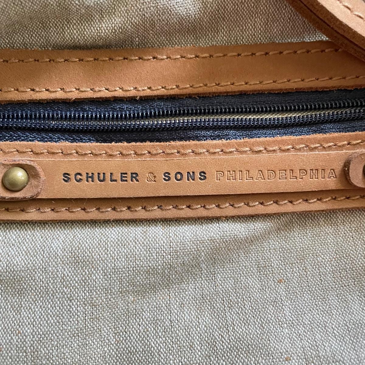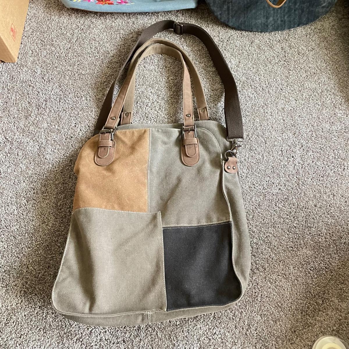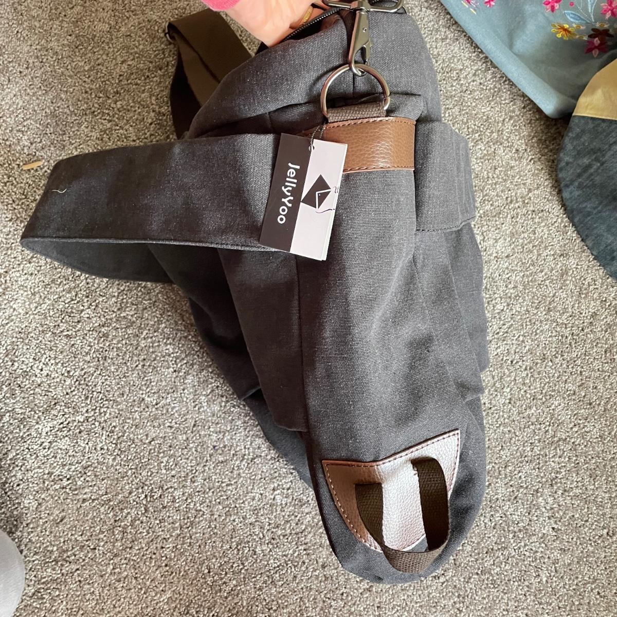 Six weekender style bags with a few like-new larger bags show hints that they haven’t been used yet- like tags or plastic covering the zipper. All appear to have been made with canvas and leather or suede. Tags include Jelly Yoo and Canopy Verde which both appear to be a convertible style bag with back straps you can use or not. Other brands include Qizhxiaomao and Schuler & Sons (this one has a stain on its crocheted lace front, see photos) The Jelly Yoo bag measures approximately 17” x 6” x 14”H without its crossbody/shoulder strap. See images. Shipping available.
