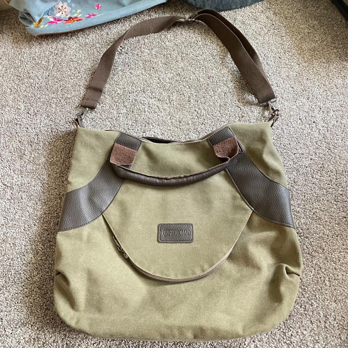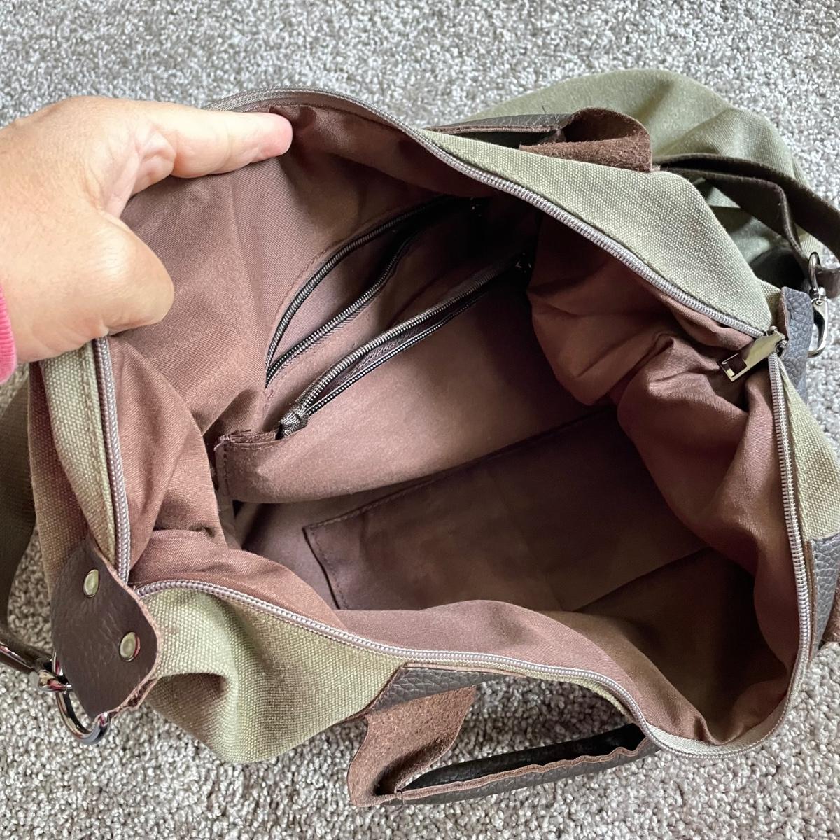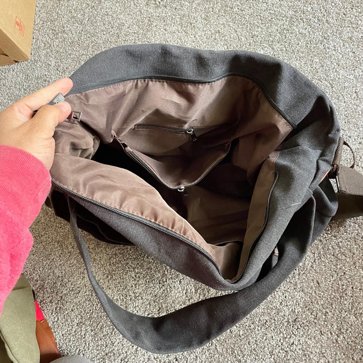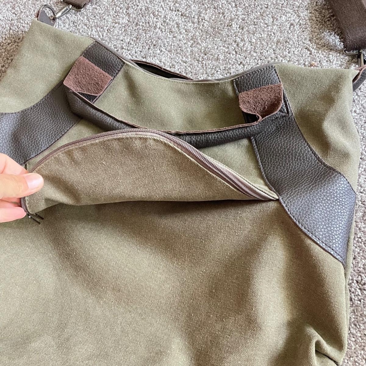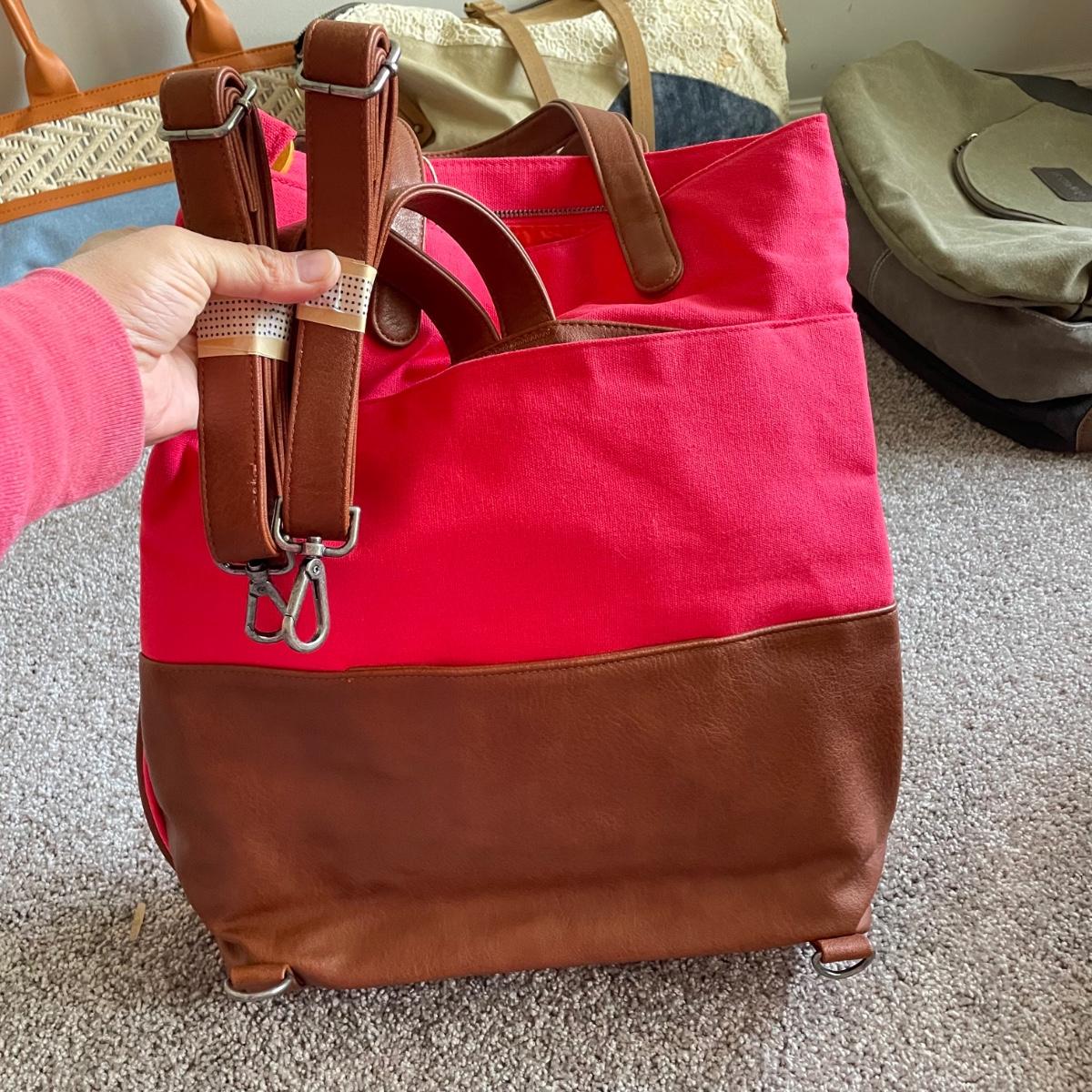 Six weekender style bags with a few like-new larger bags show hints that they haven’t been used yet- like tags or plastic covering the zipper. All appear to have been made with canvas and leather or suede. Tags include Jelly Yoo and Canopy Verde which both appear to be a convertible style bag with back straps you can use or not. Other brands include Qizhxiaomao and Schuler & Sons (this one has a stain on its crocheted lace front, see photos) The Jelly Yoo bag measures approximately 17” x 6” x 14”H without its crossbody/shoulder strap. See images. Shipping available.