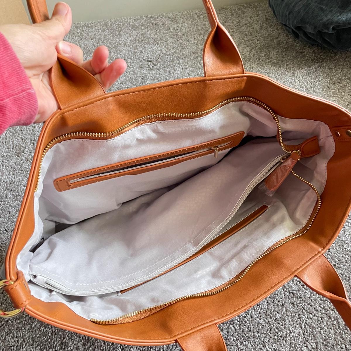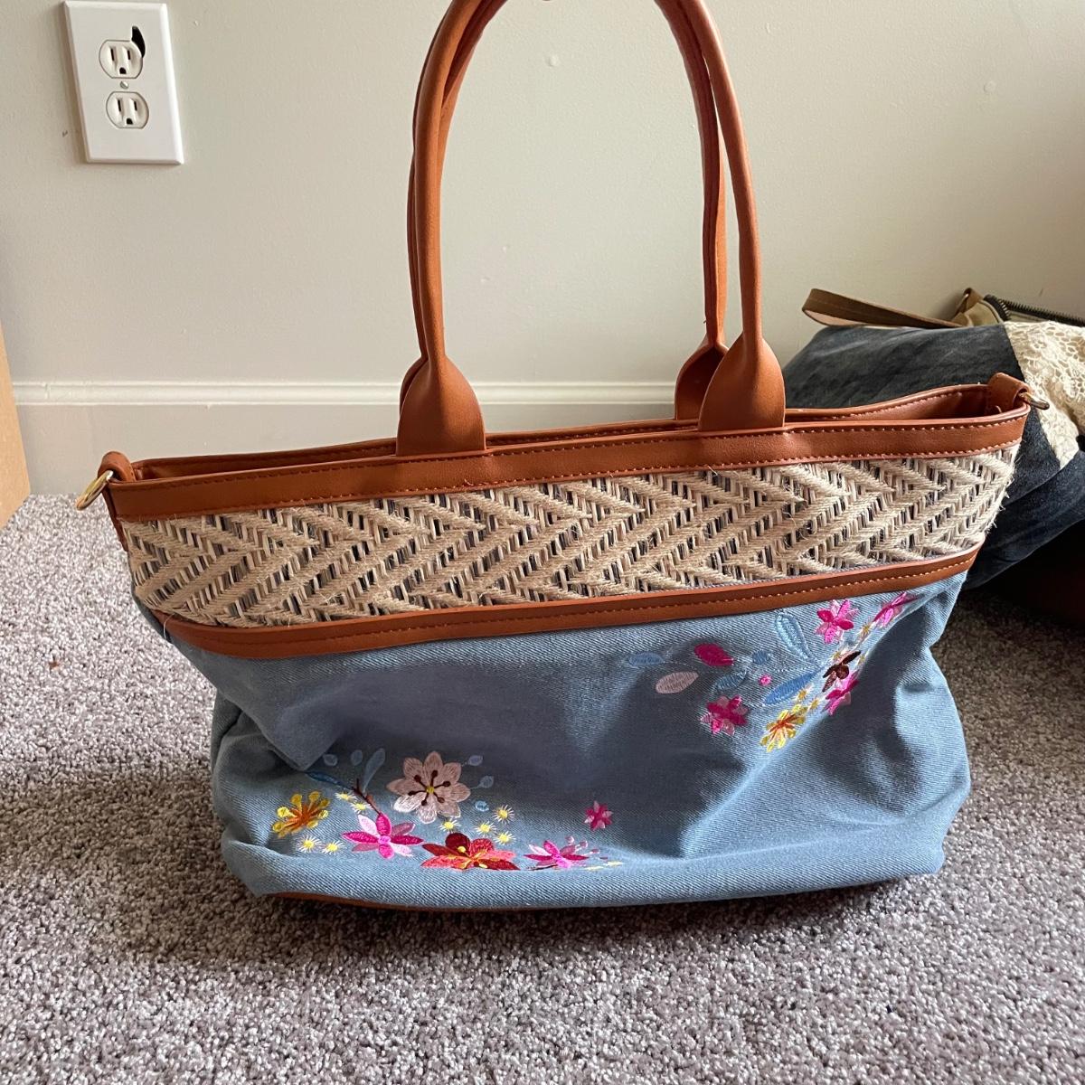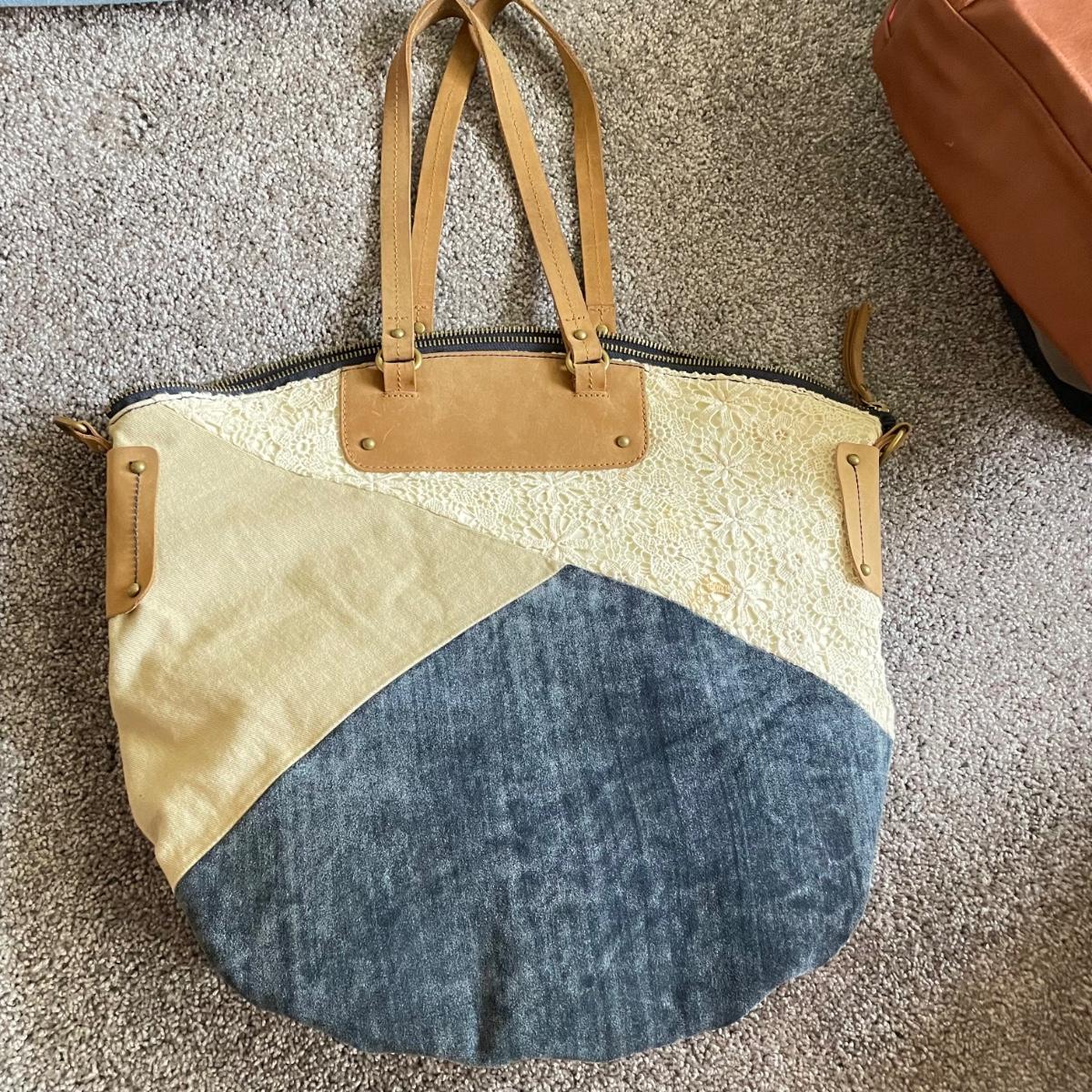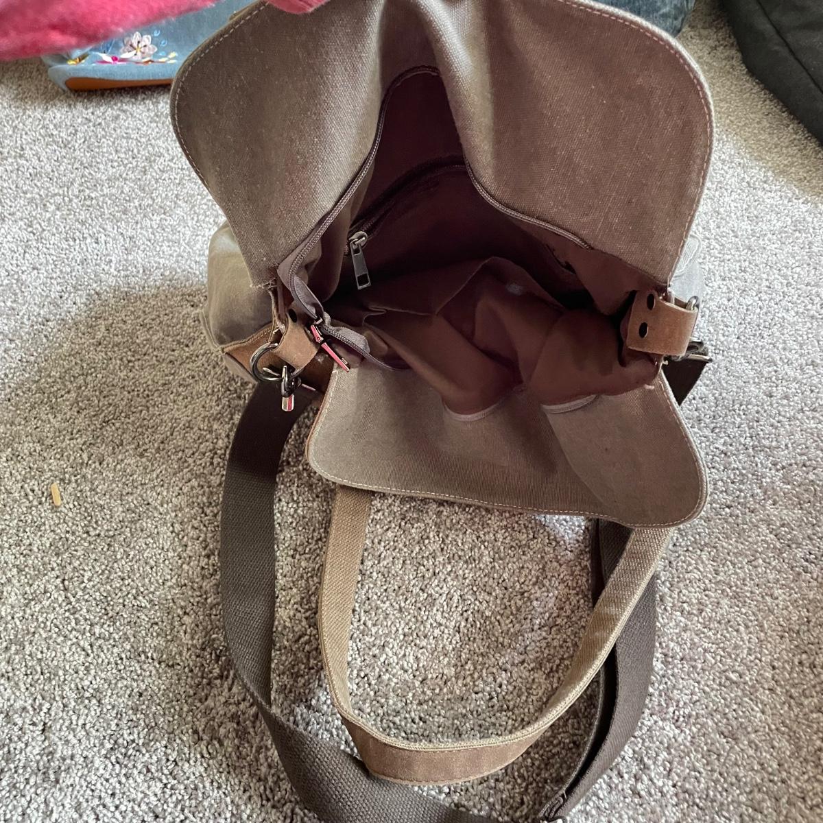 Six weekender style bags with a few like-new larger bags show hints that they haven’t been used yet- like tags or plastic covering the zipper. All appear to have been made with canvas and leather or suede. Tags include Jelly Yoo and Canopy Verde which both appear to be a convertible style bag with back straps you can use or not. Other brands include Qizhxiaomao and Schuler & Sons (this one has a stain on its crocheted lace front, see photos) The Jelly Yoo bag measures approximately 17” x 6” x 14”H without its crossbody/shoulder strap. See images. Shipping available.