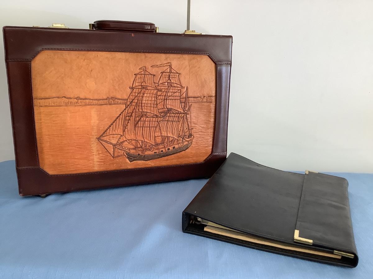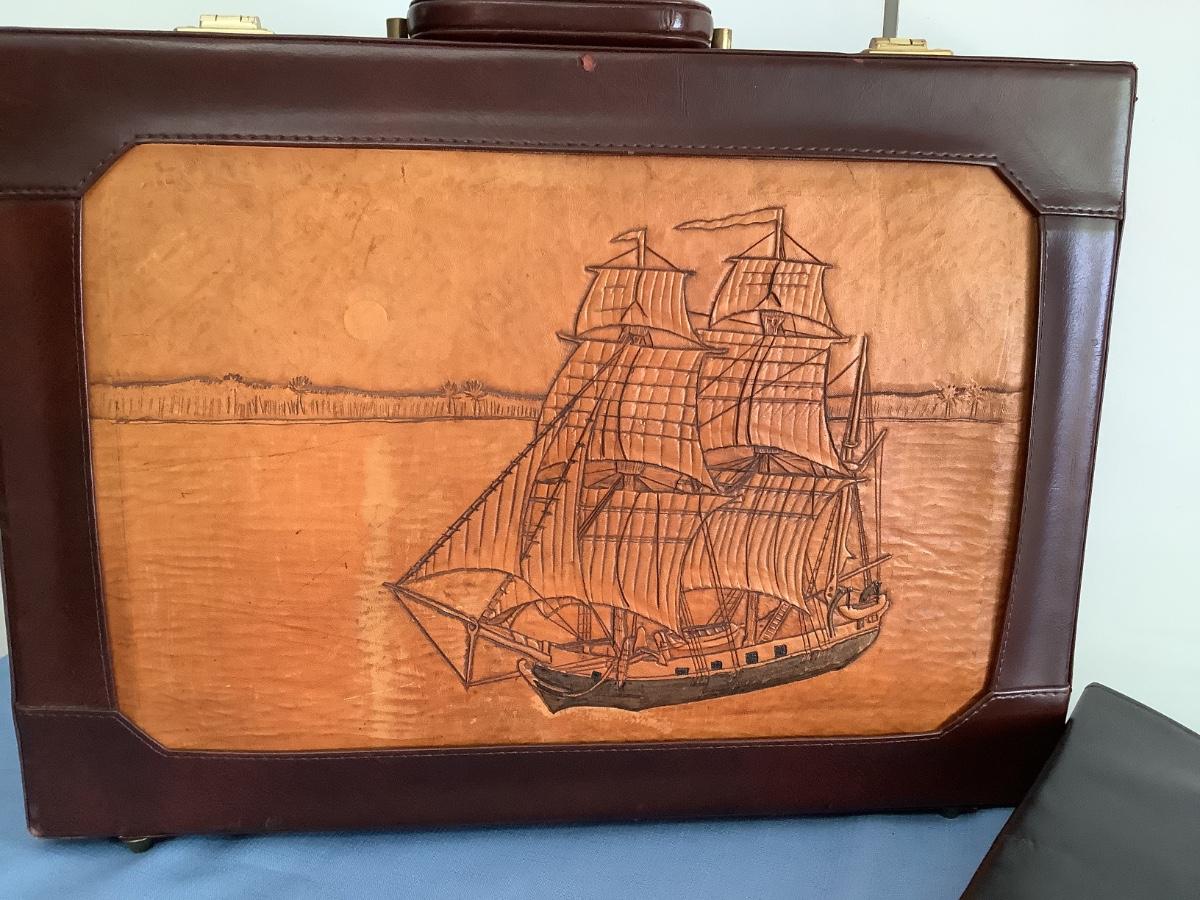 Leather case with leather Ship inlay
