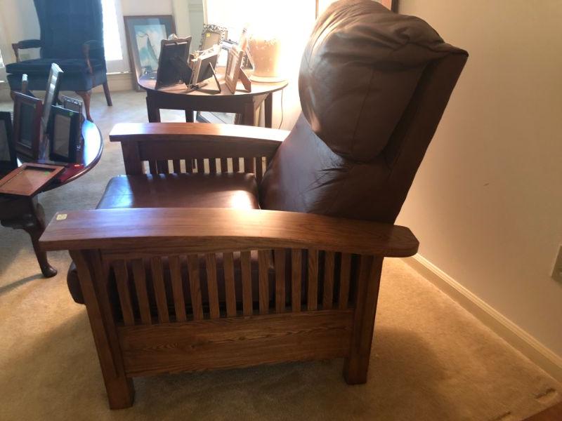 34"L; Mid Century Modern Burnt Red Leather Chair