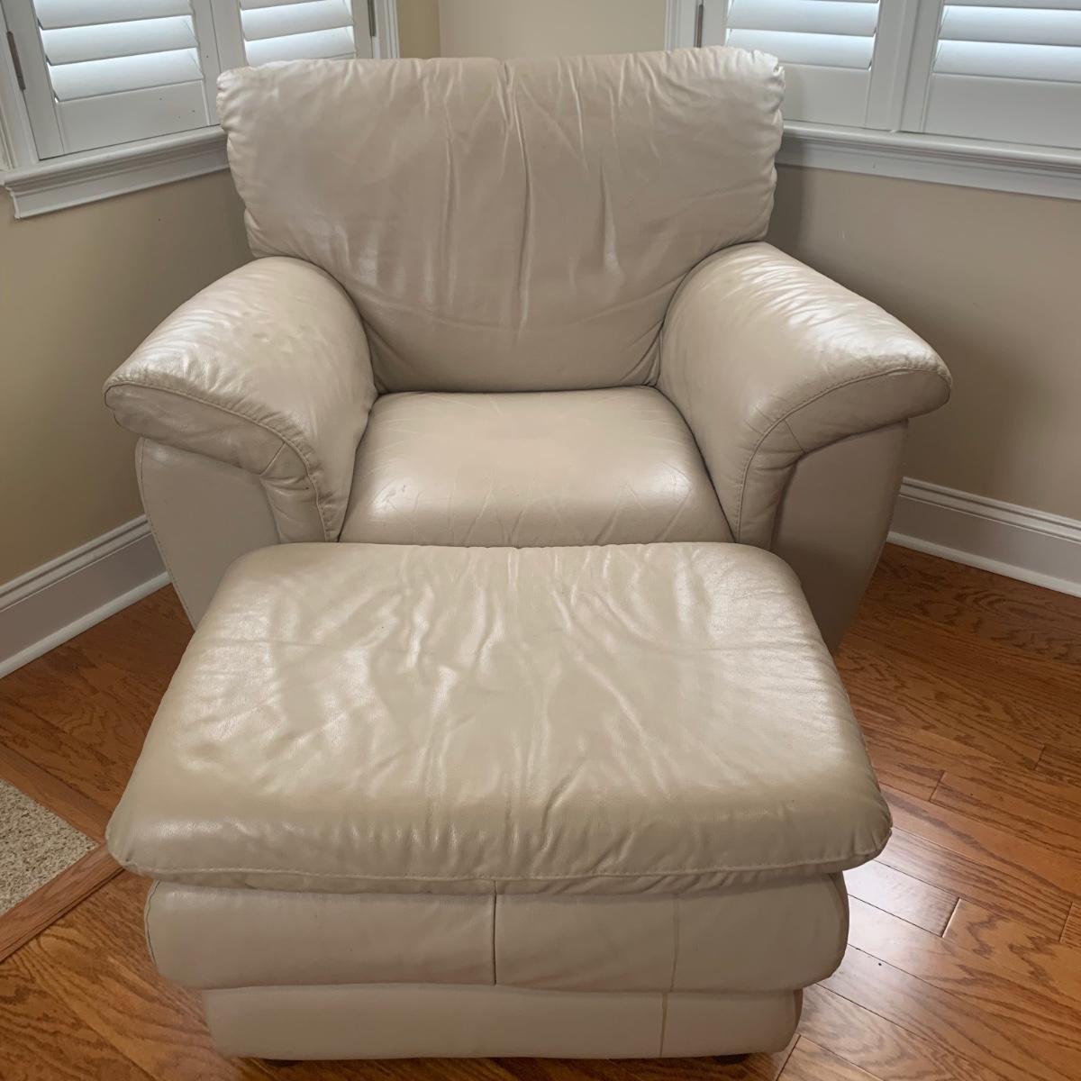 Chateau d’Ax Beige Faux Leather Chair with Matching Ottoman (LR-KW)