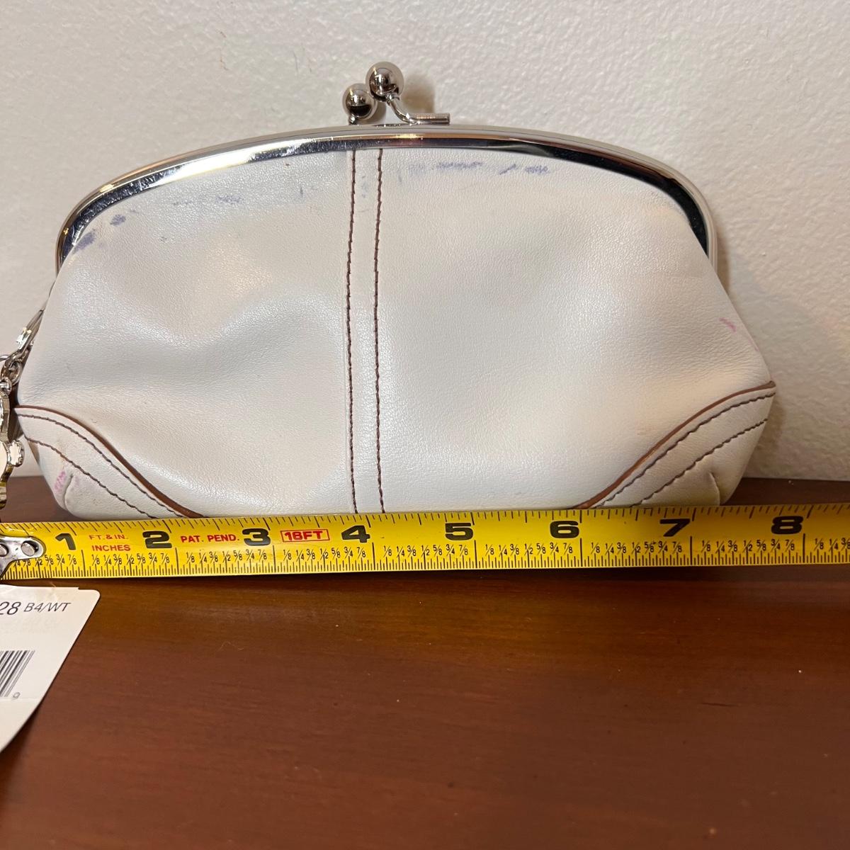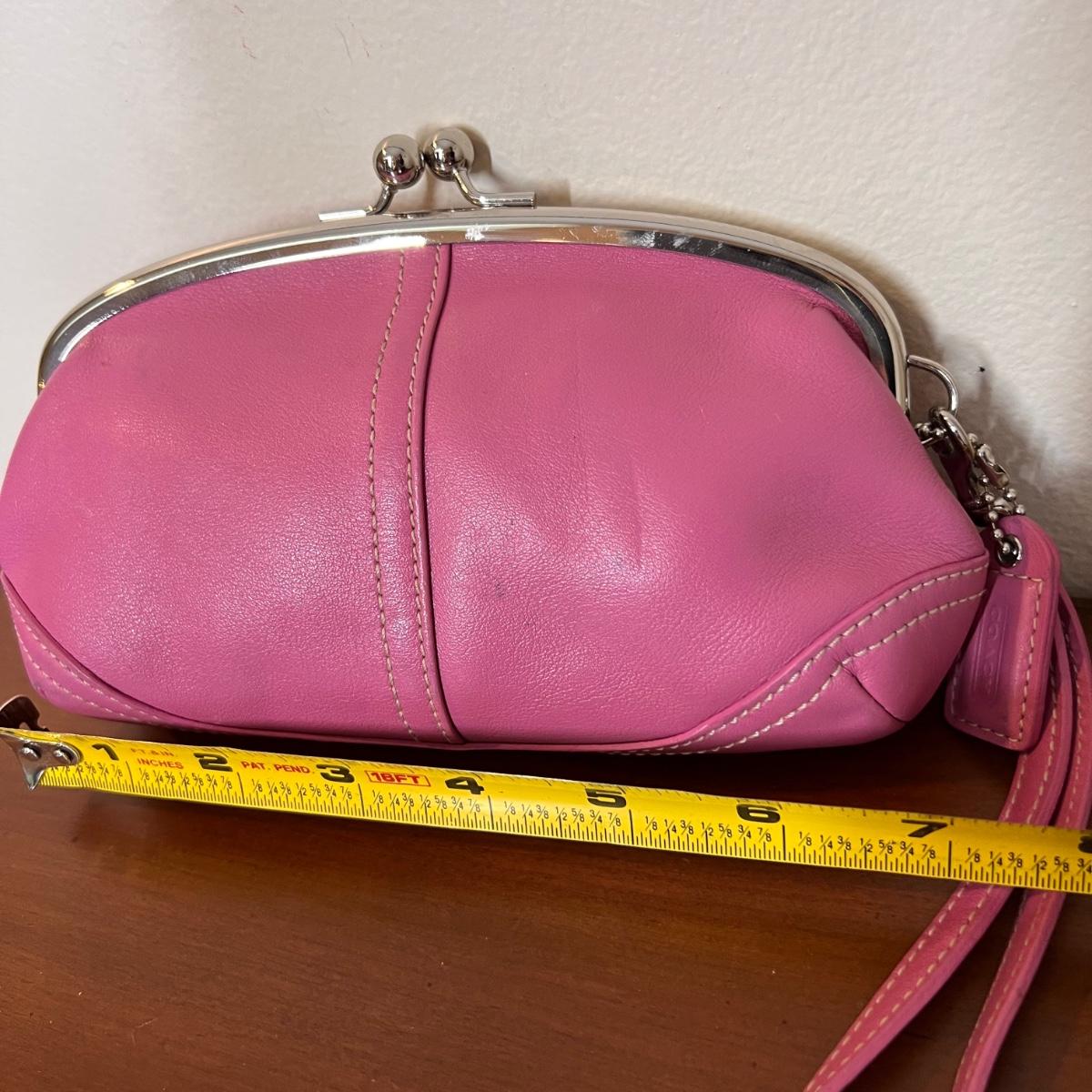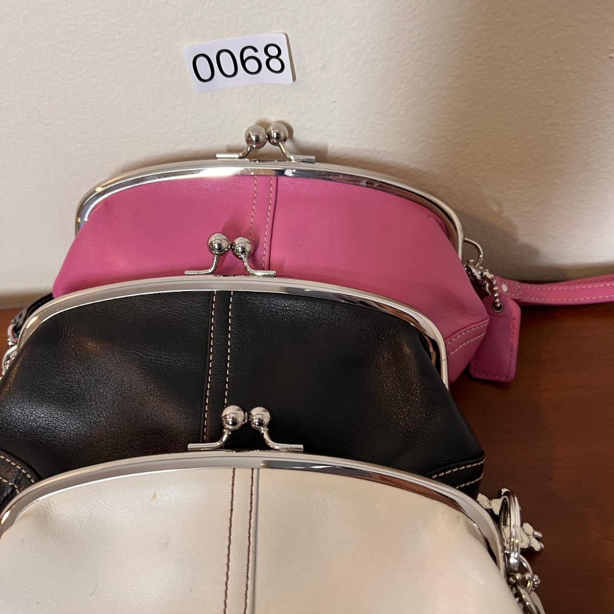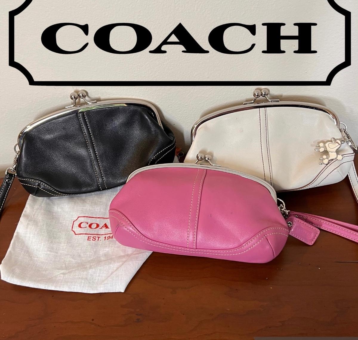 3 vintage Coach Soho Kiss Lock Leather Wristlets. Classic C logo fabric interior. Each have the leather wristlet strap and a coach charm.